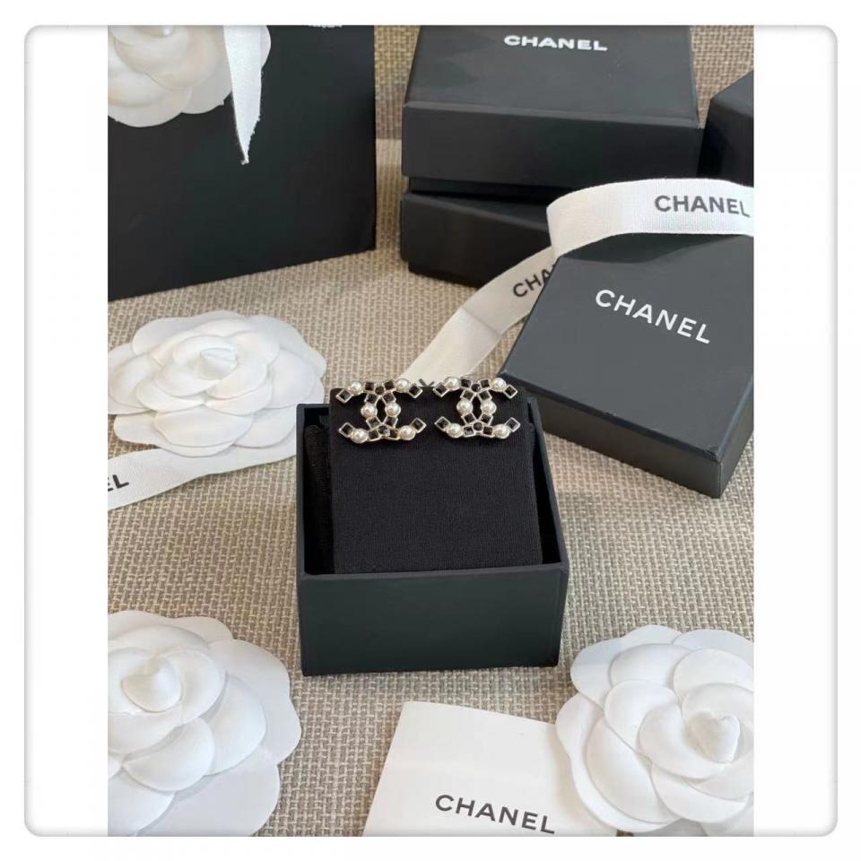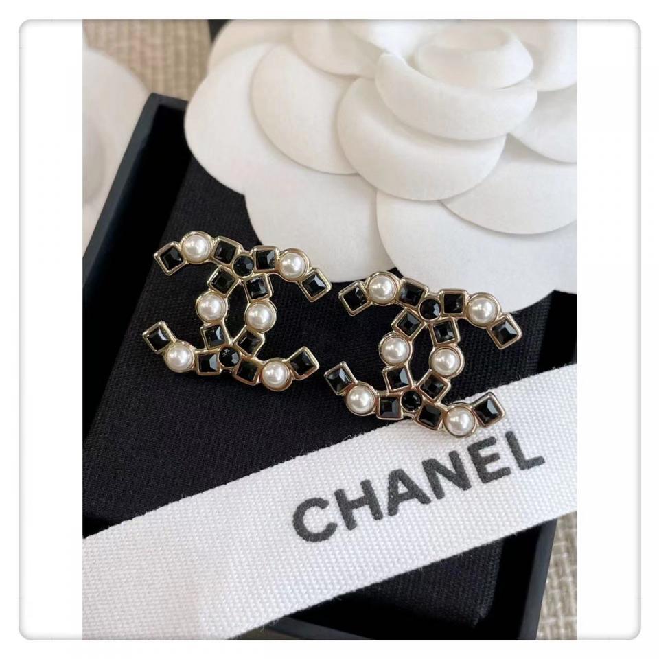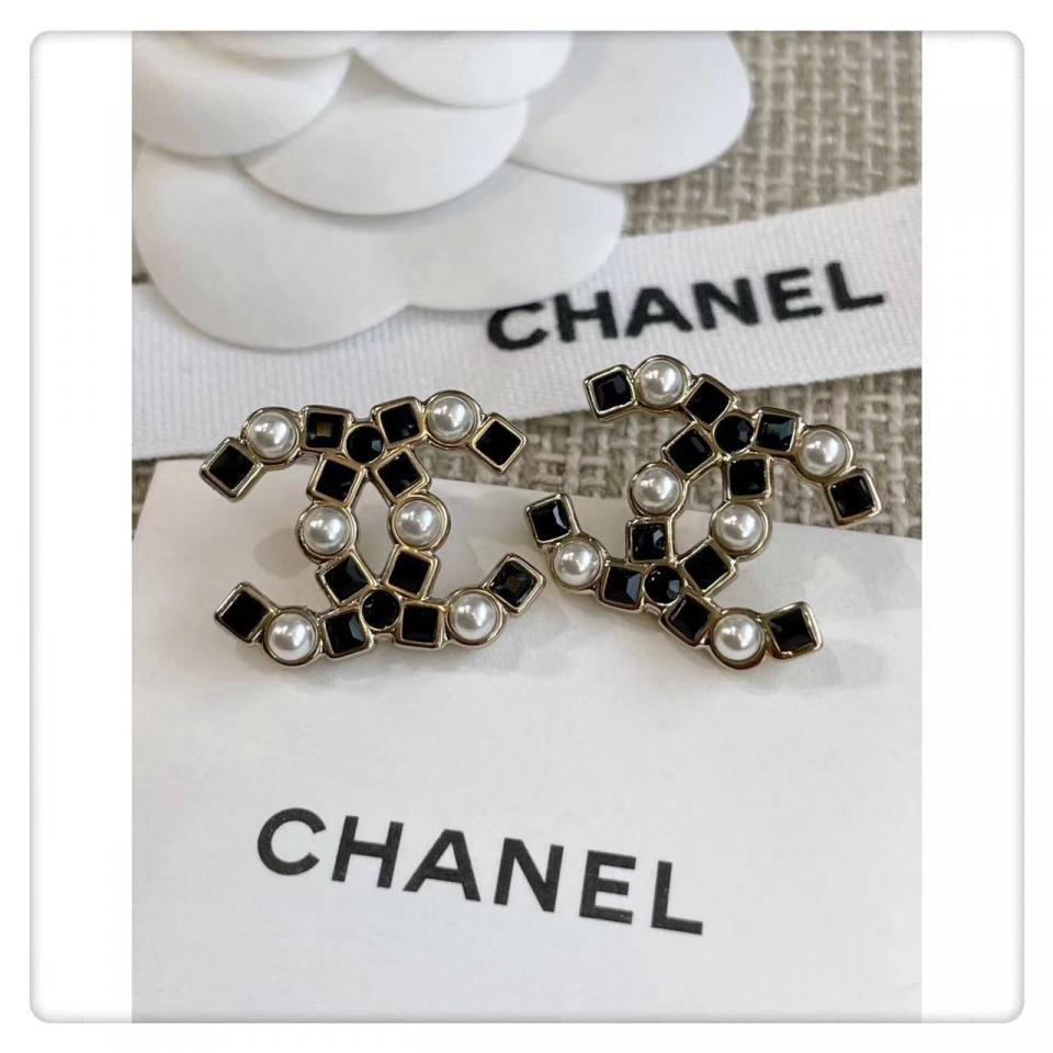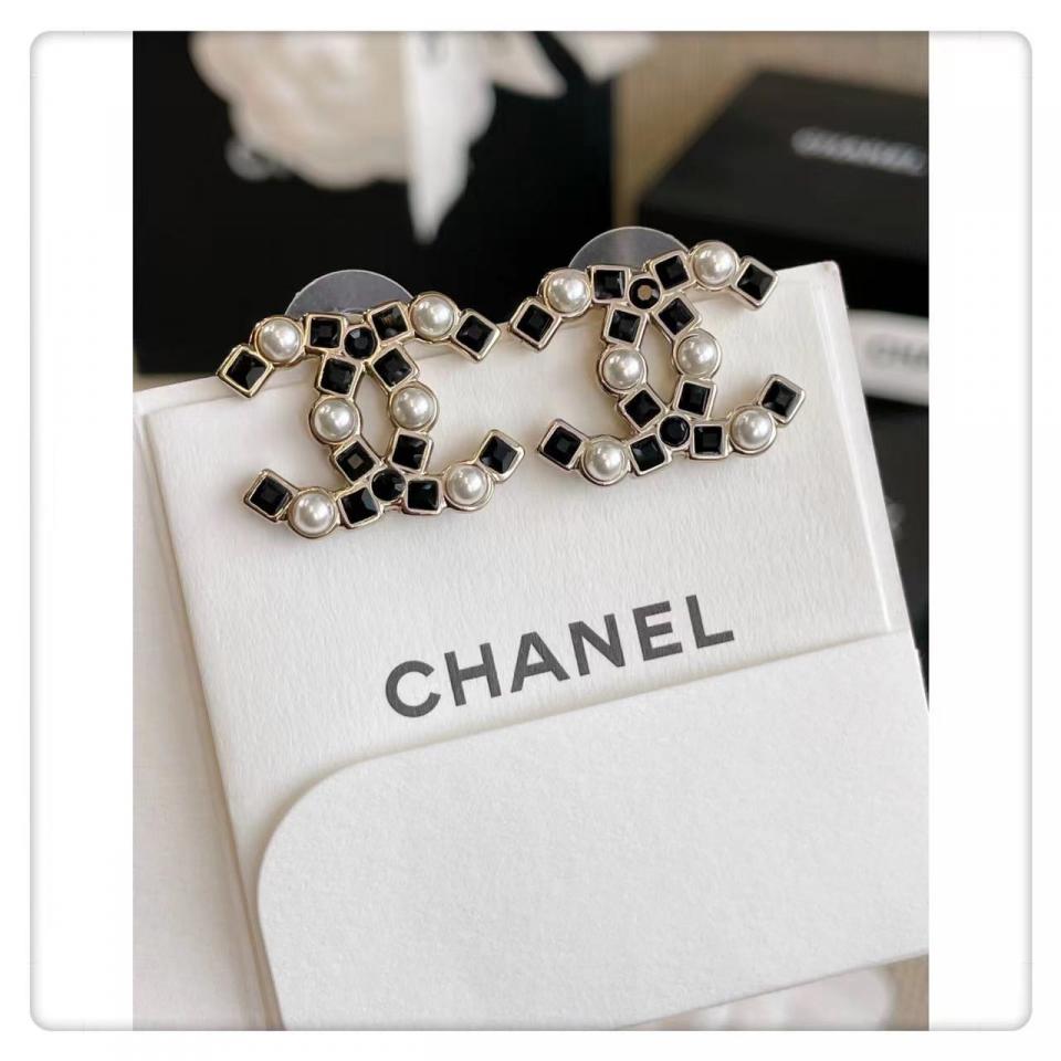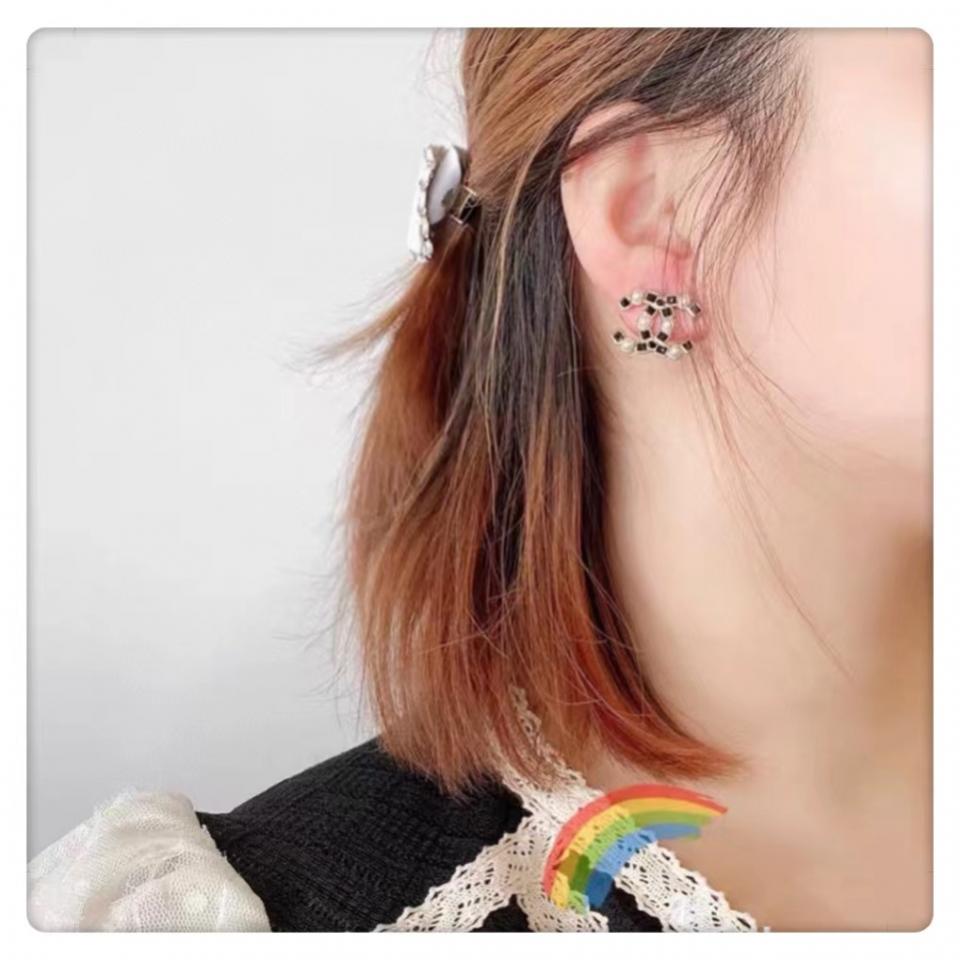 2022春夏 C家黑色鑽珍珠耳釘耳環