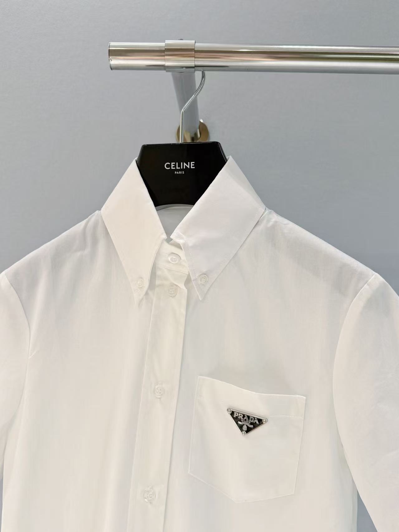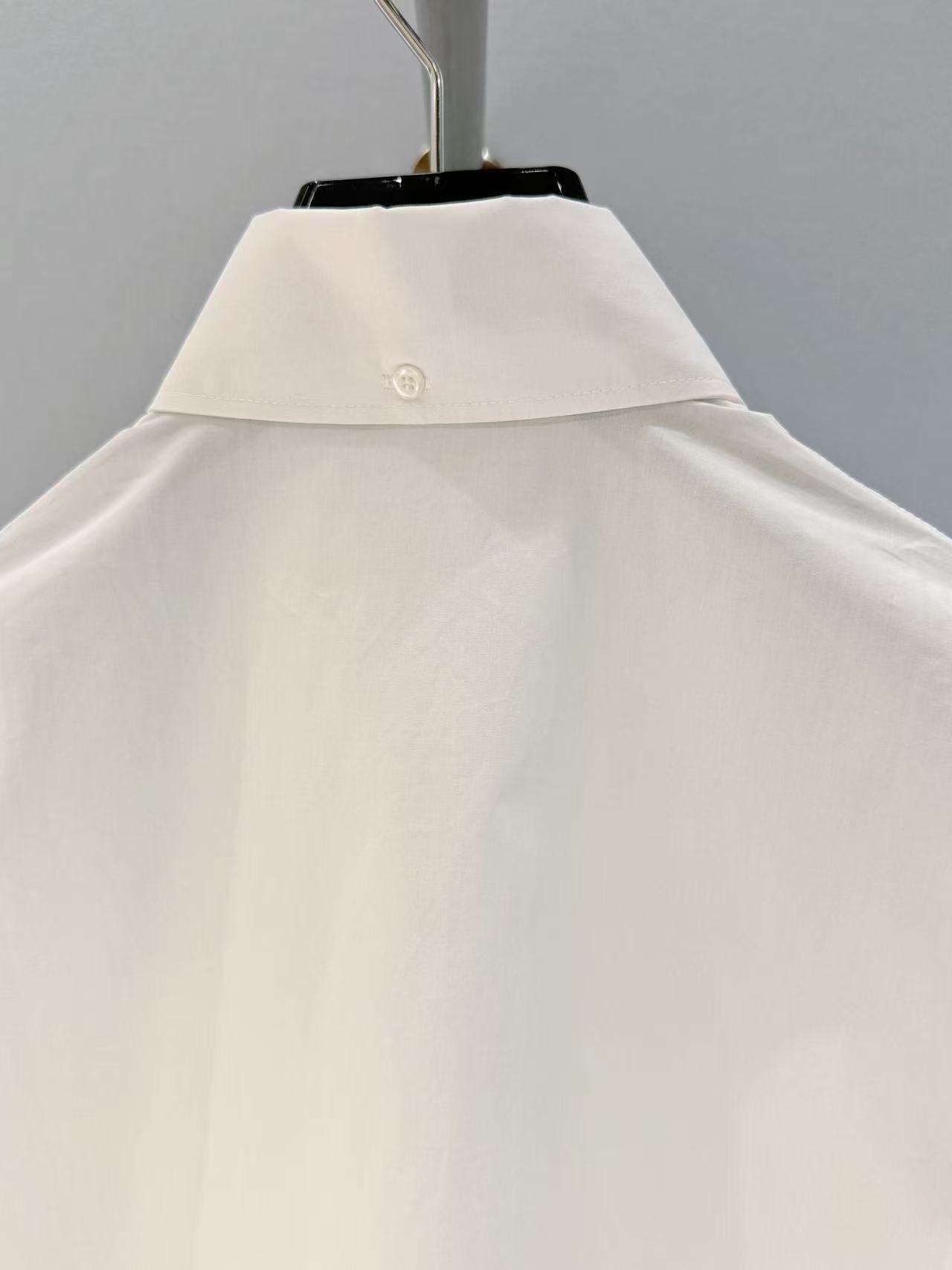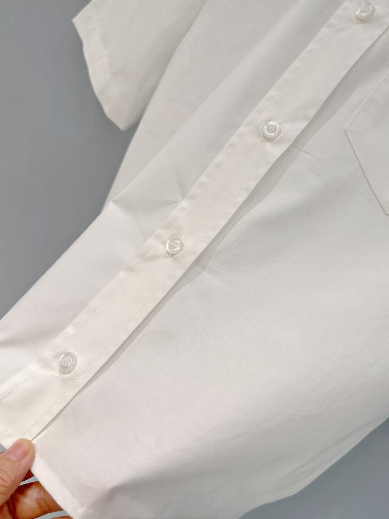 以經典學院風為基底,扮扣領與胸前口袋設計營造出簡約俐落的線條感,小巧三角標點綴其中,為整體增添了一點精緻與個性。版型偏直筒,