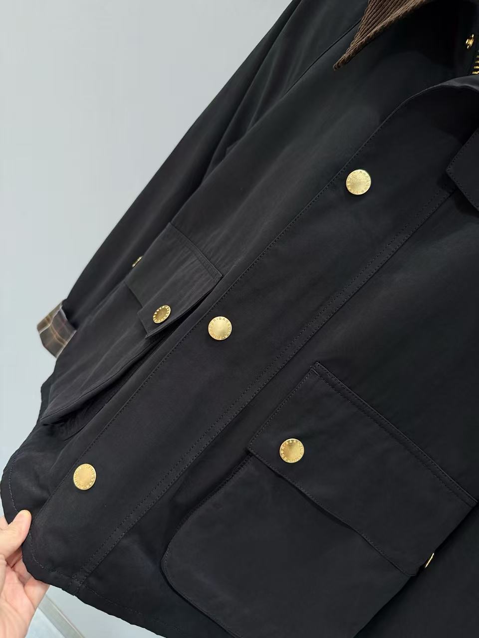 採用經典乾蠟材質,質感挺實,兼具防風與防小雨功能。隨著時間穿著,還會養出專屬的復古光澤與韻味。