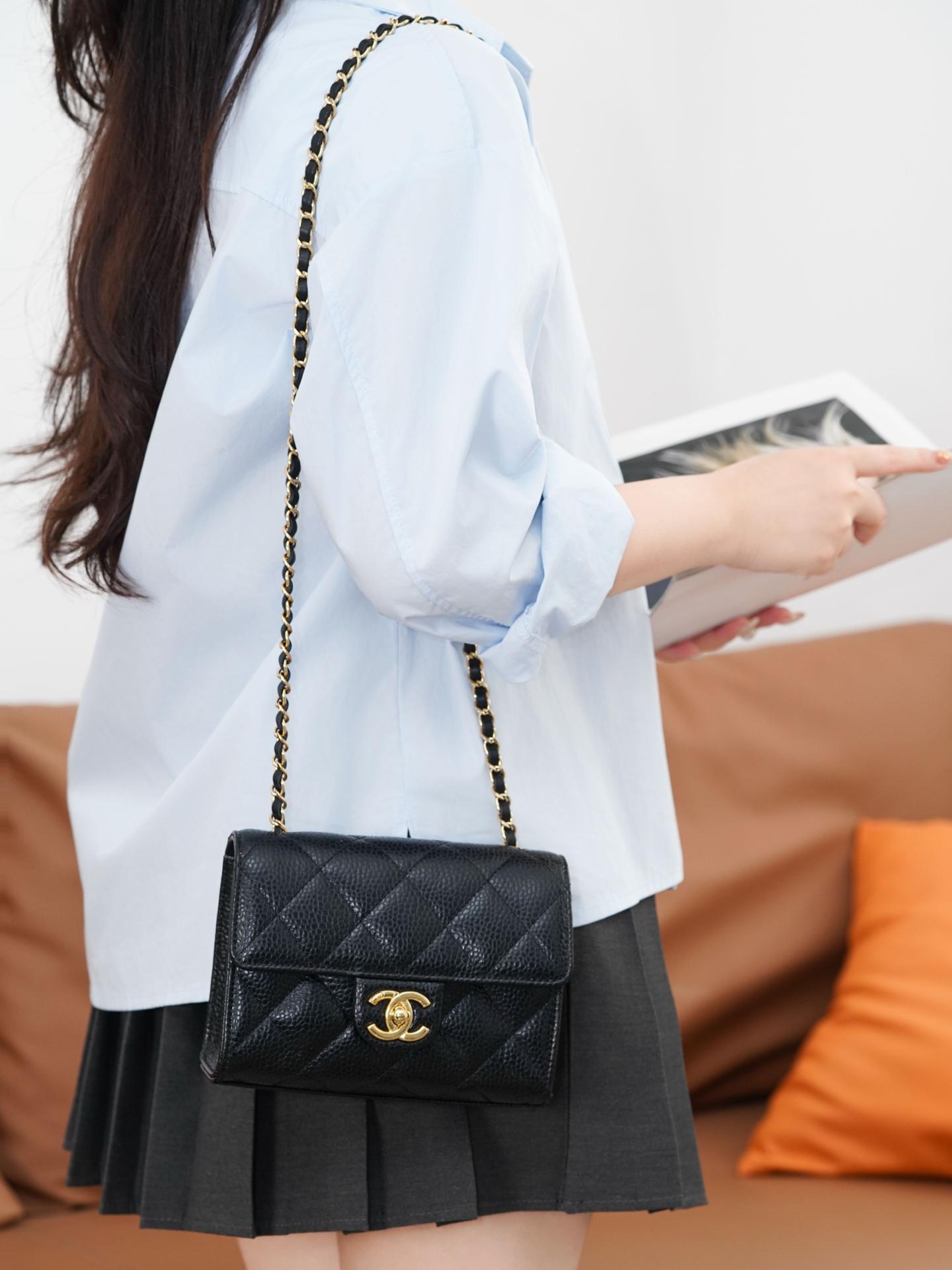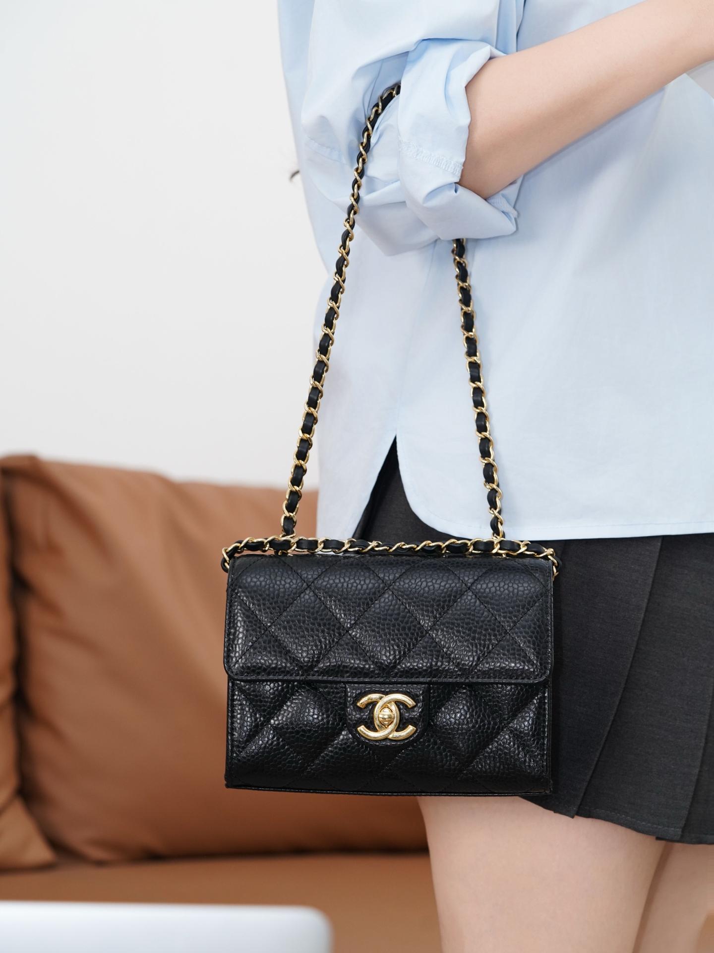 2026早春新品 C家 Mini CF口蓋包(黑金)