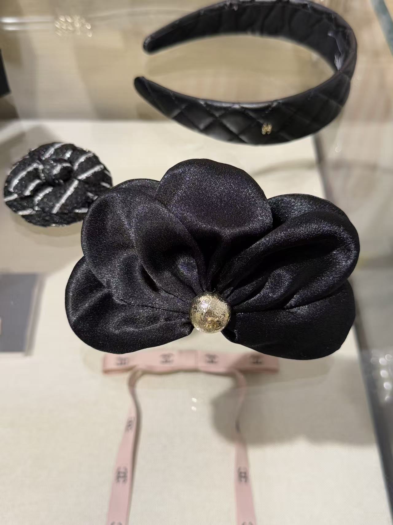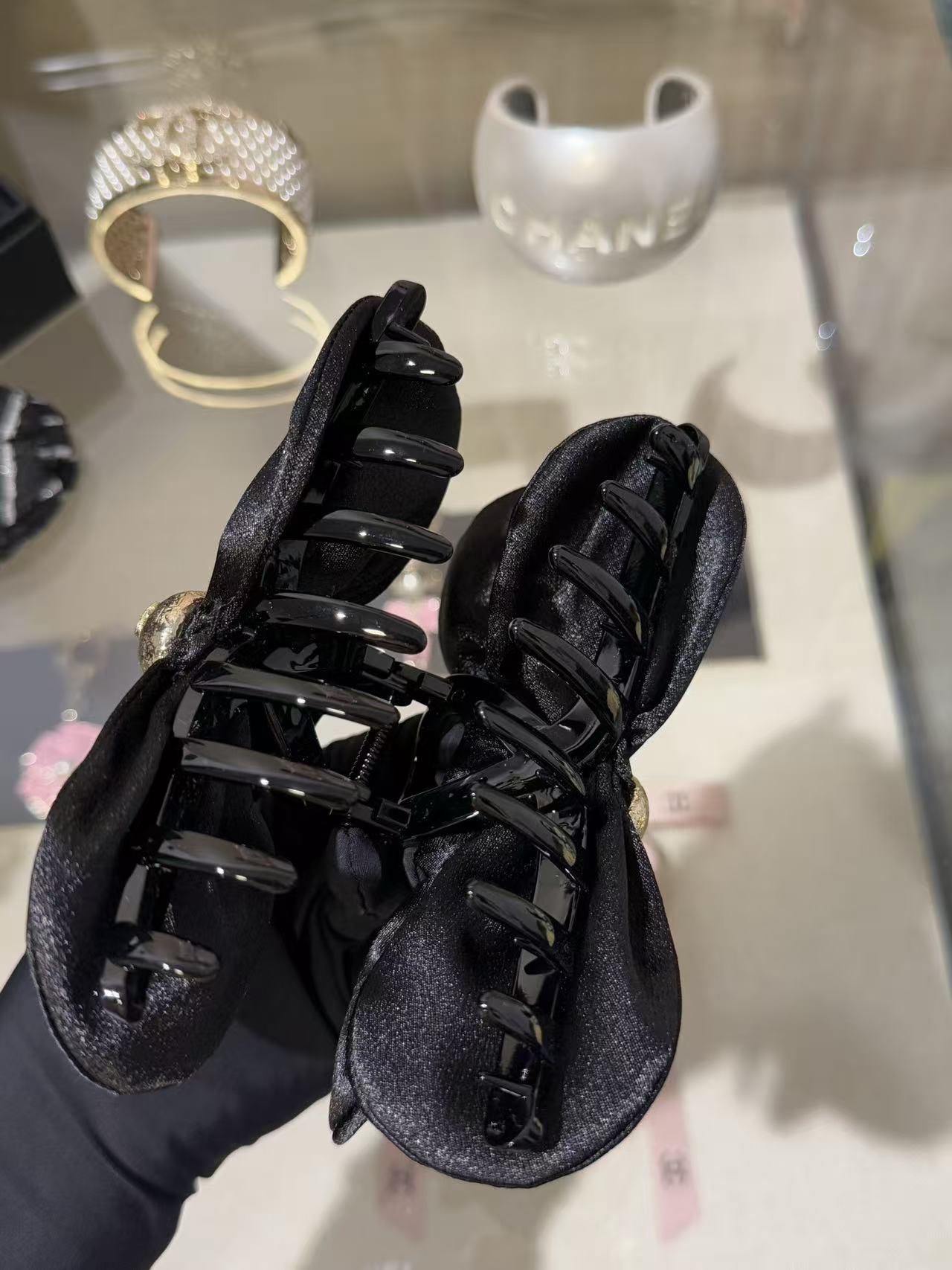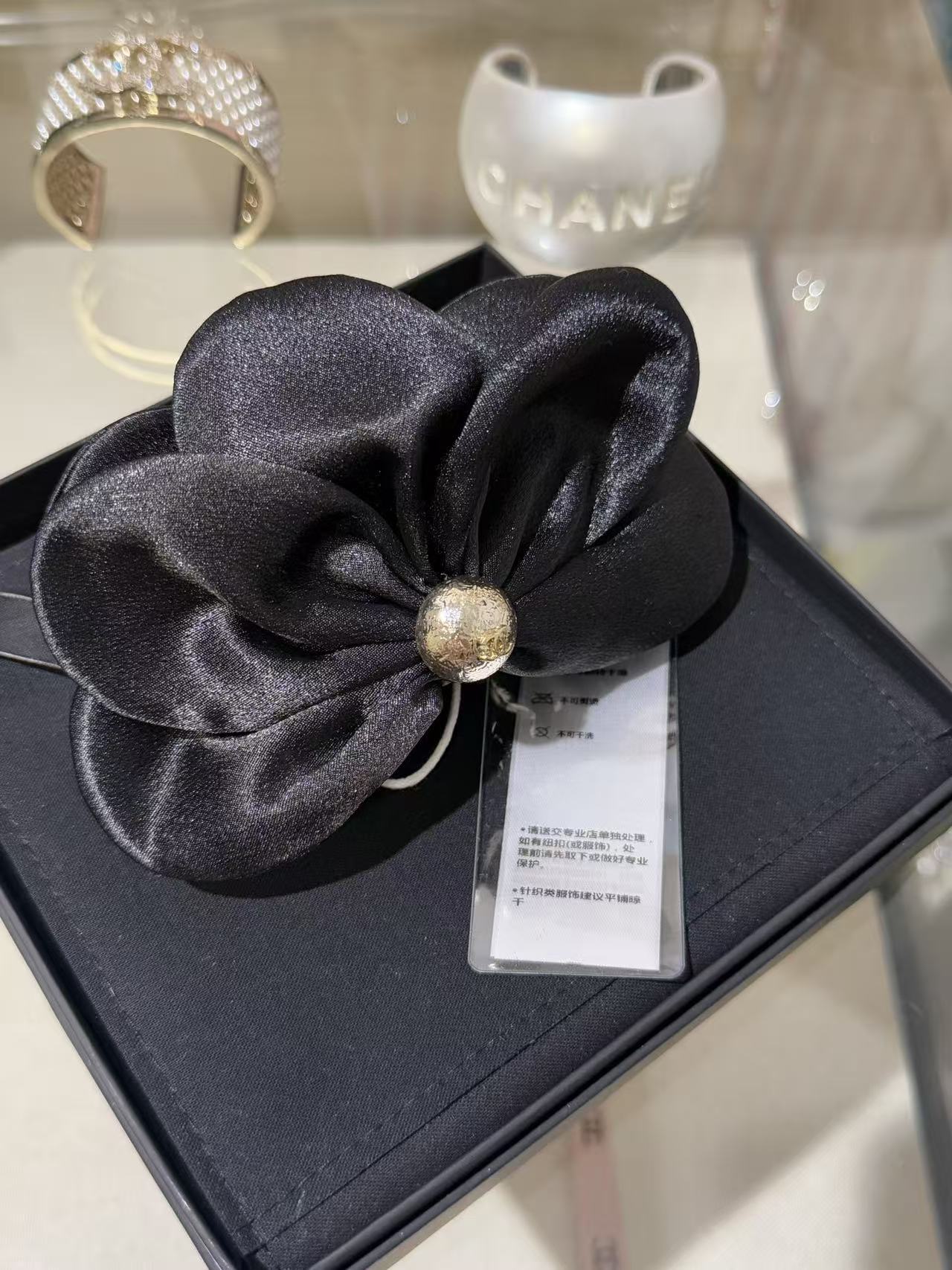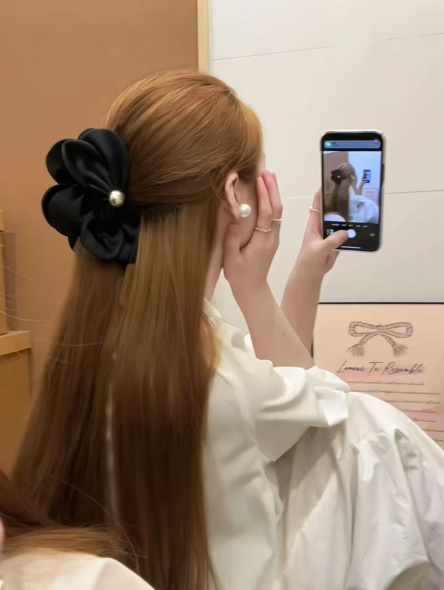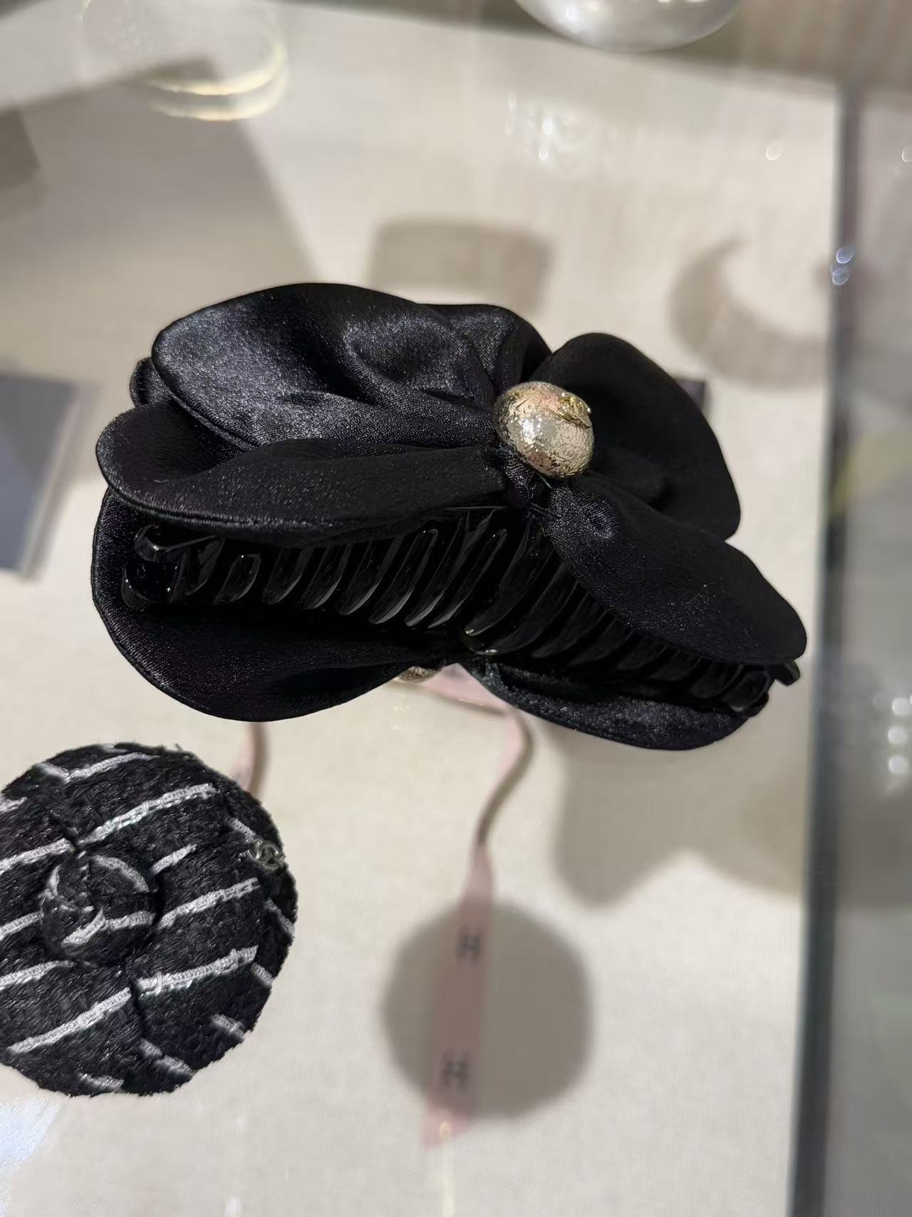 2025秋冬 C家 黑色緞面立體花朵鯊魚夾