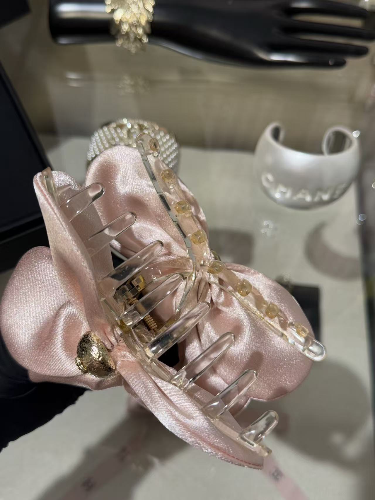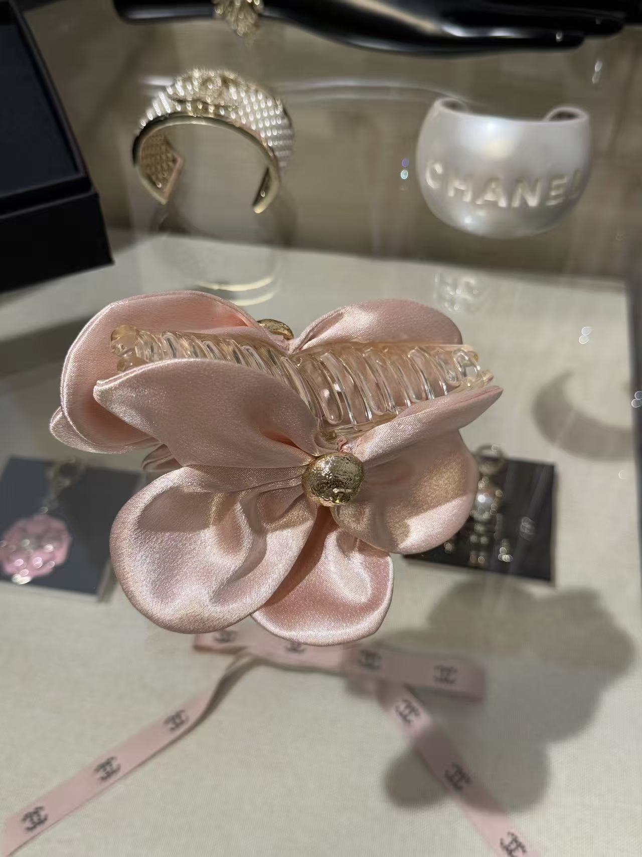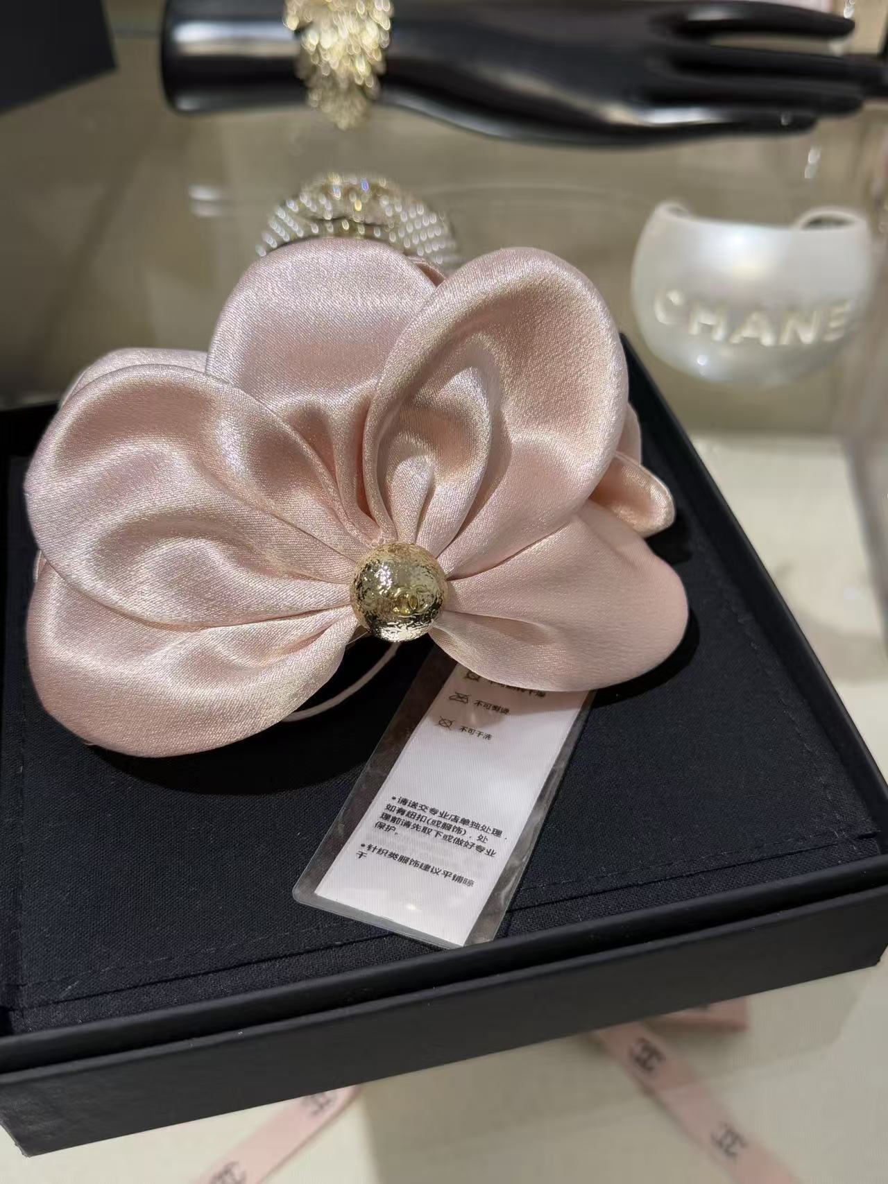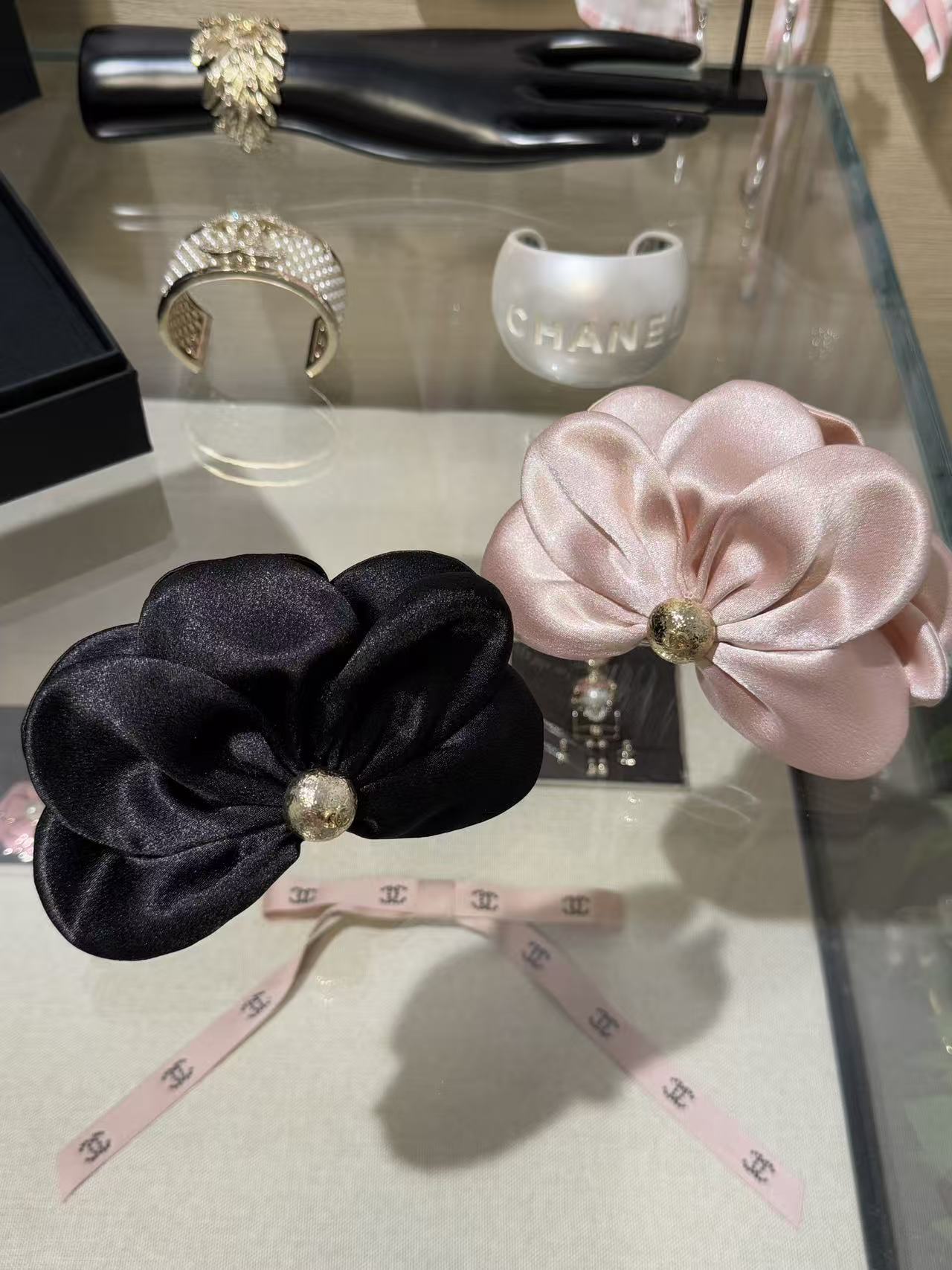 2025秋冬 C家 黑色緞面立體花朵鯊魚夾