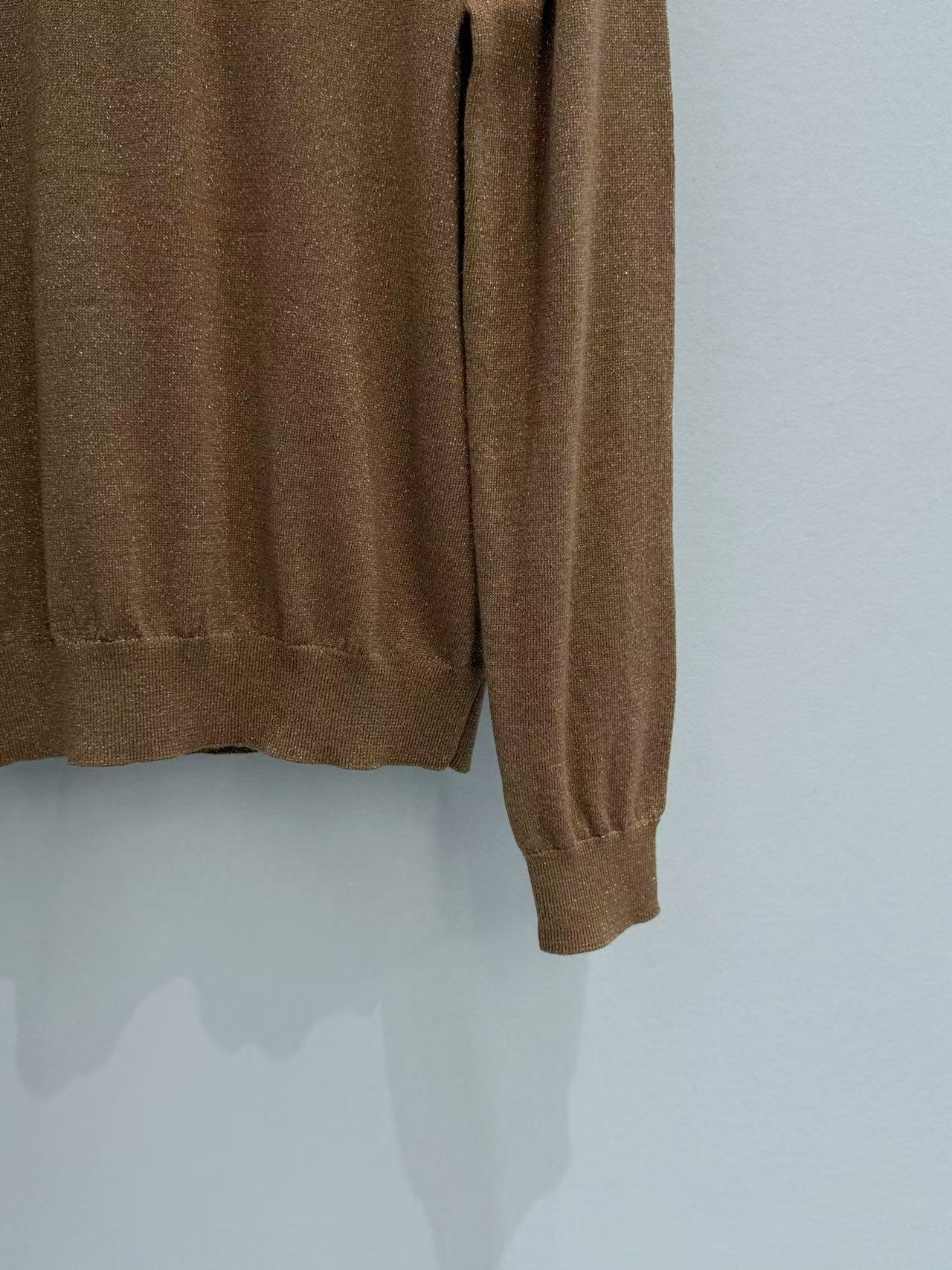 微光細閃工藝: 材質中織入了非常細緻的亮絲,在自然光下會透出低調的微閃,增加整套衣服的立體層次感,卻不會顯得張揚。