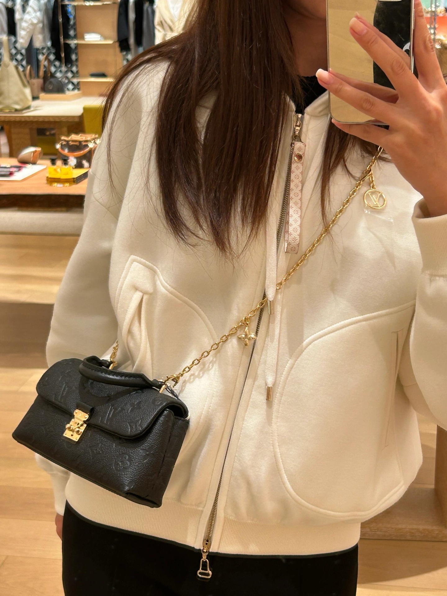 最讓人驚喜的是它的 鏈條多種背法設計,可以肩背、斜背、手提,自由切換風格,不管今天想走優雅、休閒或微正式路線,都能輕鬆搭配。