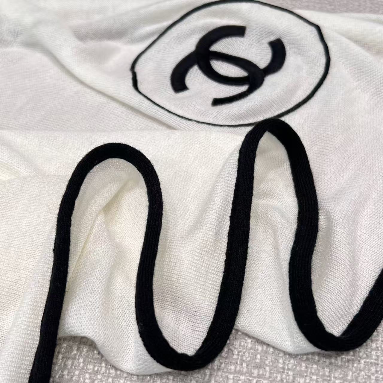 超級經典 黑白雙色刺繡羊絨針織