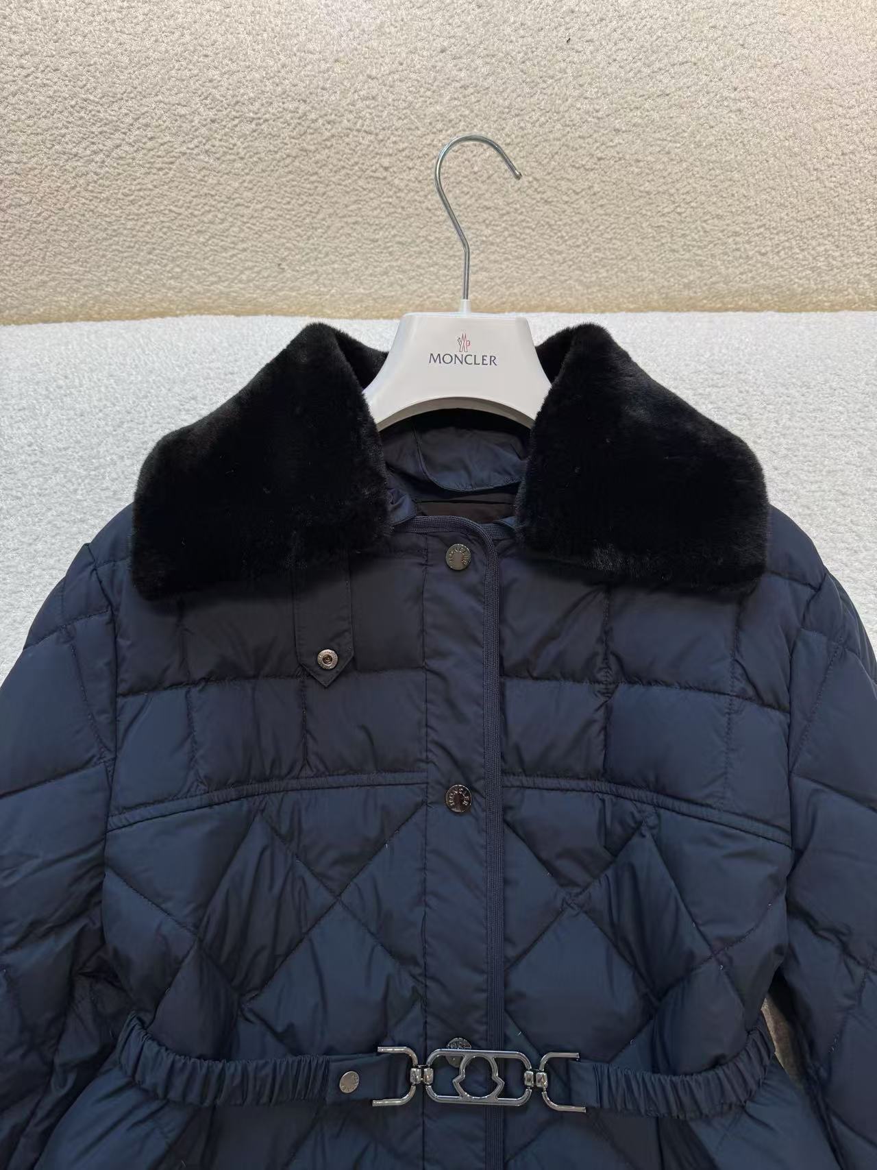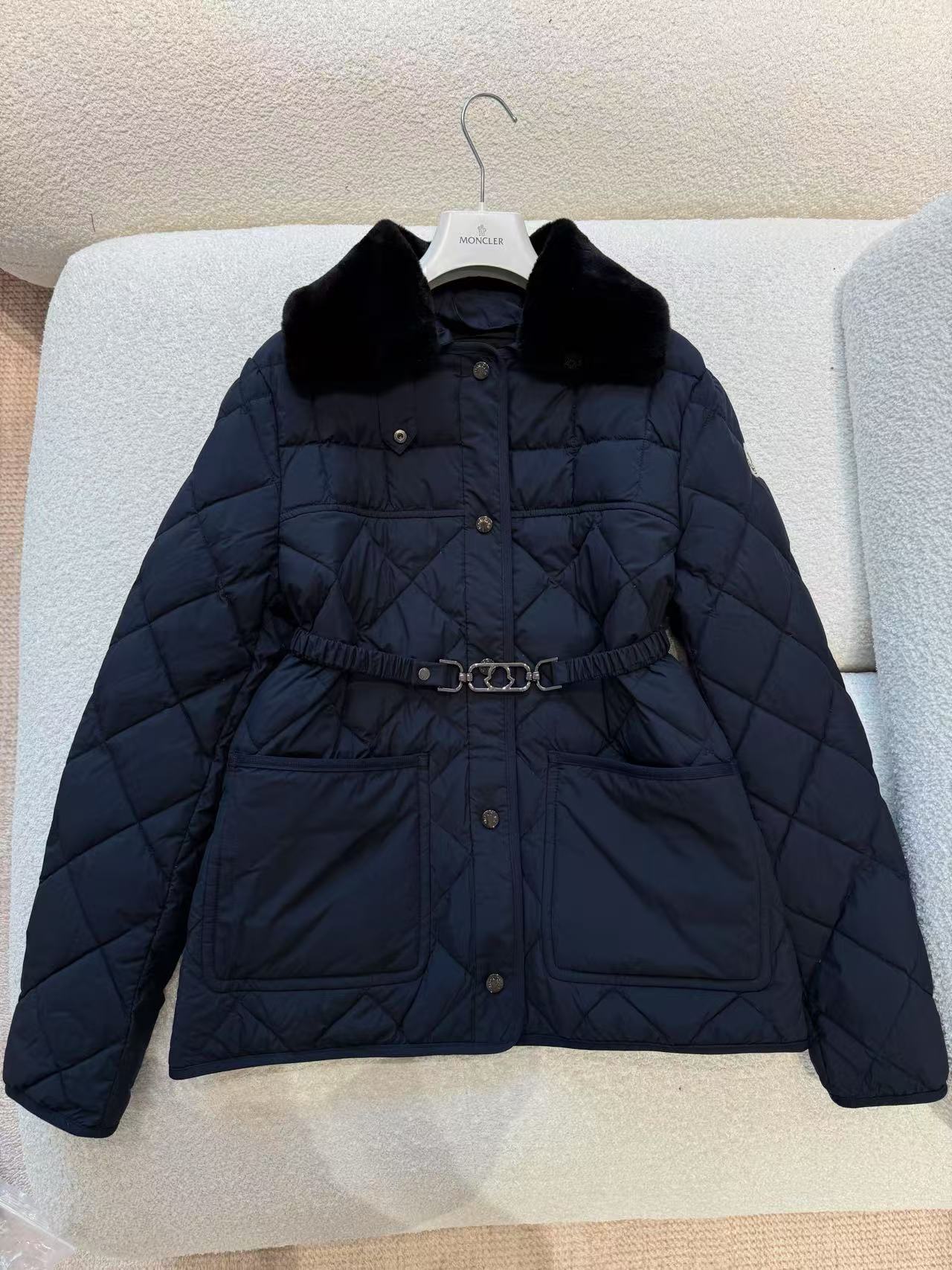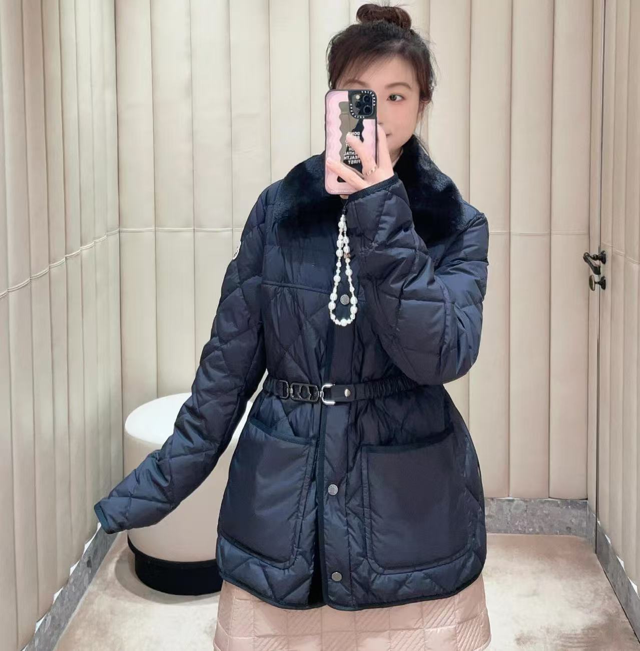 2025早秋新品 M家 蒙口腰帶毛領羽絨外套