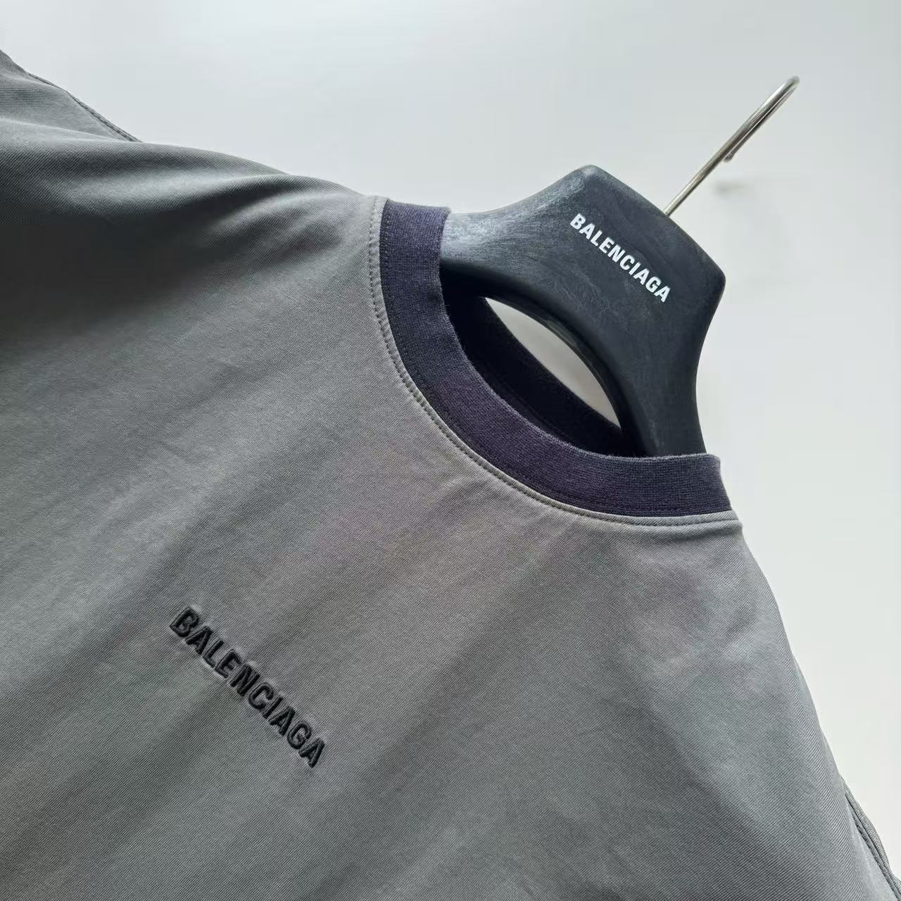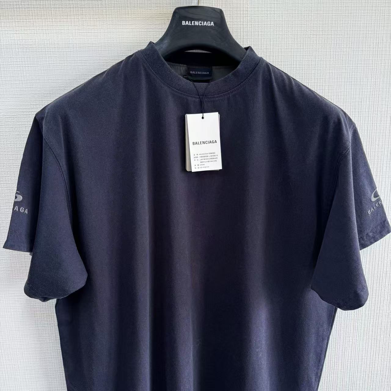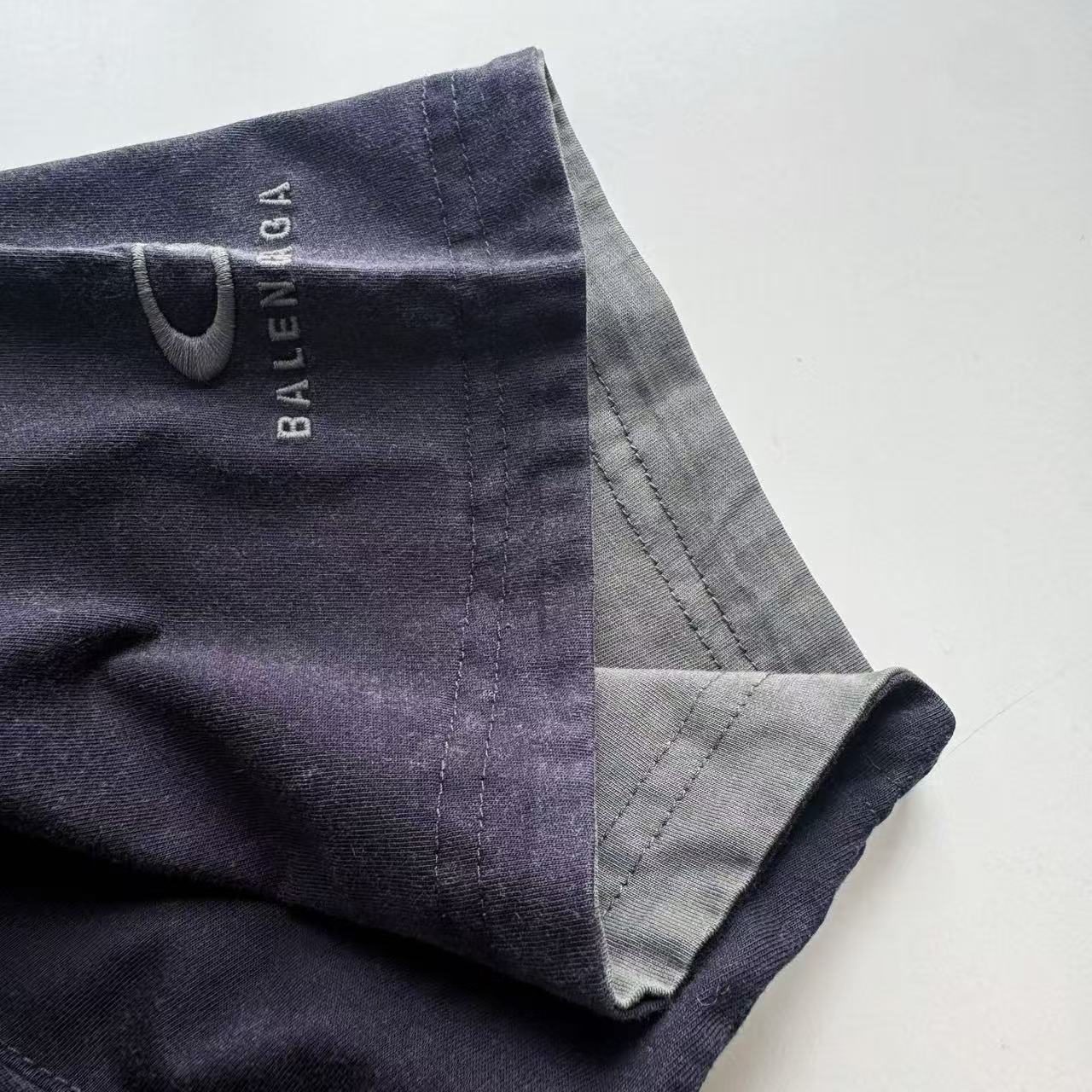 褪色水洗效果:T 恤經過了特殊的褪色灰色水洗效果處理,這是通過後整理工藝模擬自然舊化感的獨特技術。通過控制性的石磨、酶洗等工藝,在深色基底上形成不均勻的褪色痕跡,從而營造出柔和、復古的灰度視覺效果,充滿了故事感。