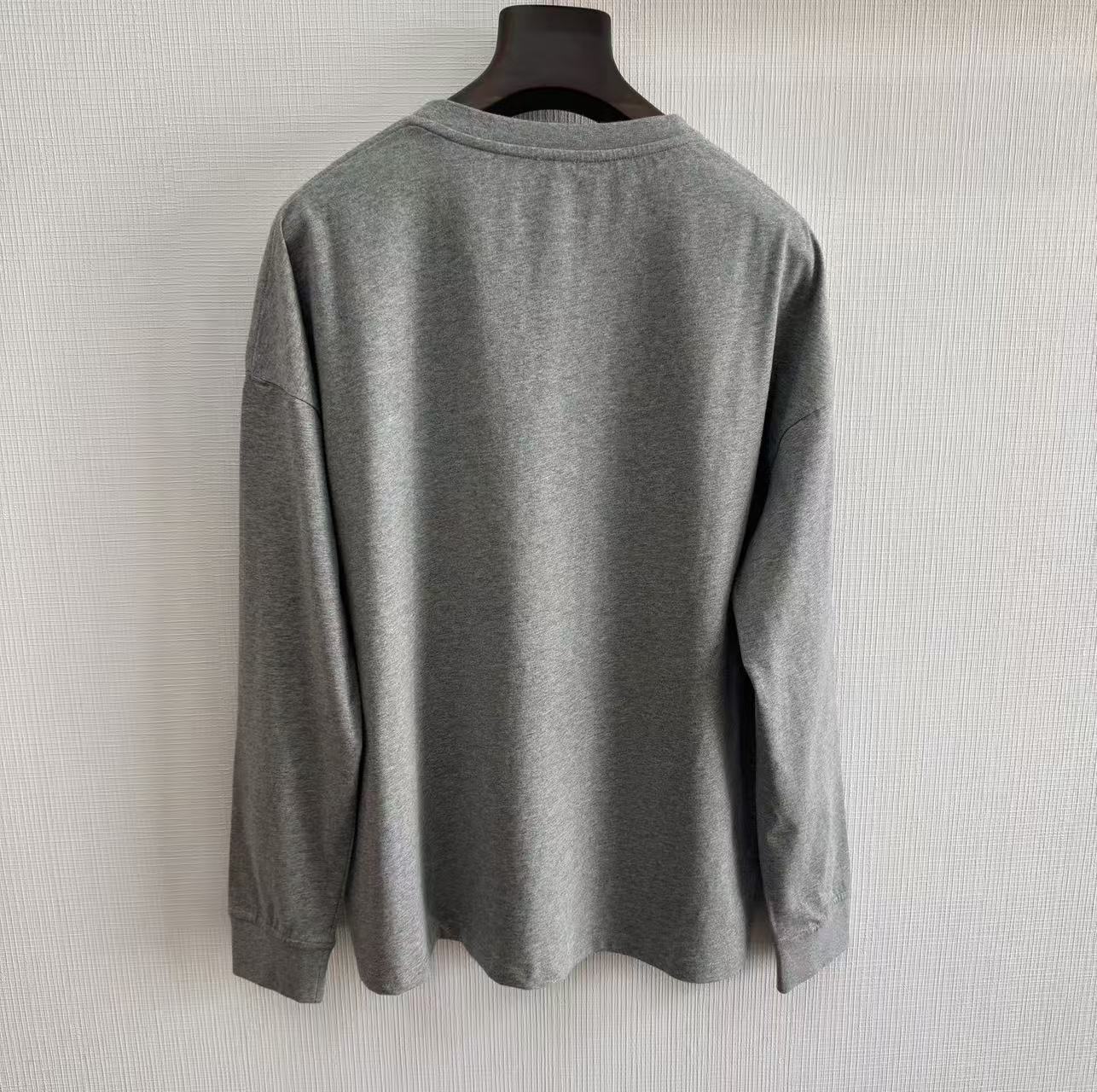 長袖棉質版型: 經典的圓領長袖 T 恤版型,版型修飾度高,適合早秋單穿或秋冬內搭。