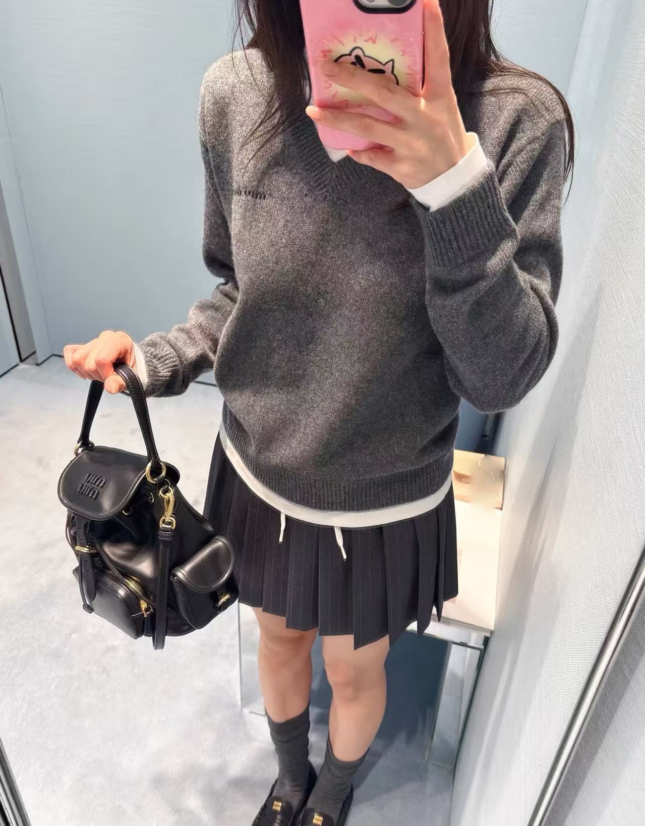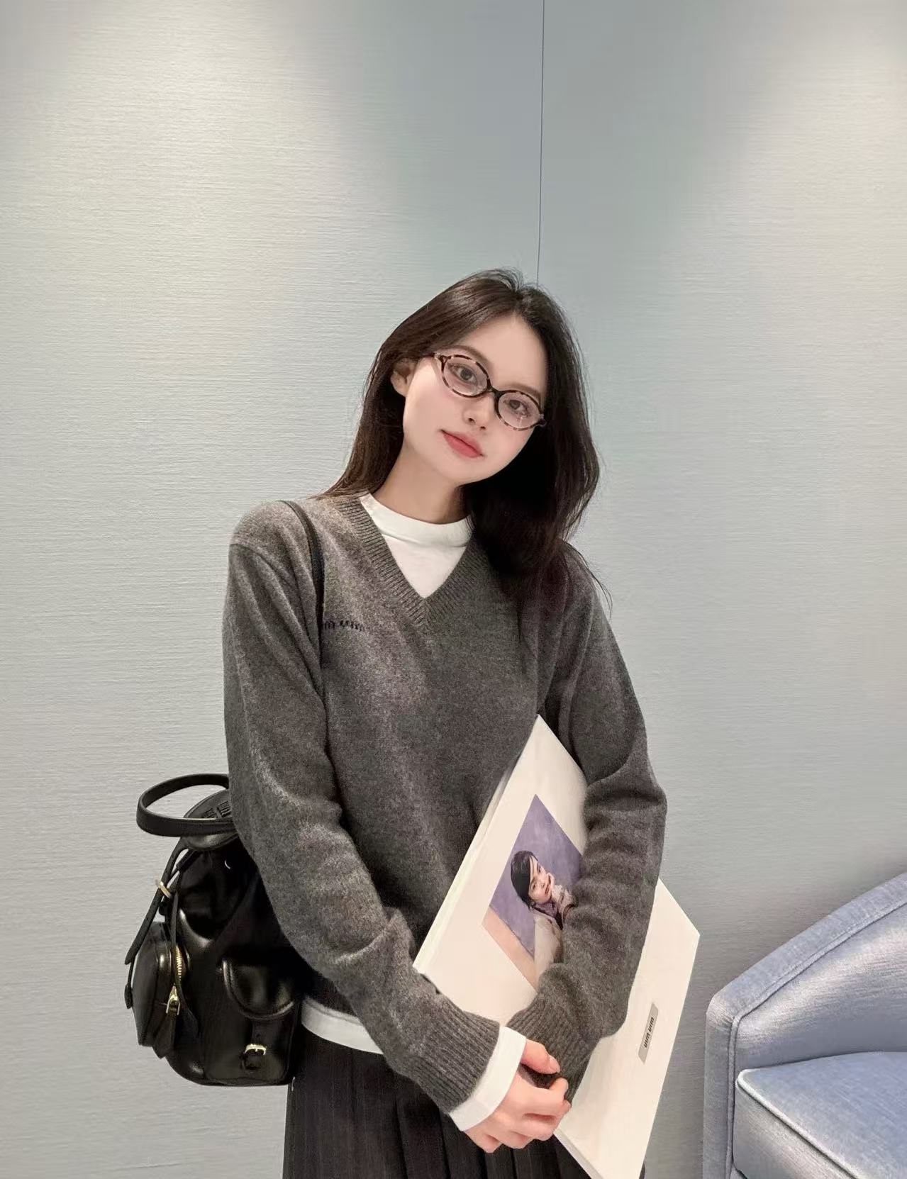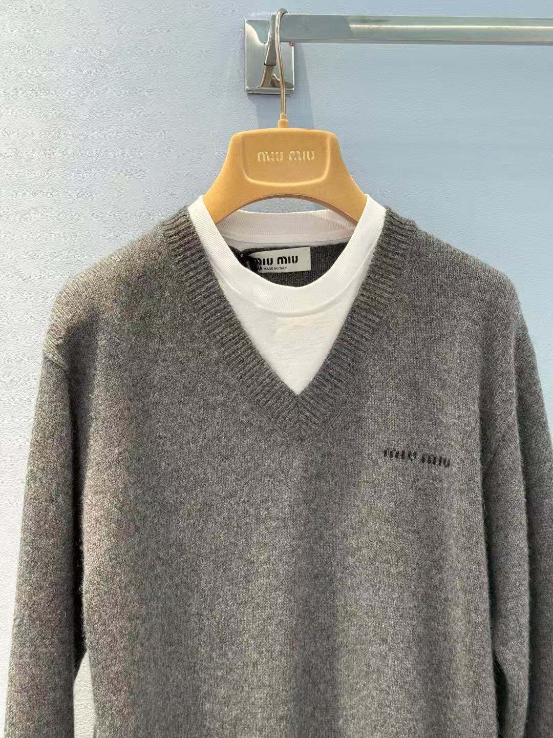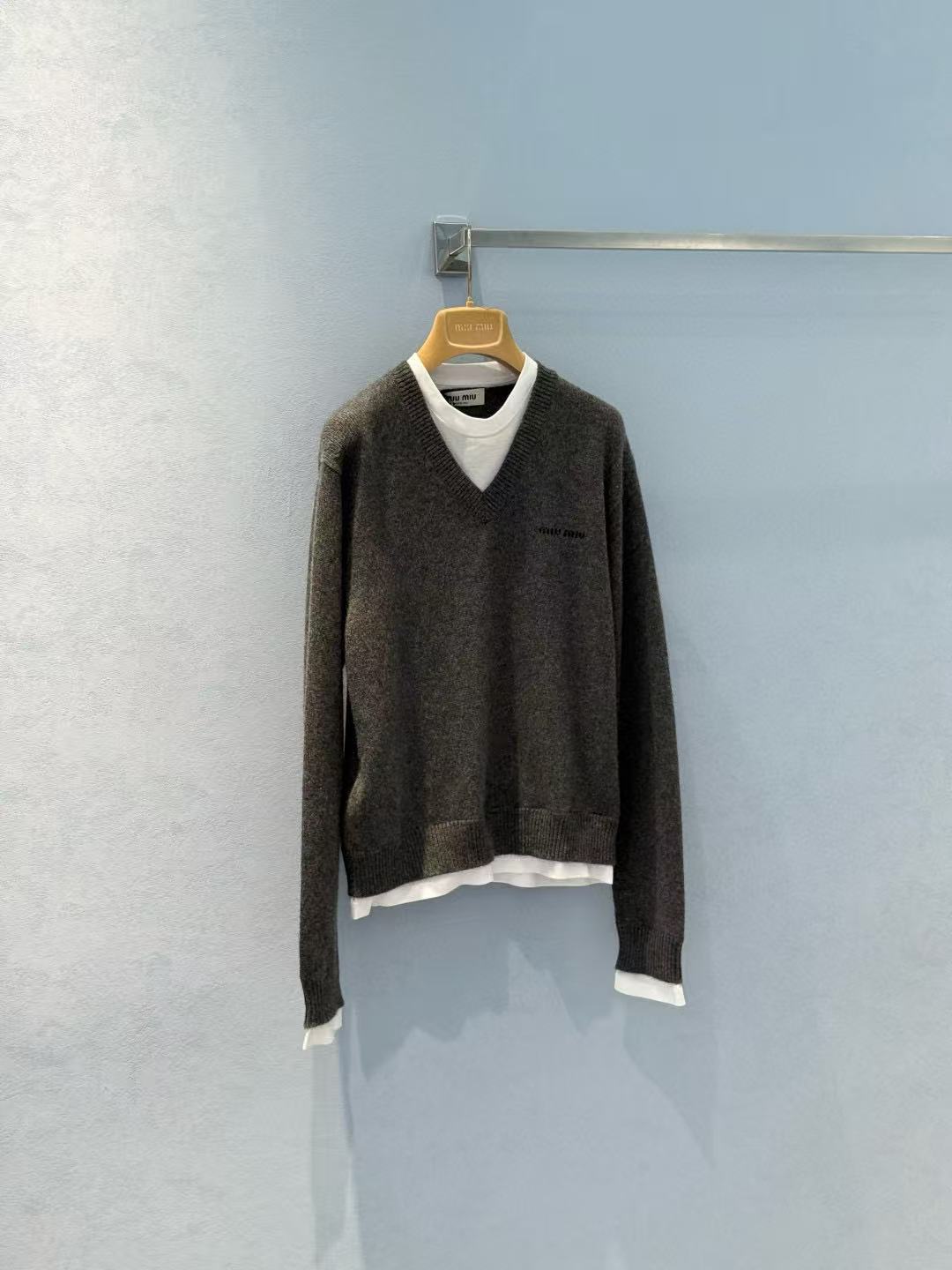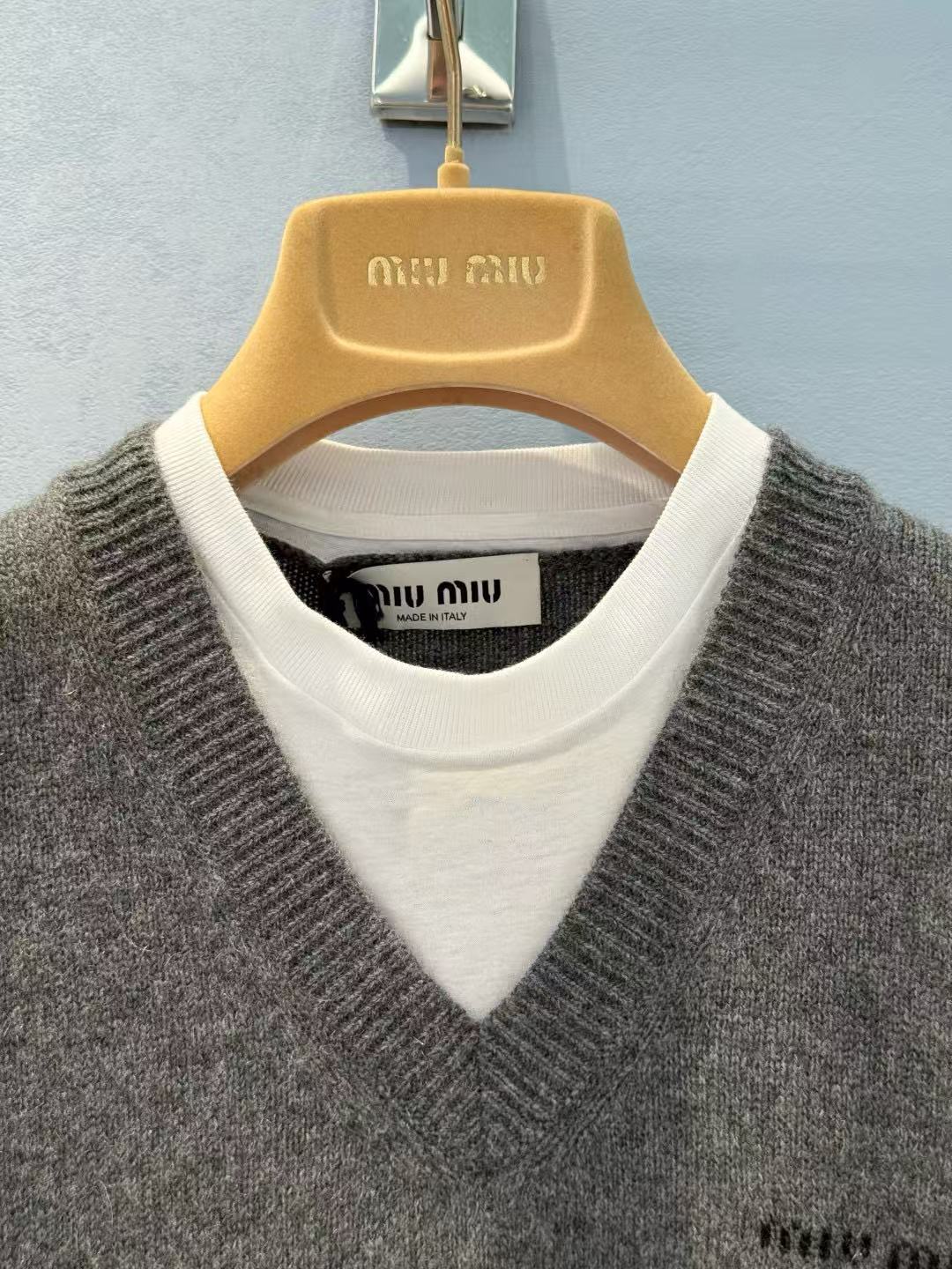 2025春夏 Miu家 假兩件徽標字母毛衣