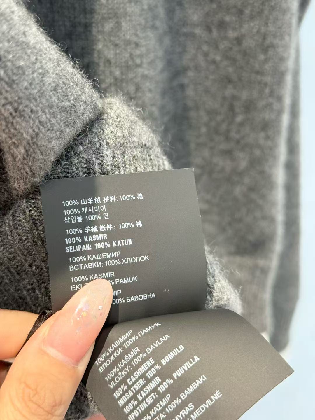 採用獨家訂製進口 yb 100% 山羊絨,觸感柔軟細膩,保暖同時不厚重,貼膚穿著也舒適。山羊絨特有的光澤與垂墜感,讓毛衣更顯高級。
