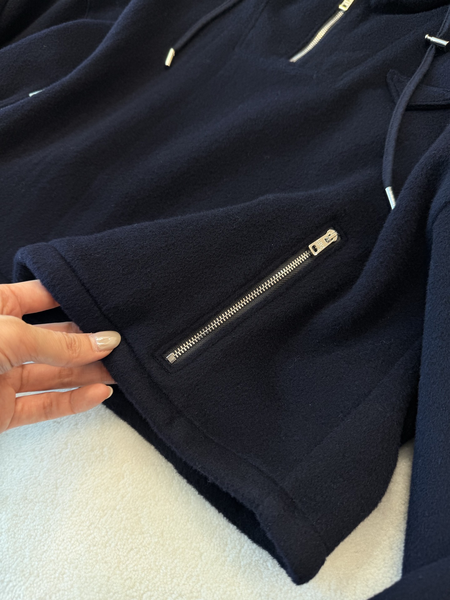 羊毛本身具備良好的保暖性與透氣度,穿起來溫潤不悶熱,整體質感非常到位。材質自然呈現高級光澤,低調卻藏不住質感,一摸就知道不簡單。