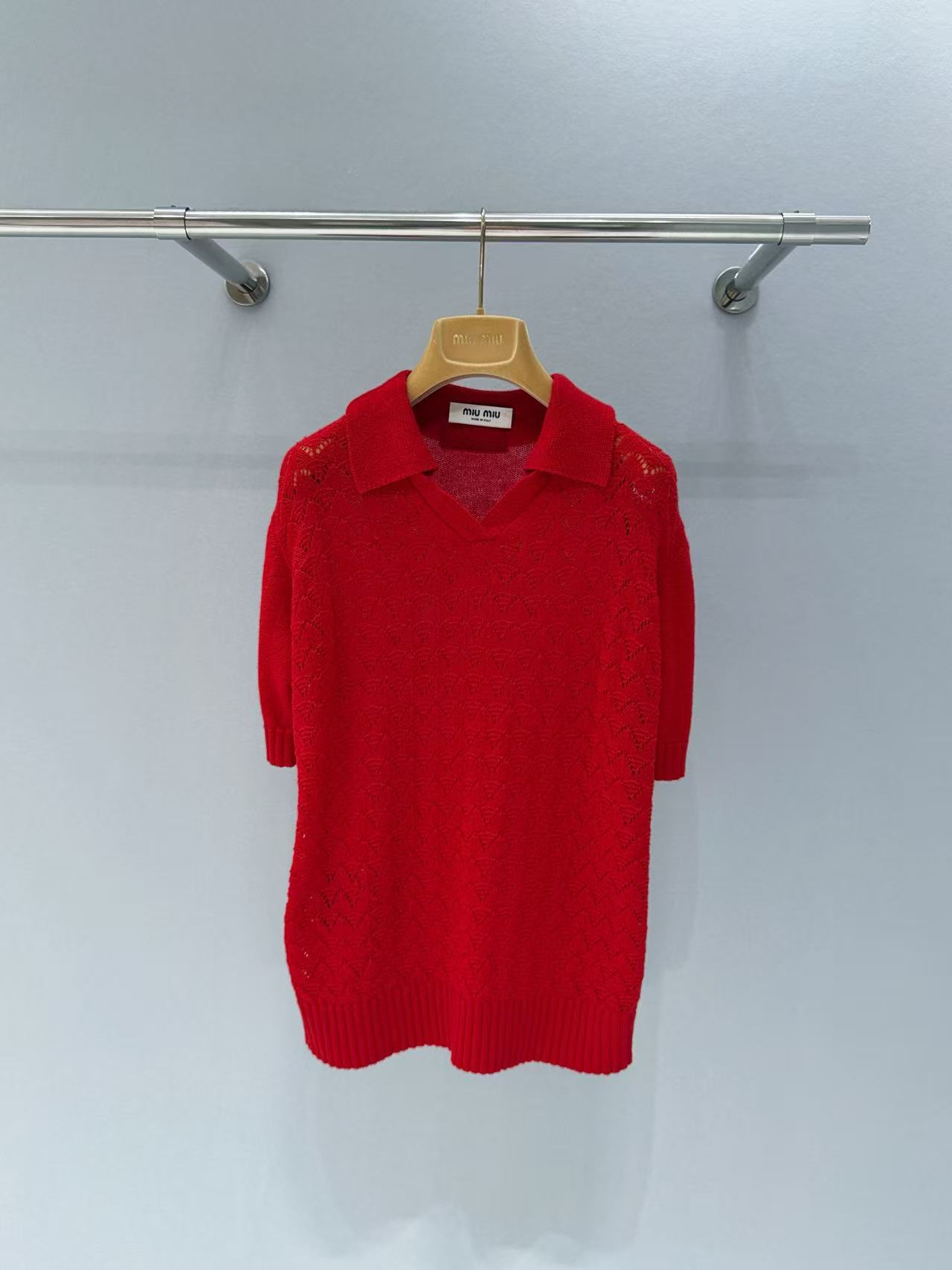 2026早春 Miu家 紅色山羊絨針織 POLO 衫