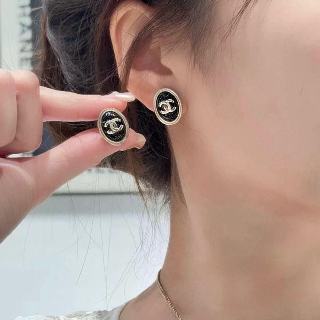2025春夏新品 C家 流晶橢圓黑石耳釘