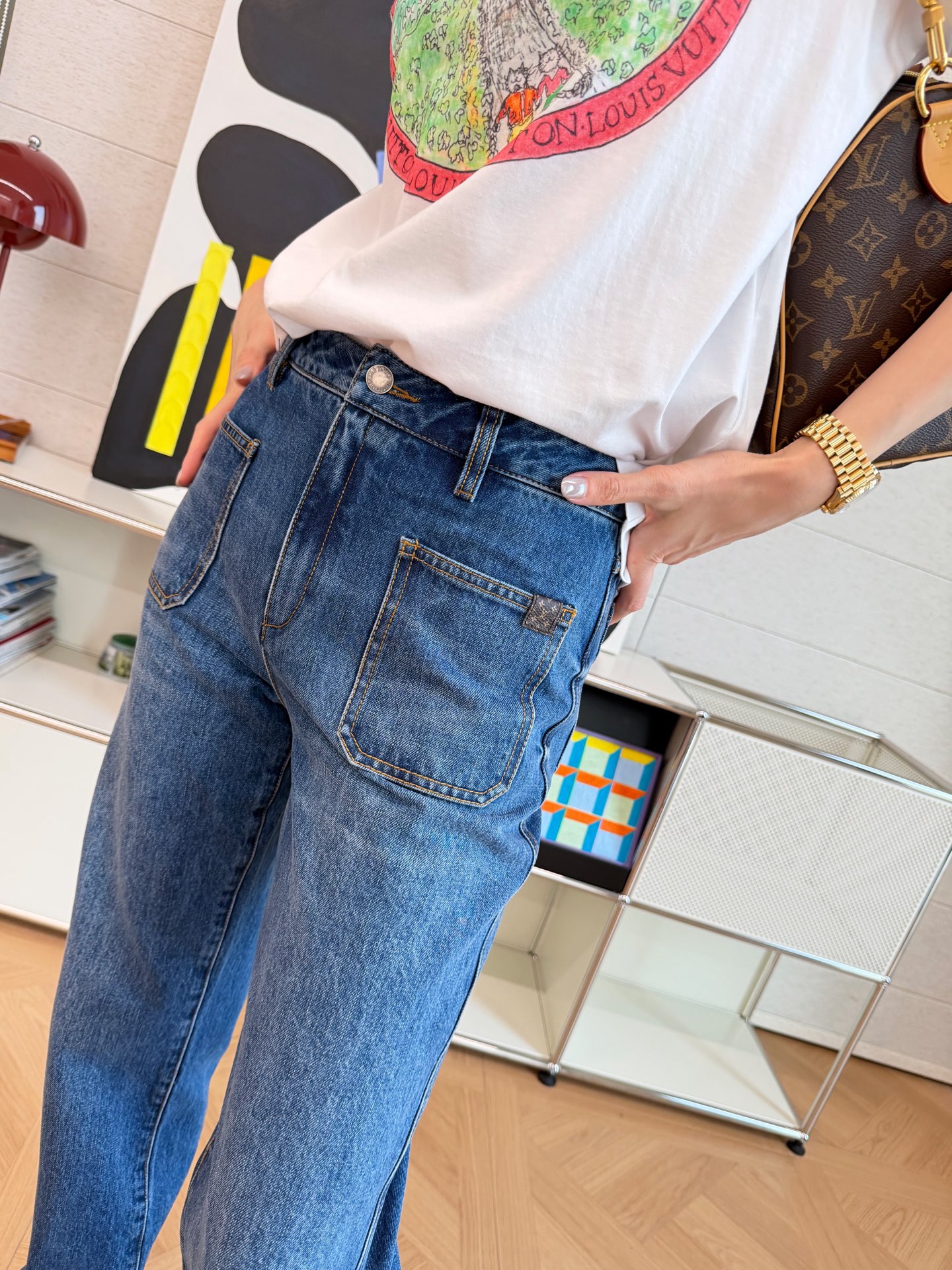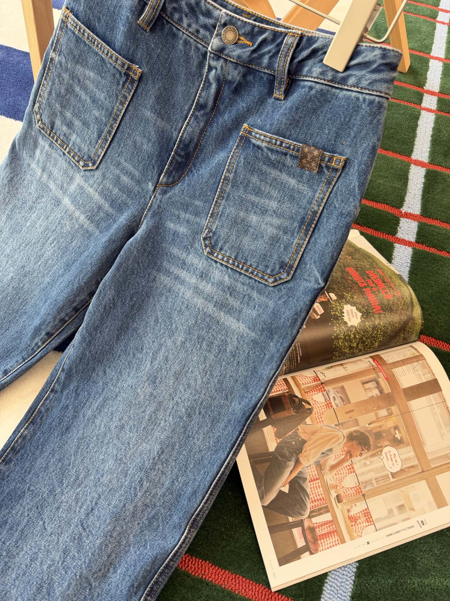 口袋處加入老花壓紋皮革裝飾,低調卻很有辨識度,讓整件牛仔褲瞬間多了一層精品感,不會太浮誇,但懂的人一看就知道質感不一般。
