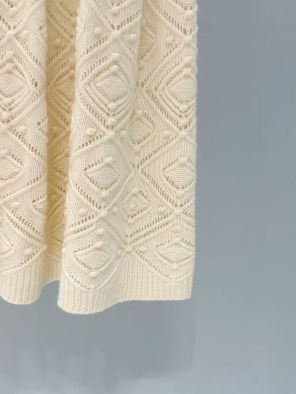 米白色調超級溫柔,菱形與菱格紋理設計滿滿,視覺上很有層次感,輕鬆散發高級優雅氣質。
