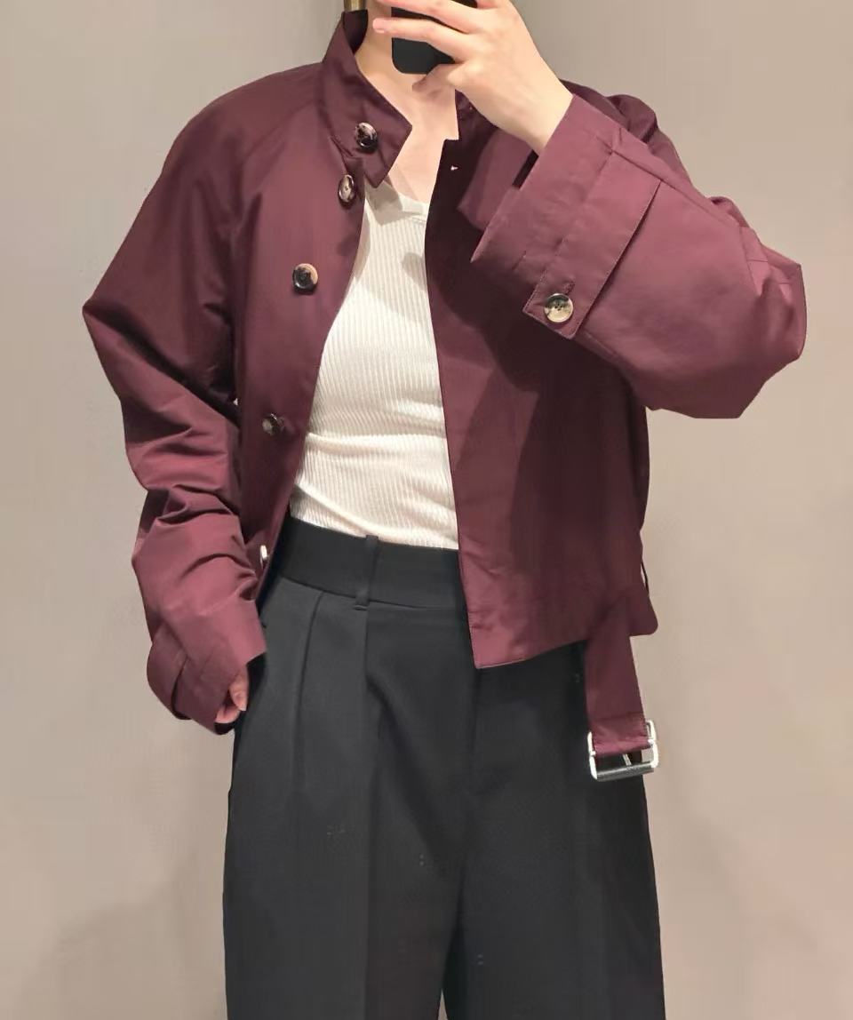 落肩闊袖的版型讓輪廓更有份量感,衣擺還特別設計了系扣調節,不只能修飾比例,也增添了幾分帥氣氛圍。