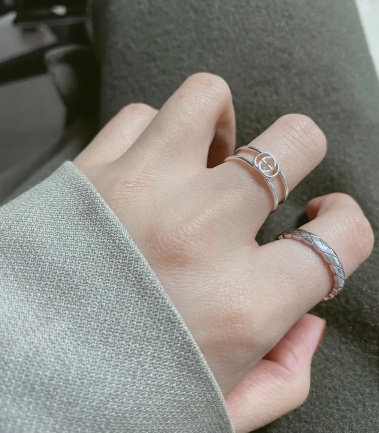 鏤空設計 簡約百搭 交織圖案連接兩個指環