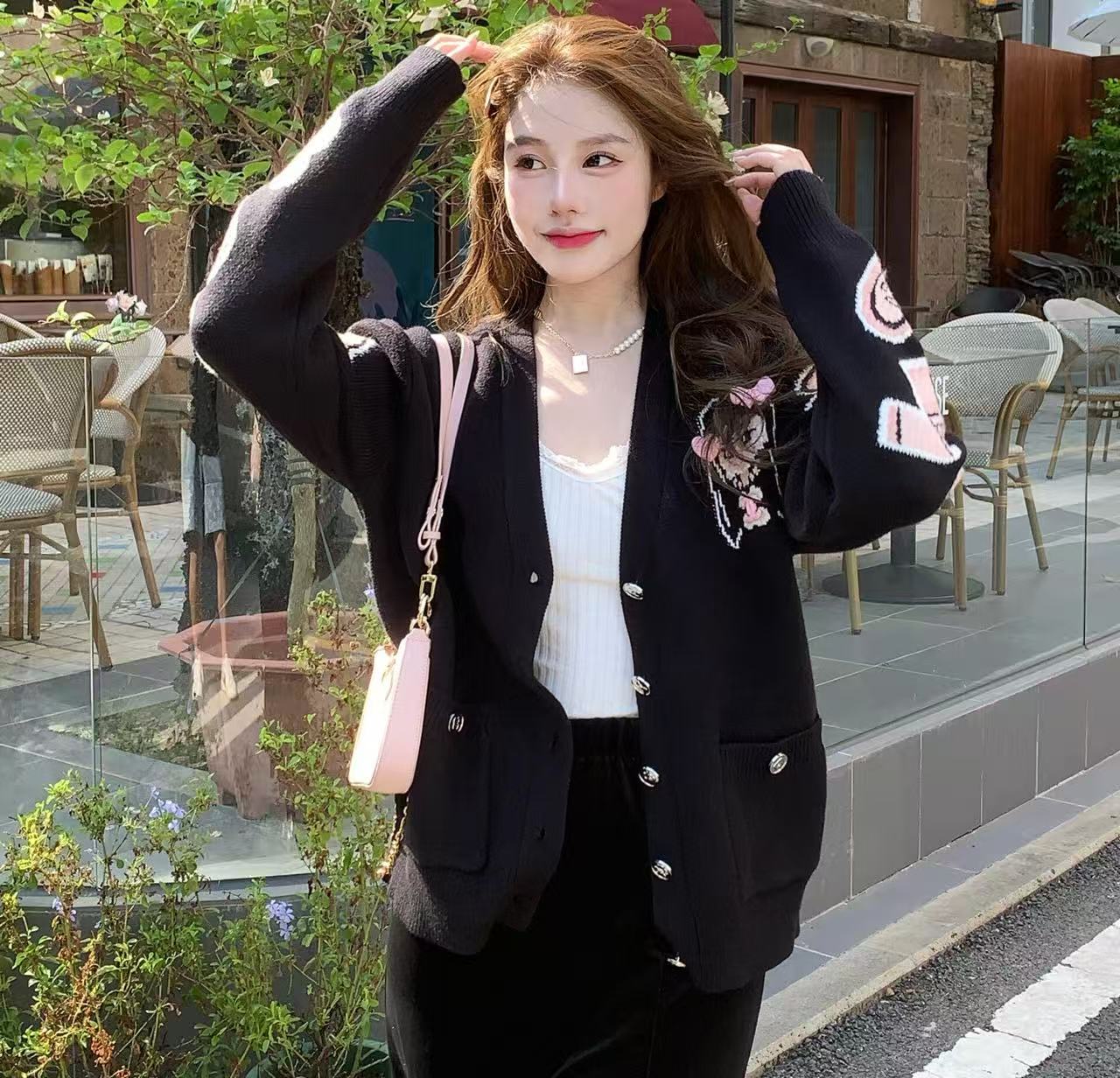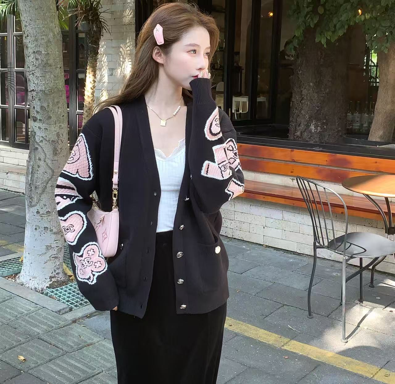 25B 卡通愛心羊絨開衫!這件外套真的太美了,質感好到沒話說,穿上它立刻就能感受到那種高級又優雅的氣場。