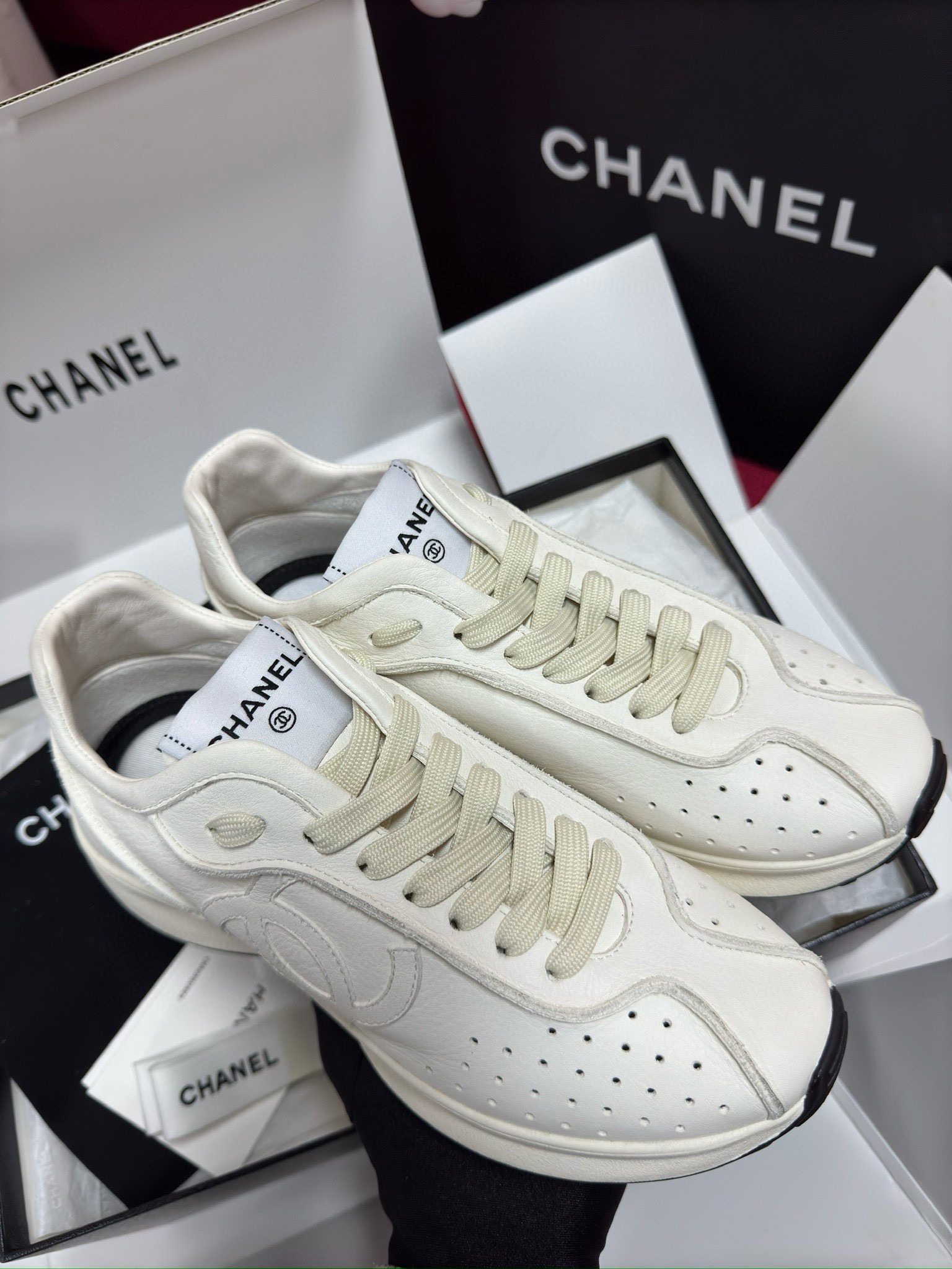 這款鞋以復古奶白色為主調,輕巧的設計讓雙腳顯得更加修長精緻,搭配柔軟細膩的小牛皮材質,整體質感與舒適度堪稱完美。