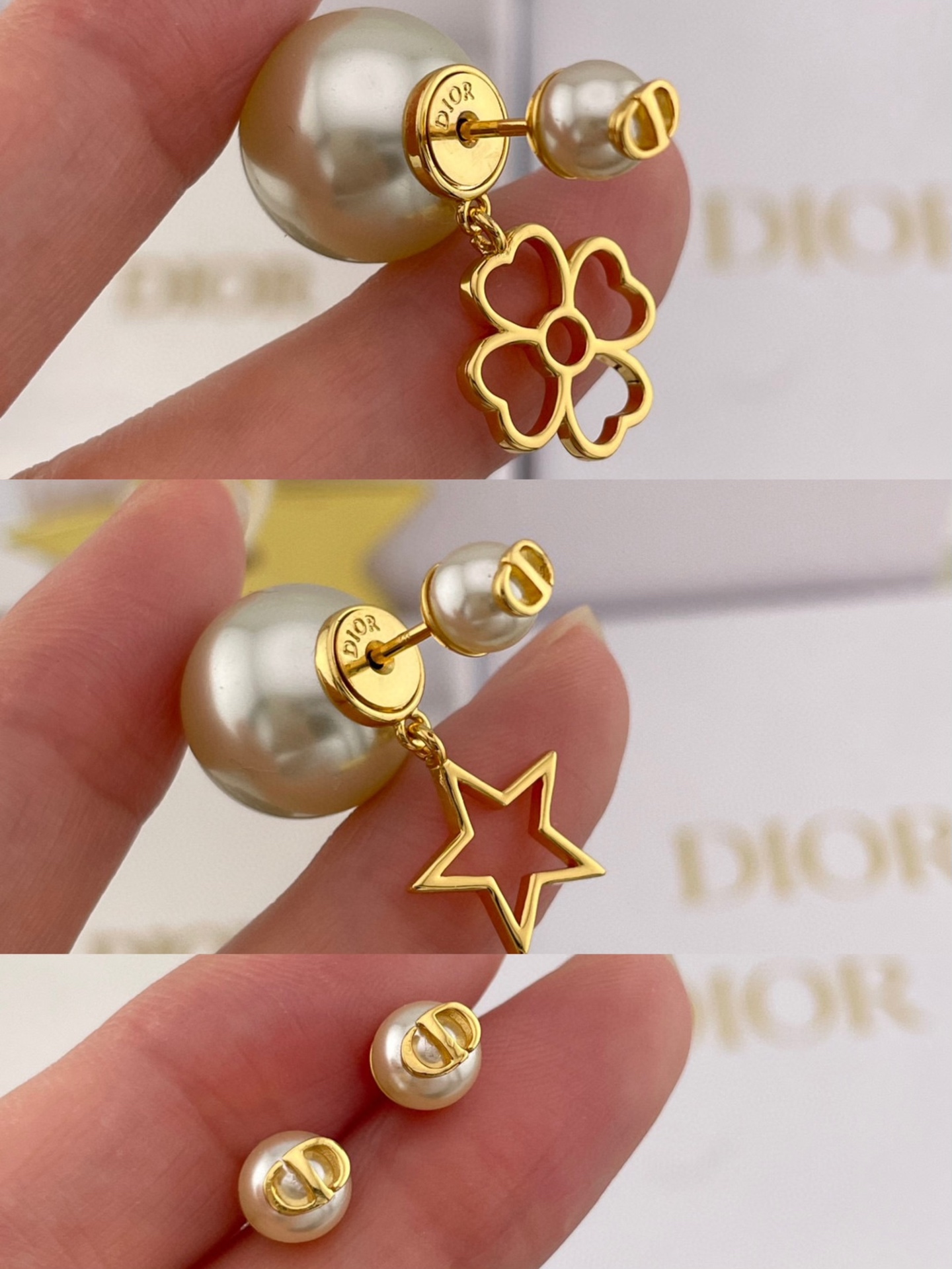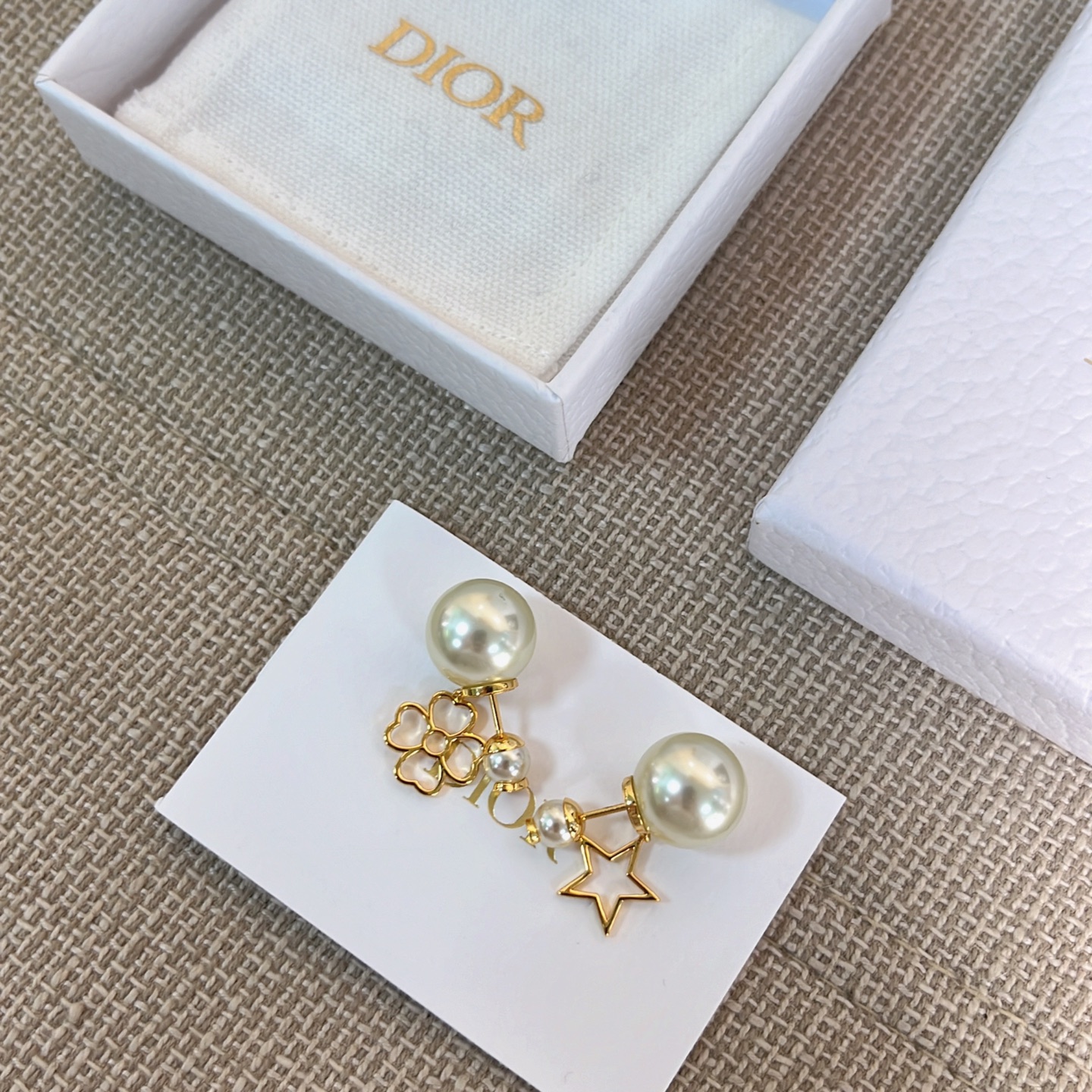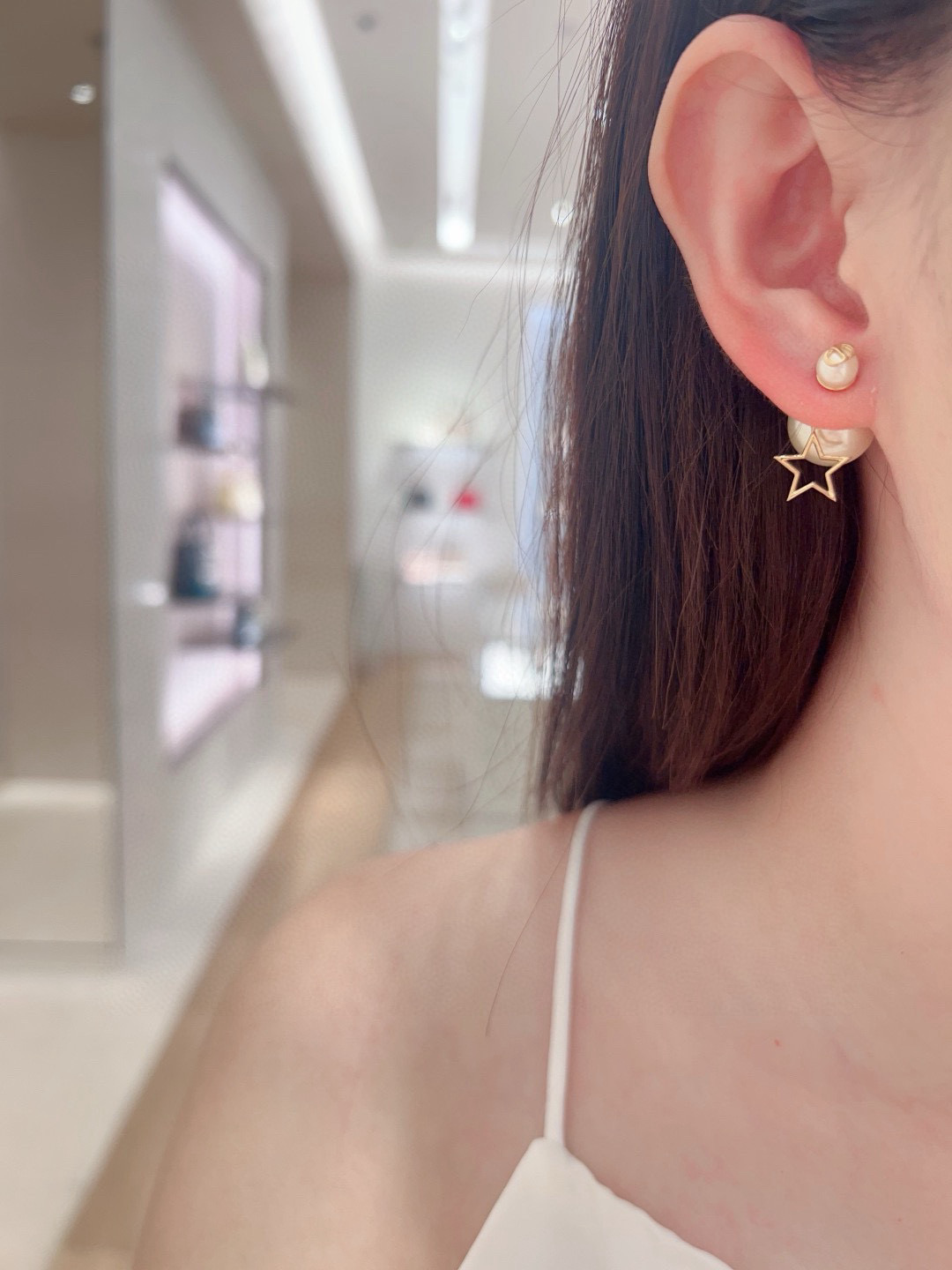 耳環採用經典「雙珠設計」,大小珍珠層次分明,小珠上還點綴著經典 CD 標誌,展現滿滿精緻質感。