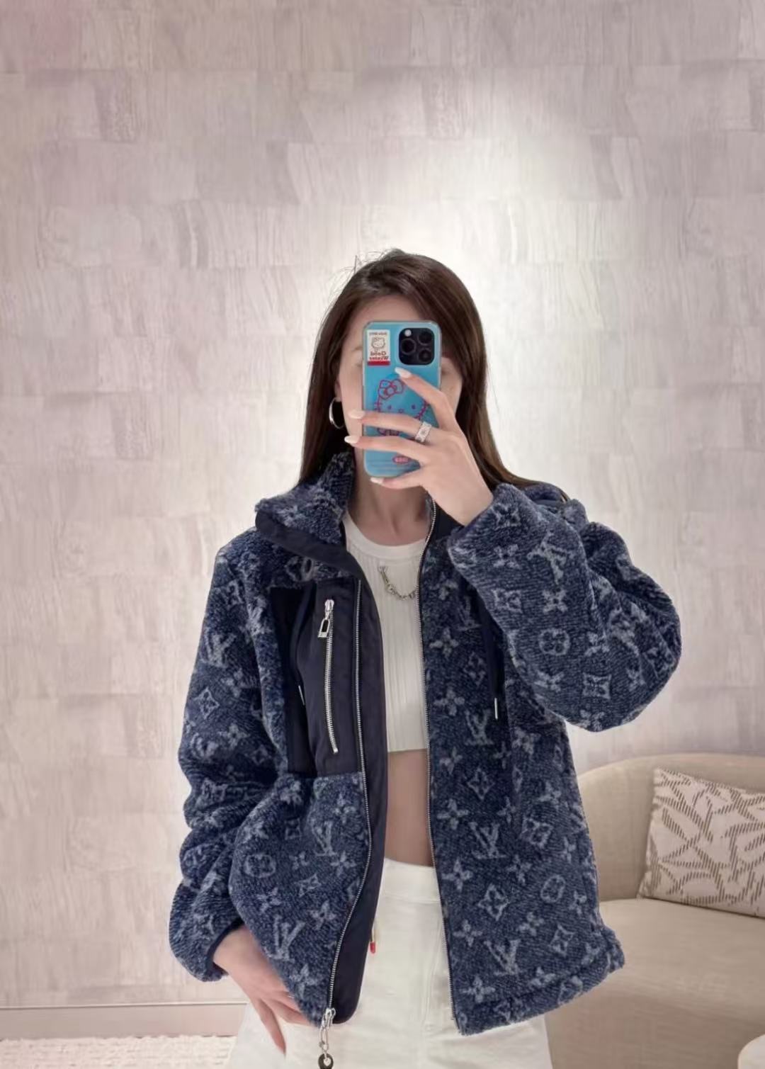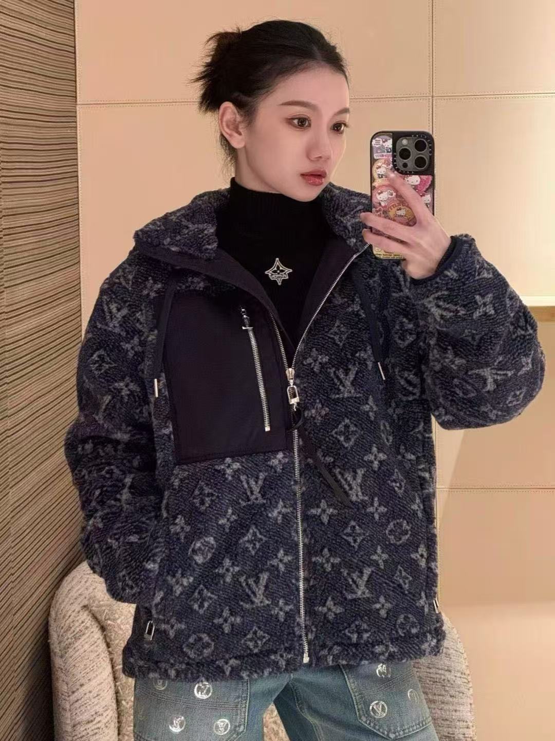 2026早春新品 L家 SKI滑雪系列Monogram提花羊羔絨連帽外套