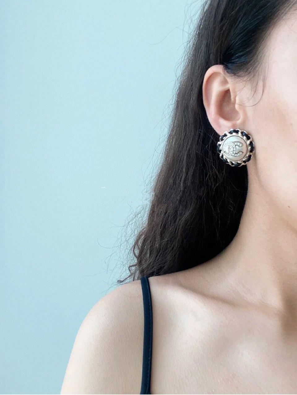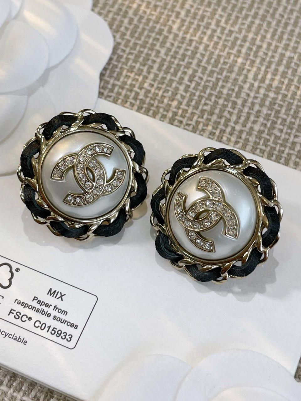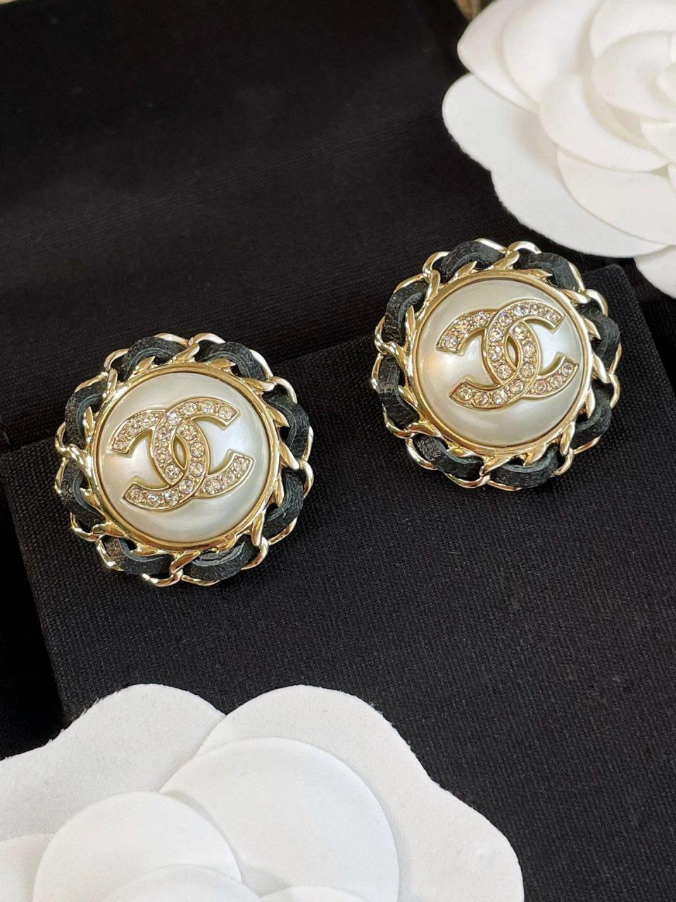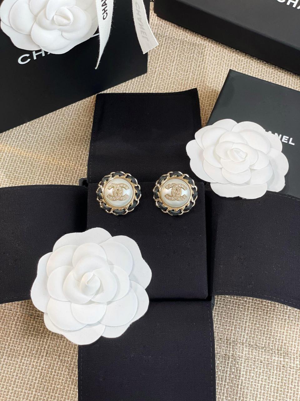 2023春夏 C家圓形穿皮珍珠圓耳釘