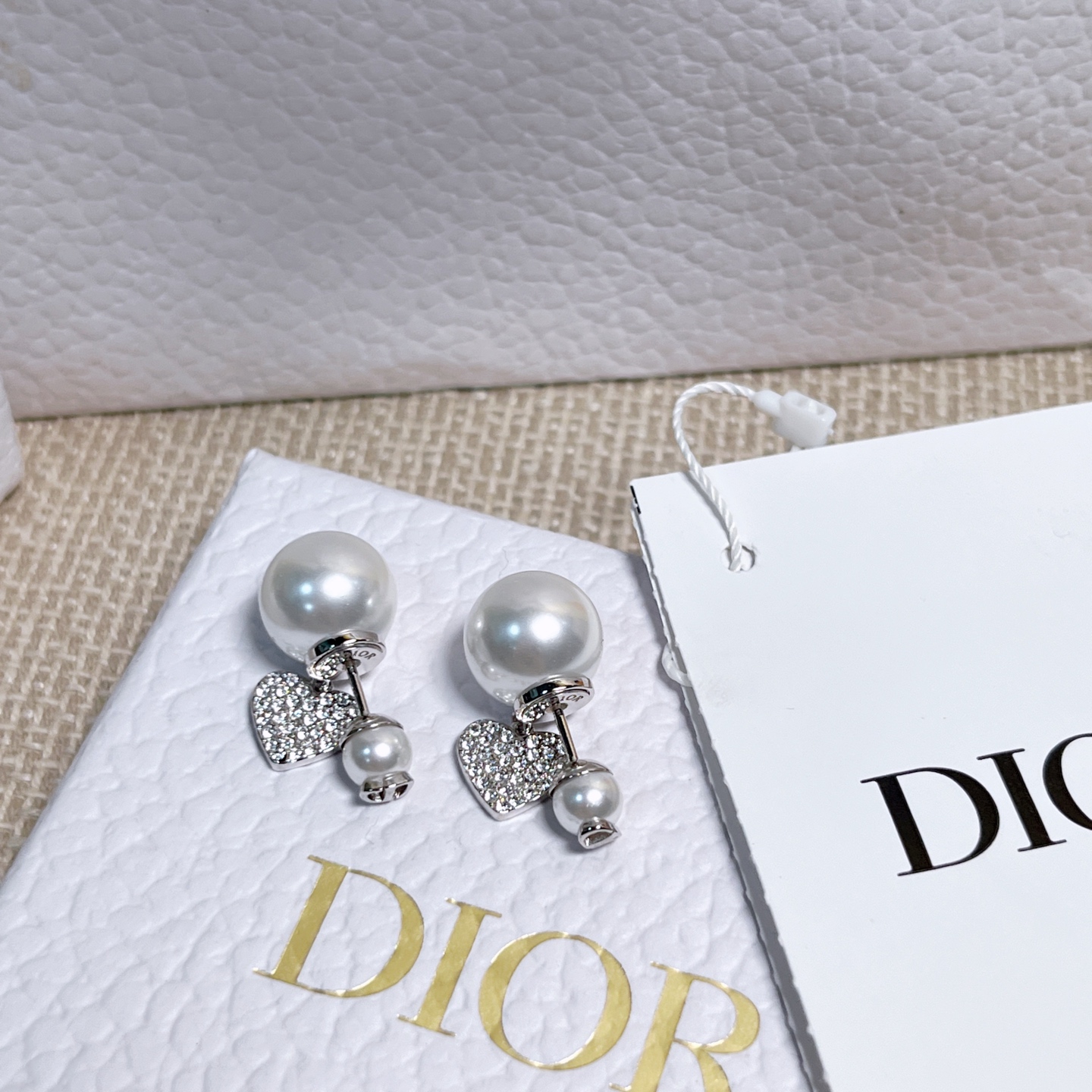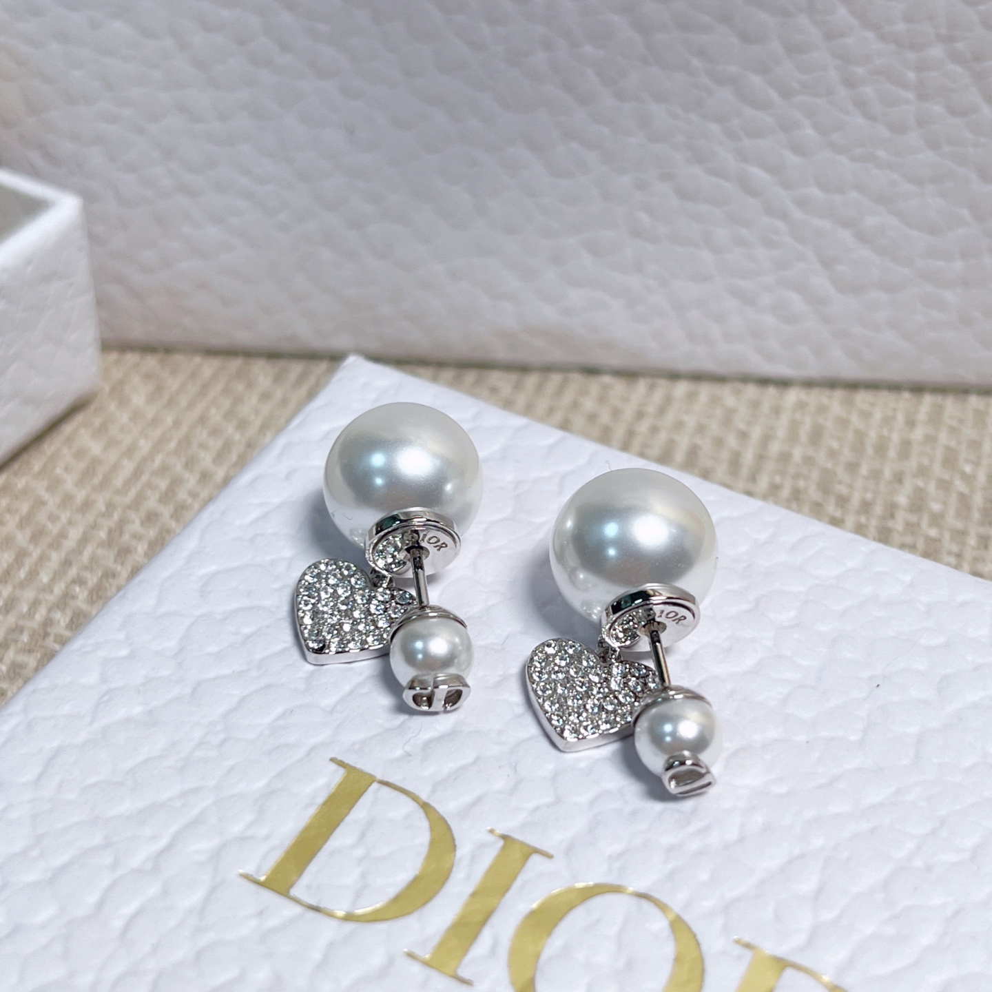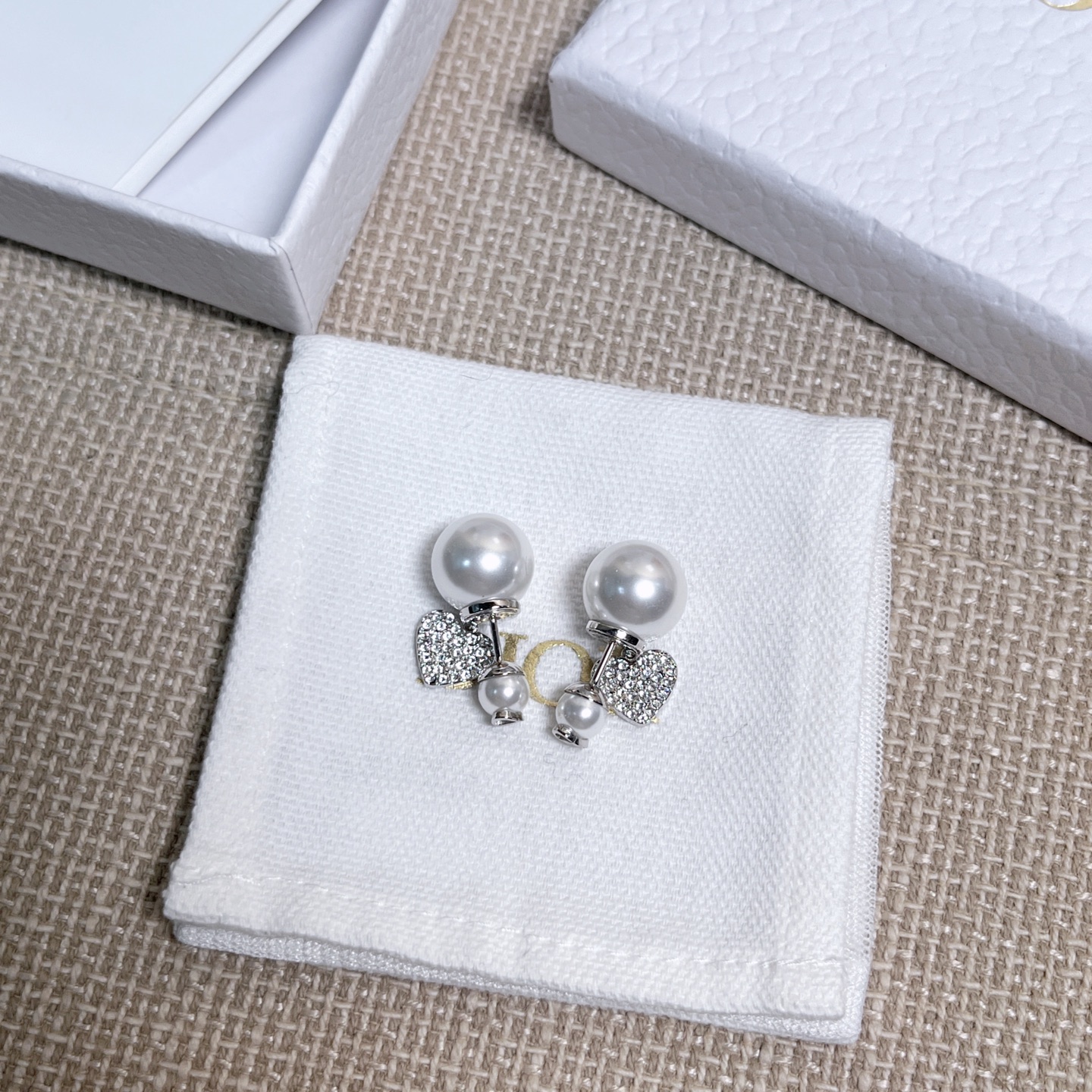 2025早秋新品 D家 滿鑽愛心雙珠耳釘