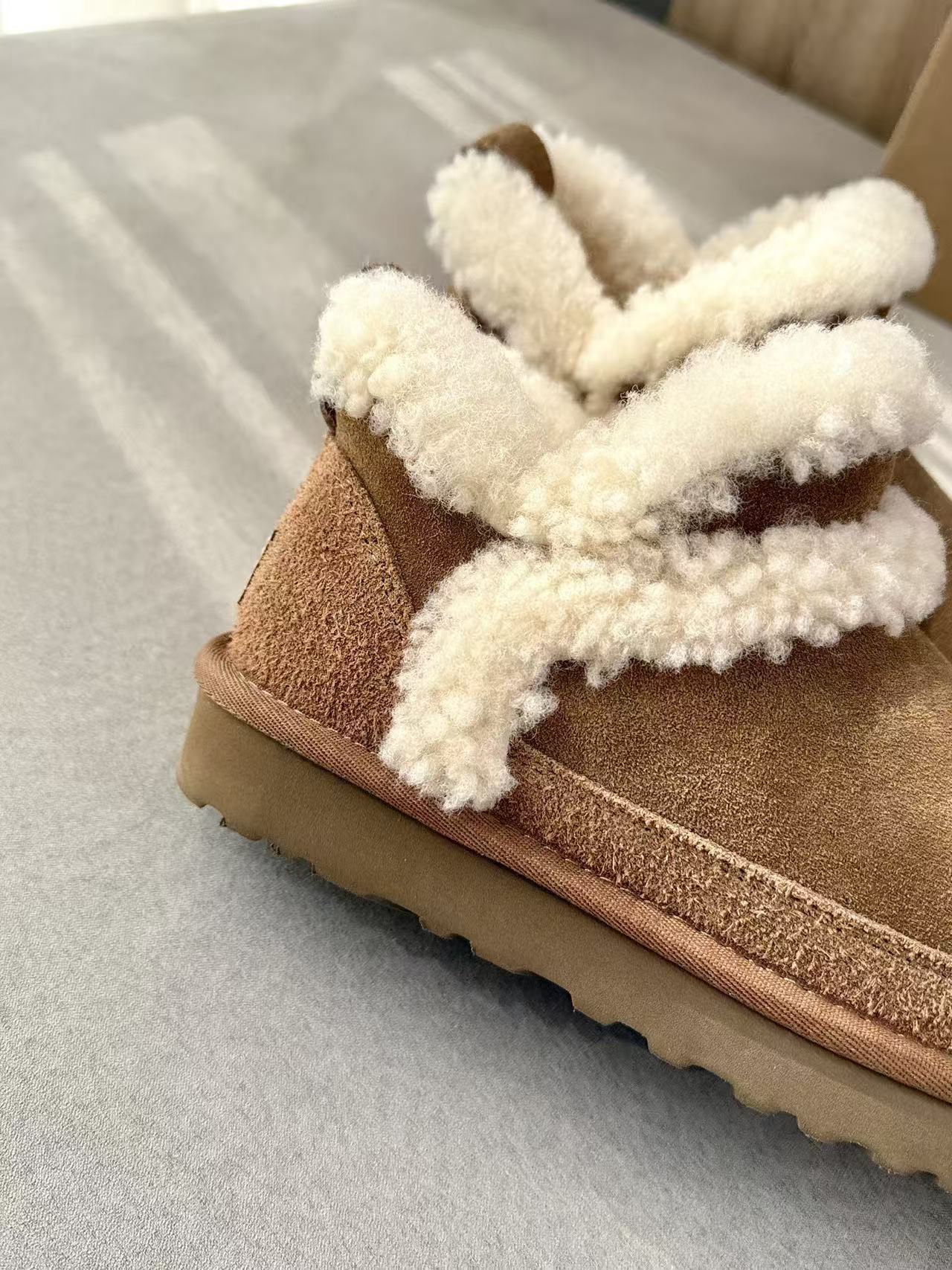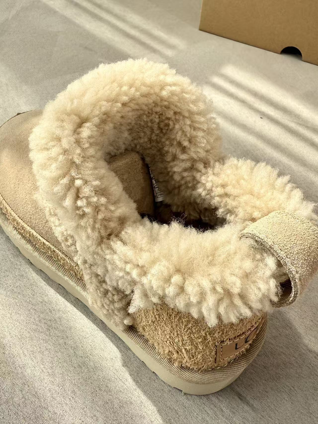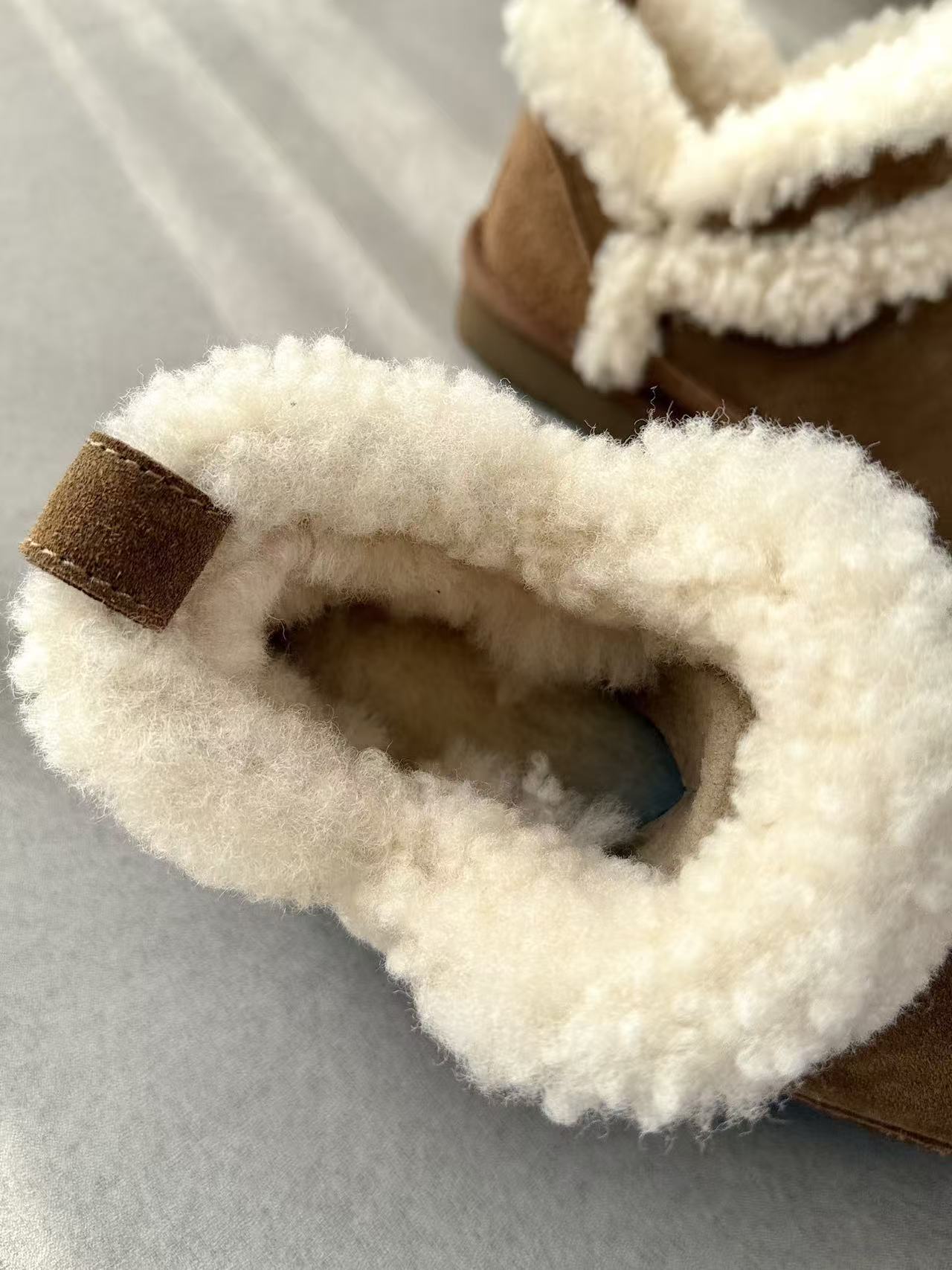 溢毛鞋領: 鞋領的羊毛設計軟乎乎且超親膚,不僅讓上腳觸感極佳,也為靴子增添了一抹時髦可愛的細節。
