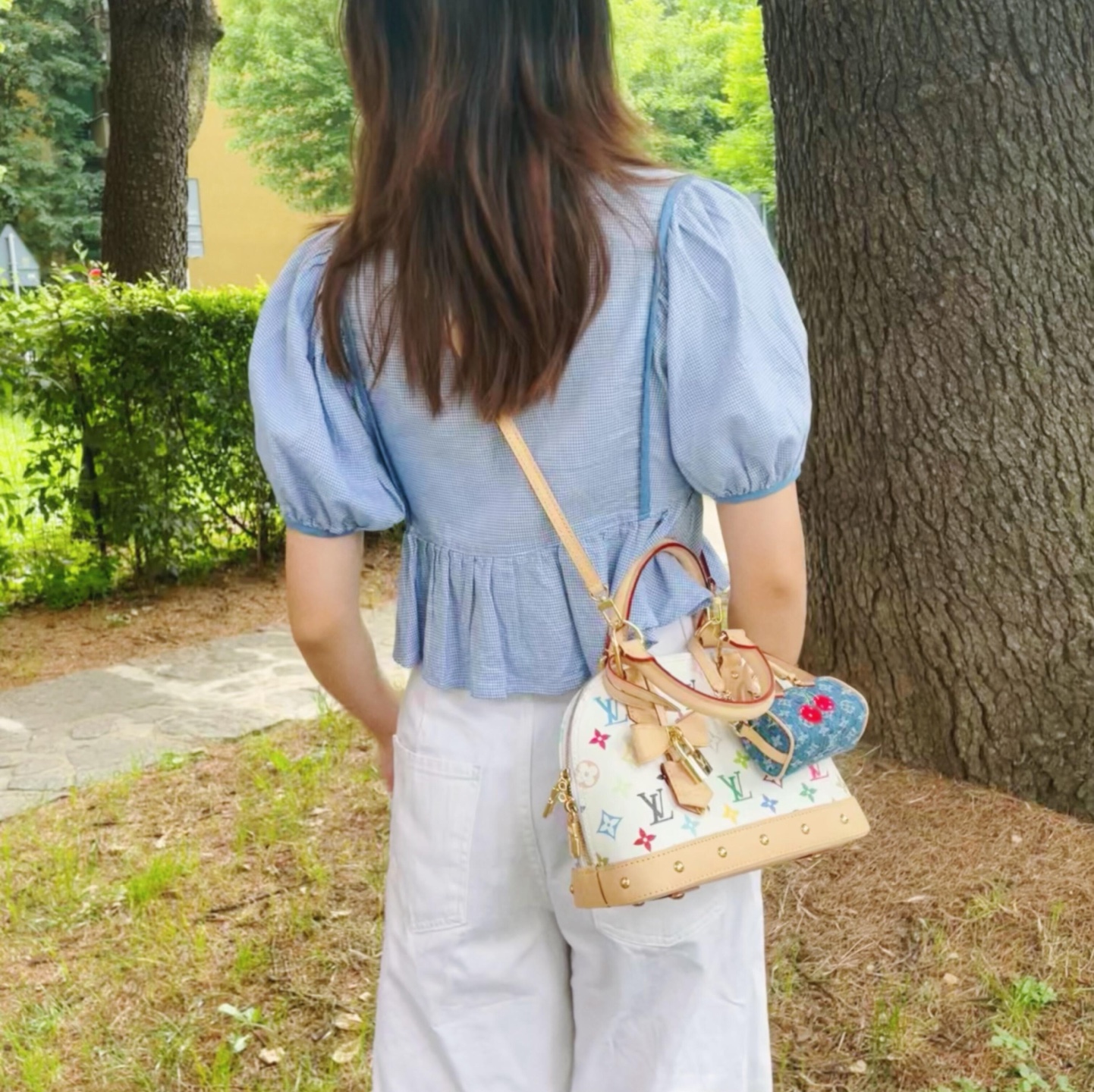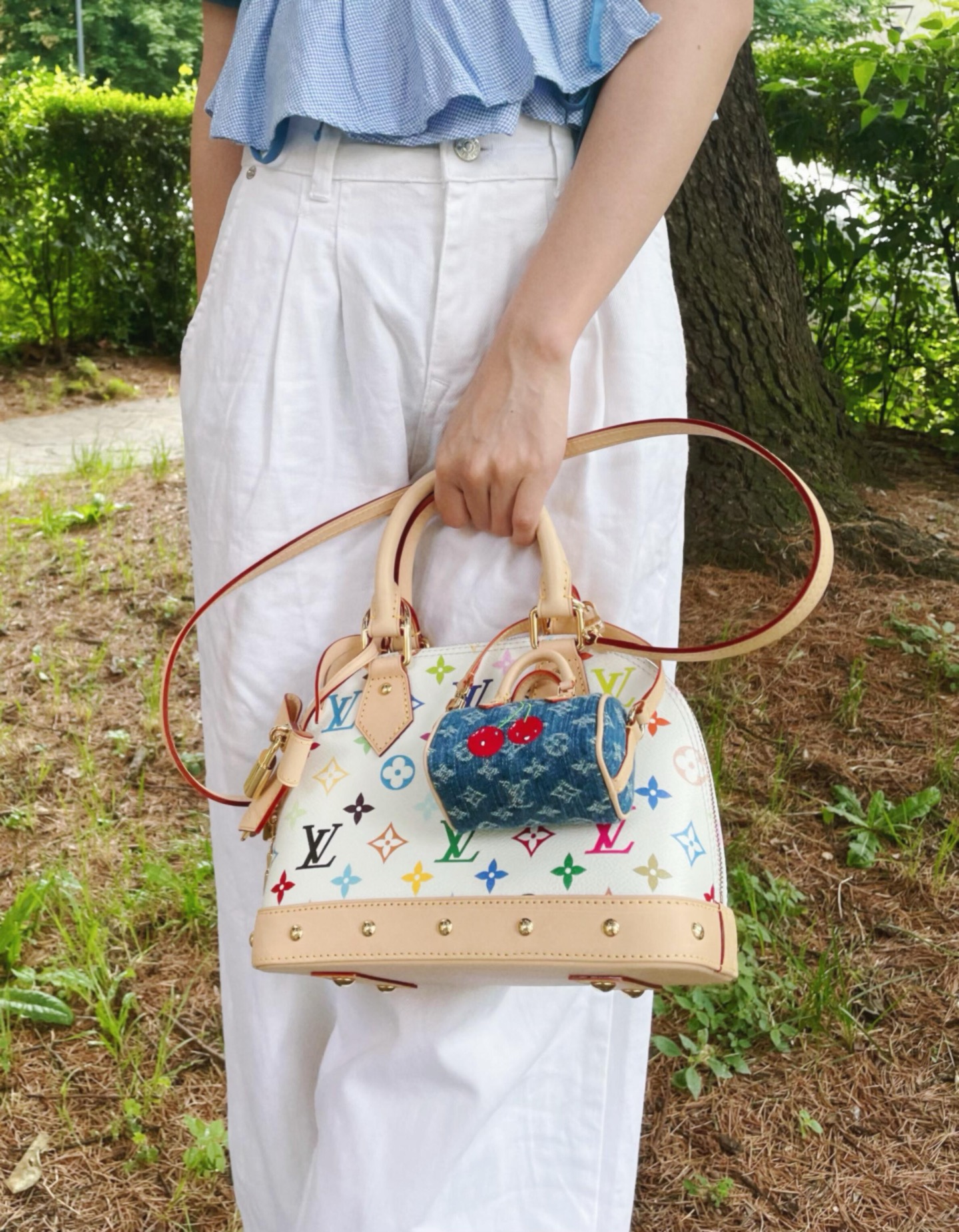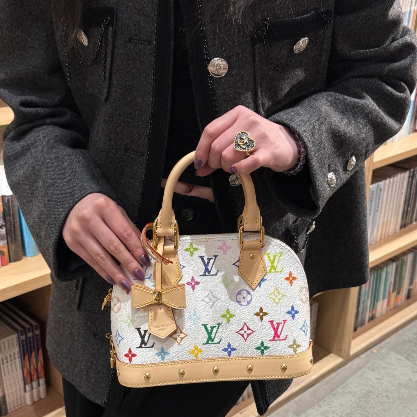 ALMA BB 本身就是 LV 家族裡最具代表性的包款之一,以簡潔弧形輪廓著稱,搭配村上隆的經典白三彩設計,讓這只包不僅保有原本的優雅氣質,又多了分俏皮可愛的藝術調性。