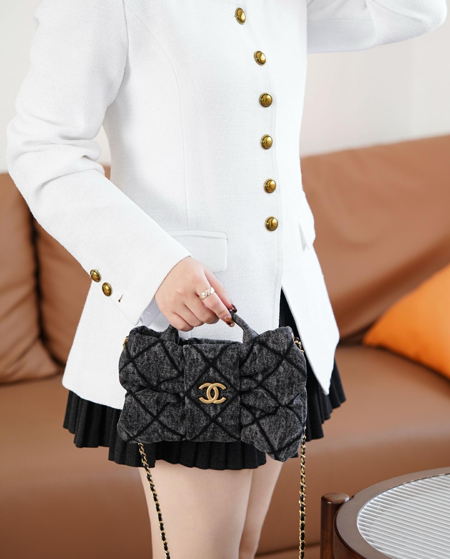 蝴蝶結不再只是配角,而是整顆包的靈魂焦點,搭配標誌性的雙 C 扣件,辨識度非常高。