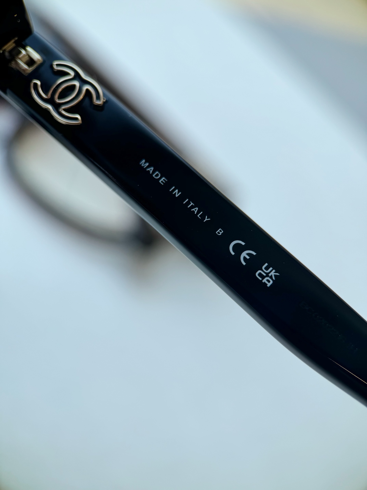 上寬下窄的比例,視覺上更顯臉小,輕鬆打造俐落的 V 臉感。鏡腿上內外互鎖的珐瑯 logo 搭配三種不同色澤的五金細節,層次感豐富又充滿趣味,同時散發一貫的精緻優雅。