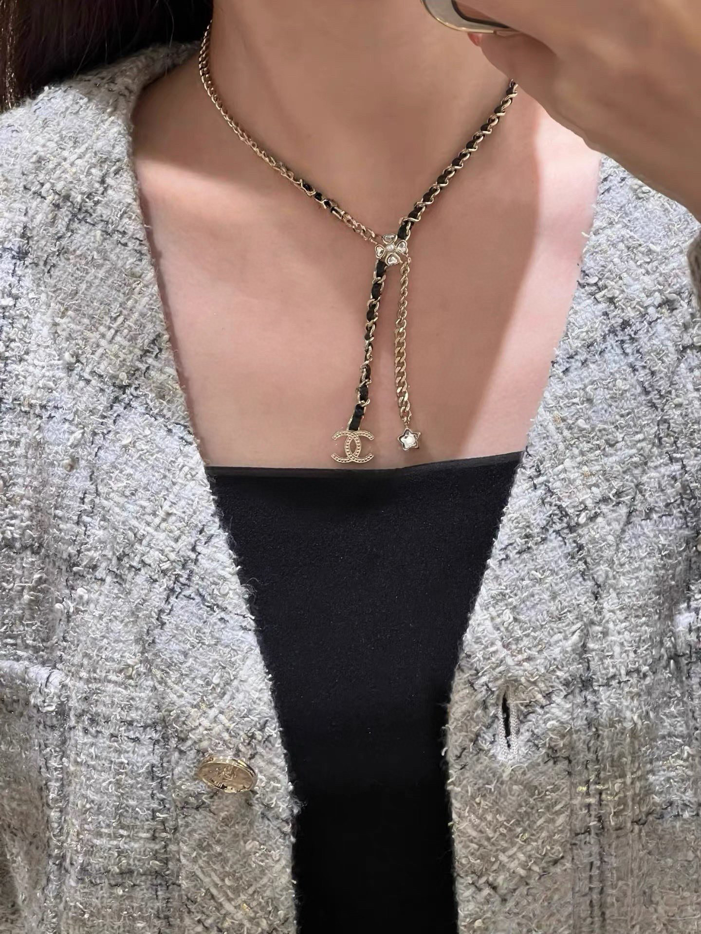 2025秋冬新品 C家 長短流蘇皮穿項鍊