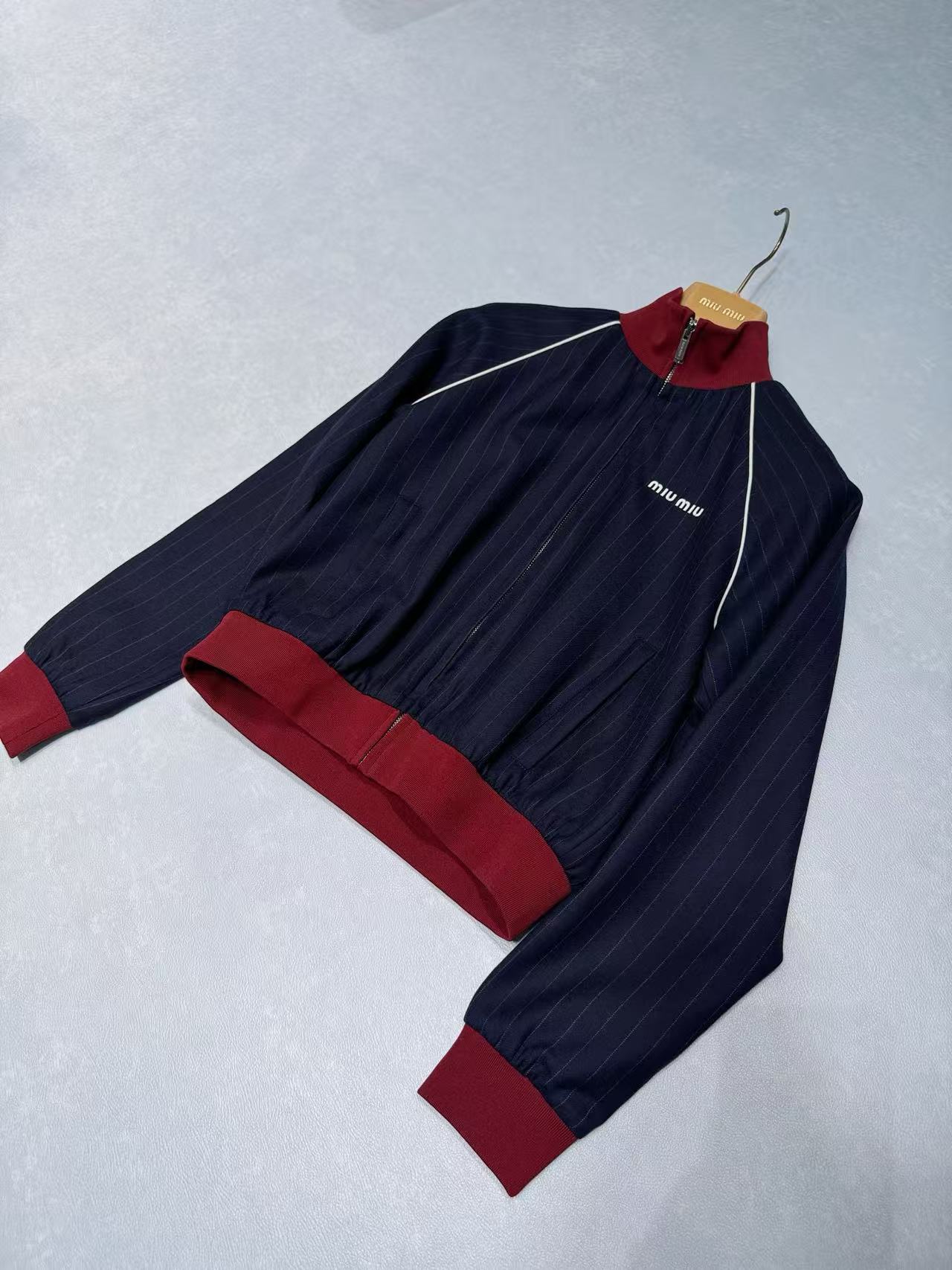 2025早秋 Miu家 撞色落肩短款夾克外套