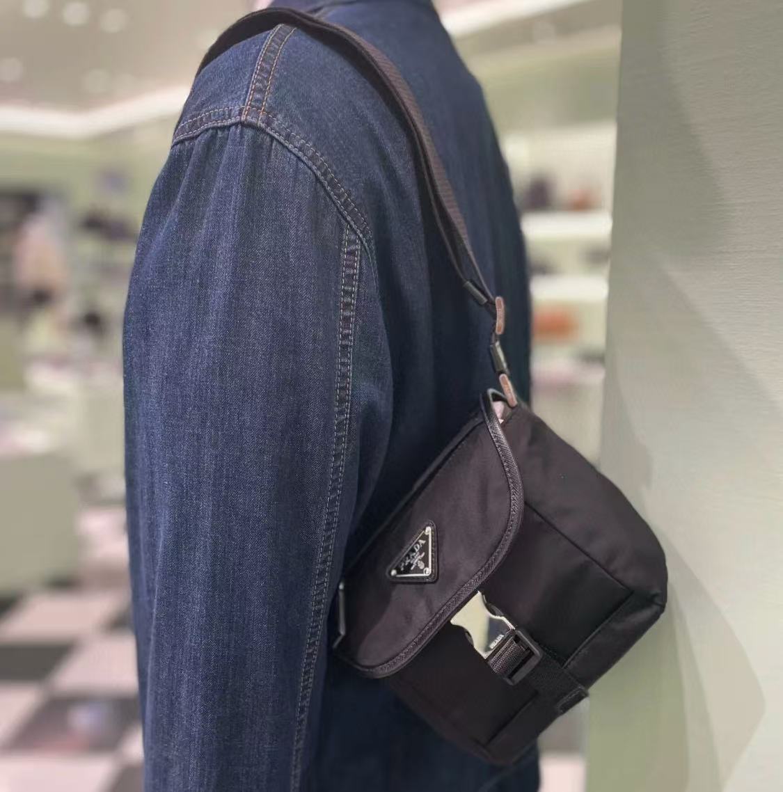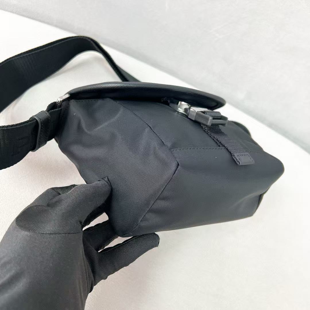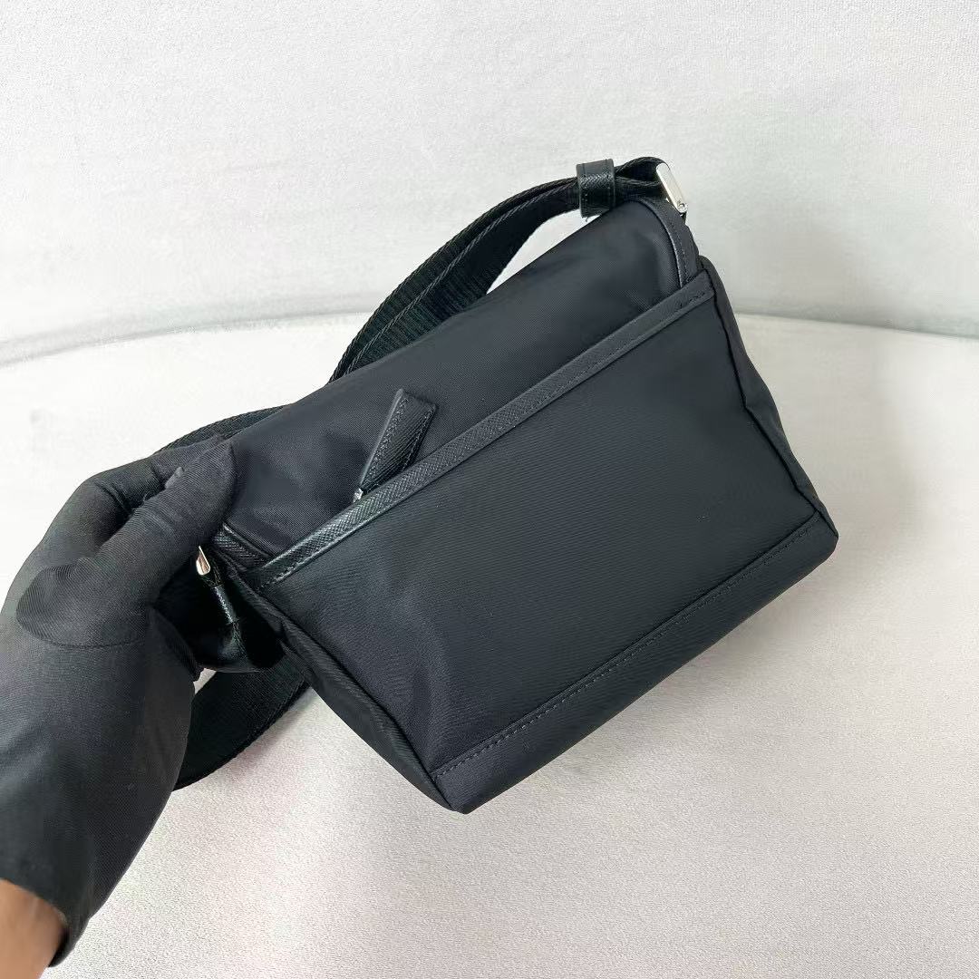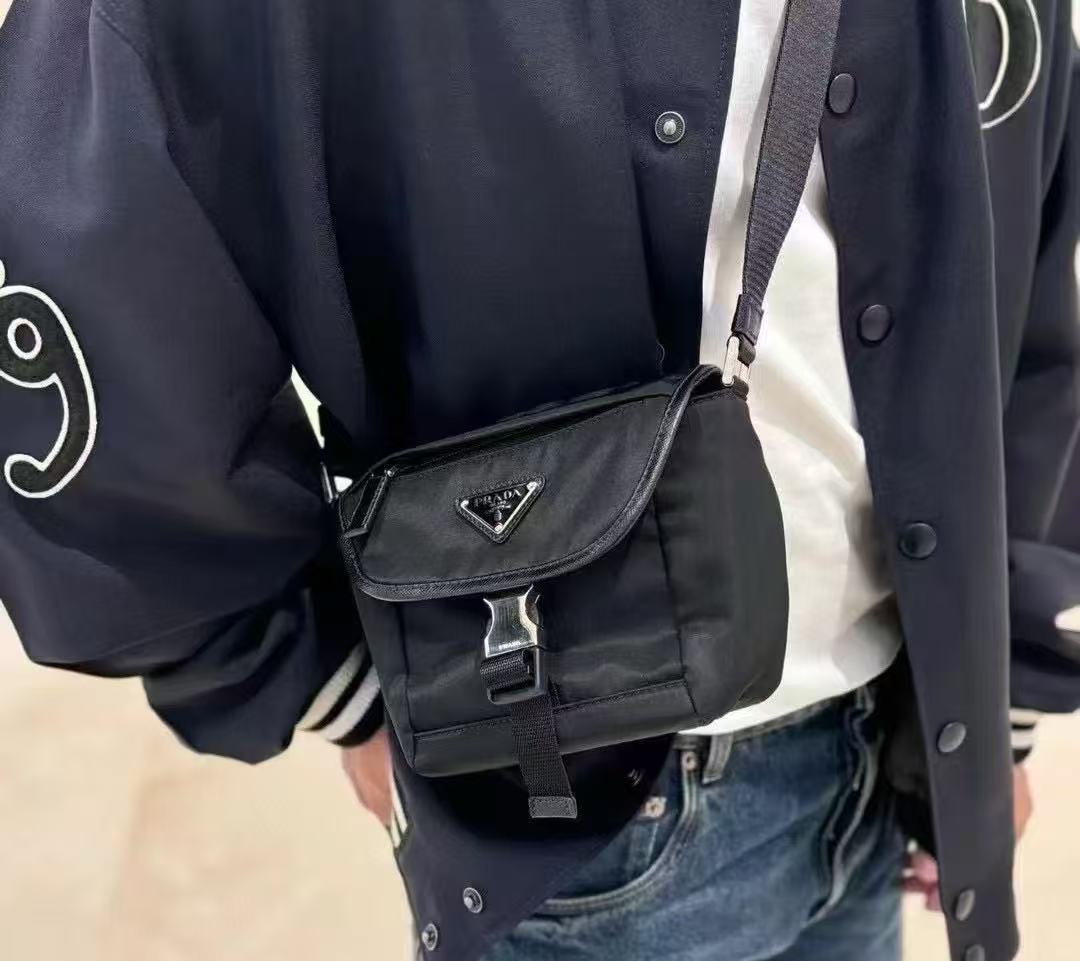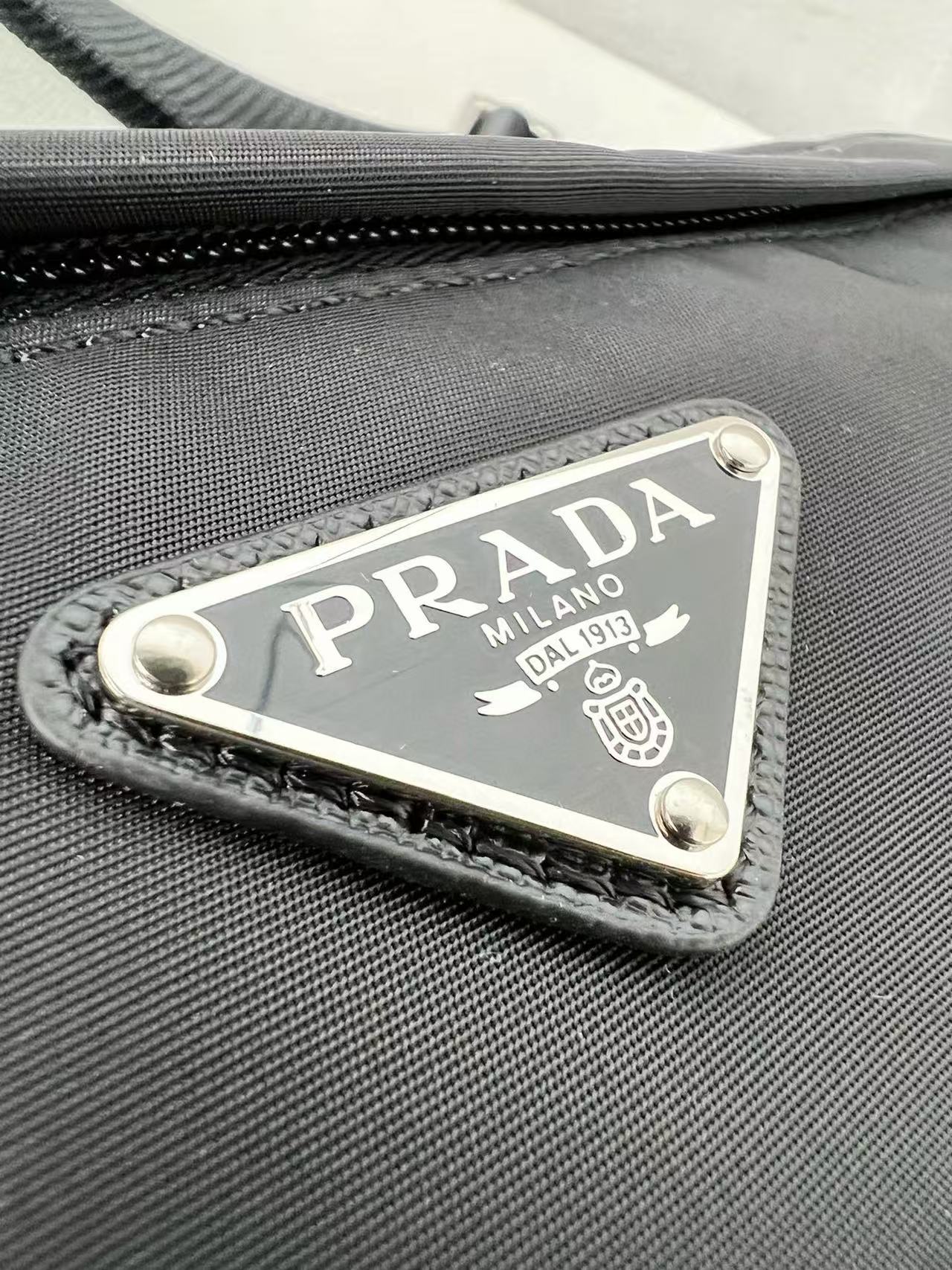 正面有品牌經典三角 LOGO 珐瑯標誌,低調卻不失辨識度,是時尚與功能的完美平衡。