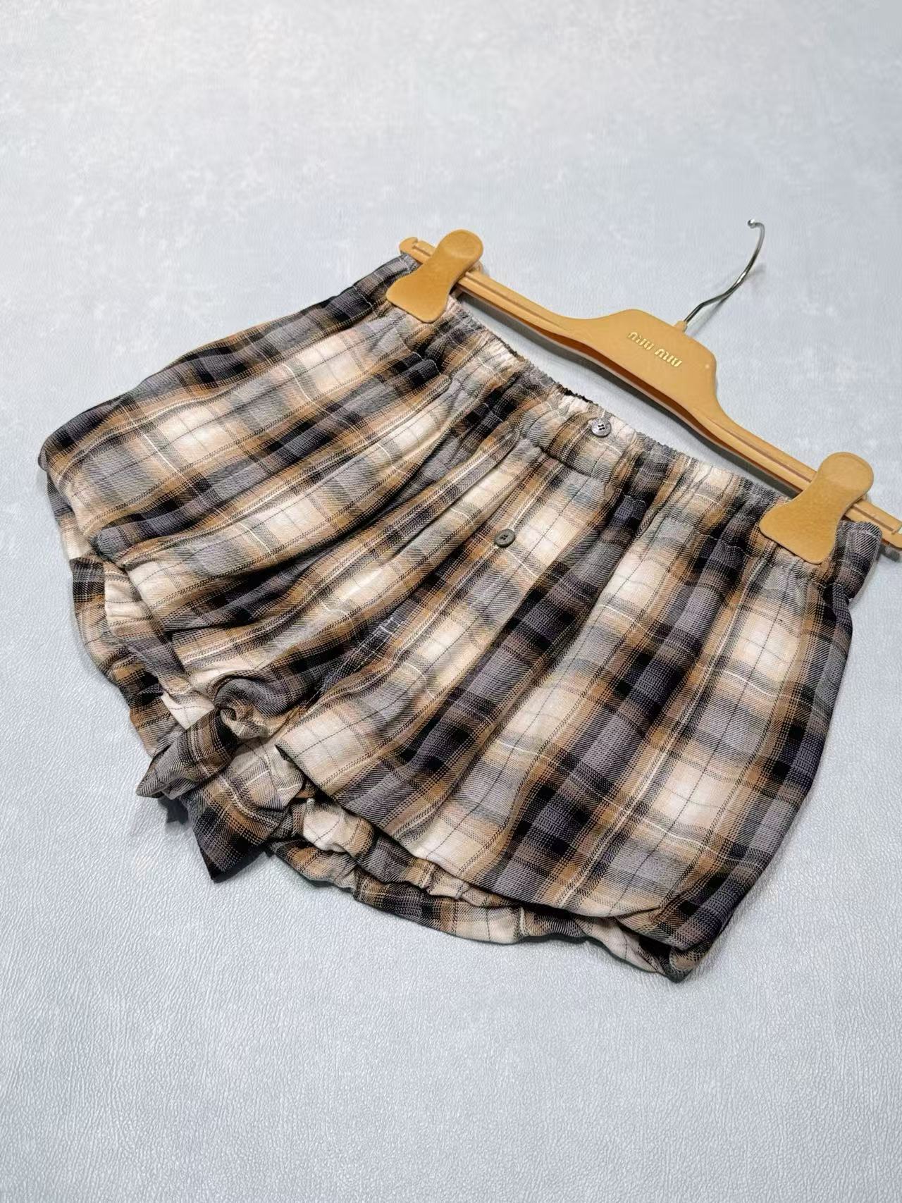 2025春夏 AC家 格紋撞色花苞短褲|慵懶高級,春夏必備時尚單品!