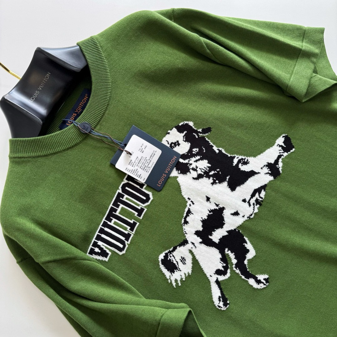 這款針織T恤以可愛的小狗圖案為主題,結合精緻工藝與高品質材質,是日常穿搭中俏皮又實穿的選擇。