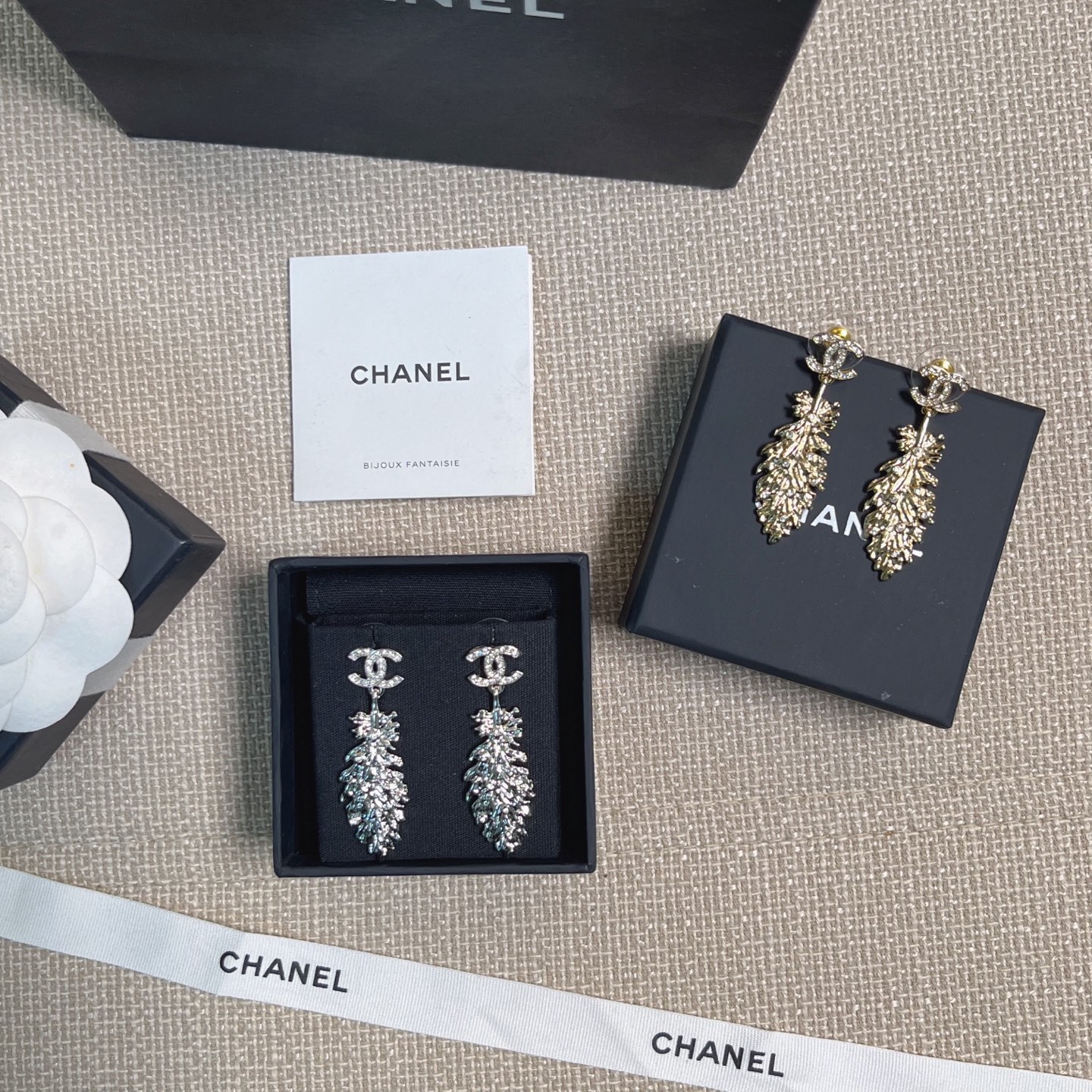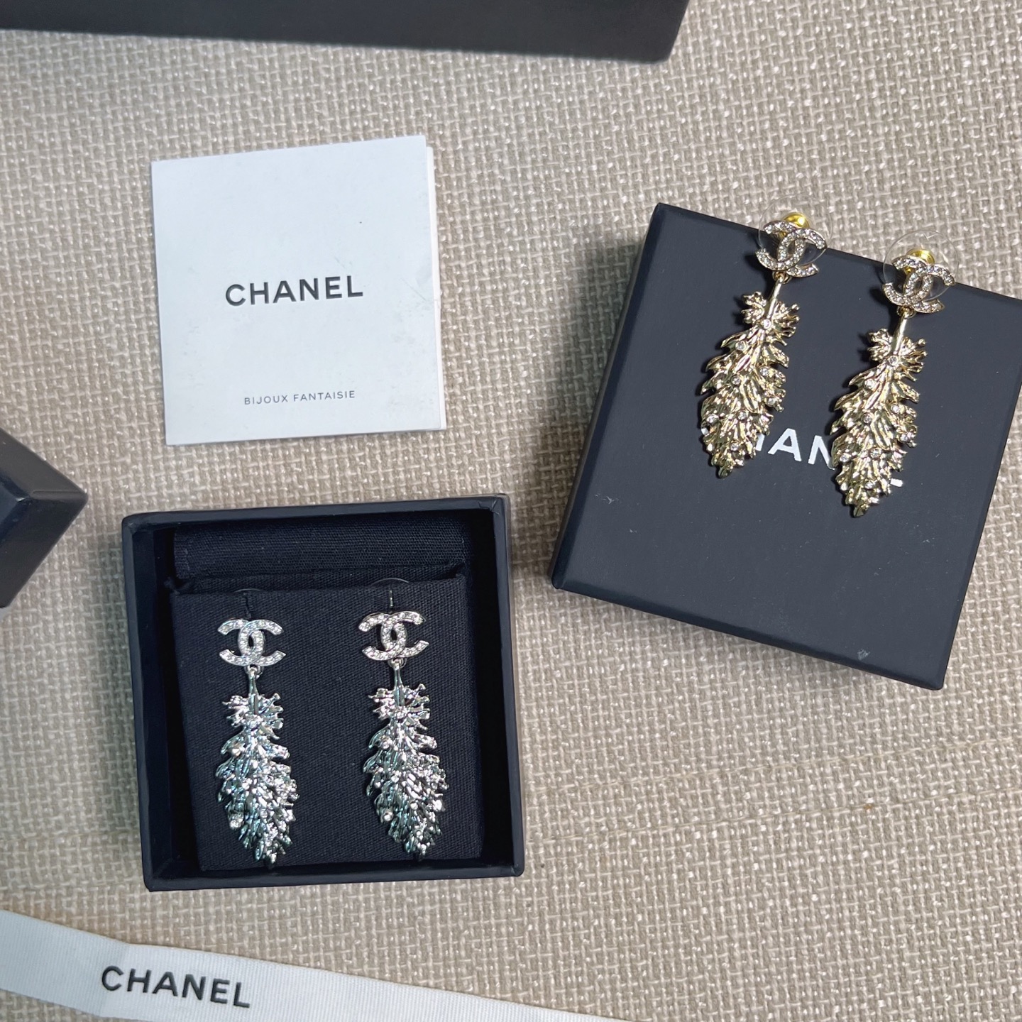 2025春夏新品 C家 雙C吊羽毛耳環|絕美新作
