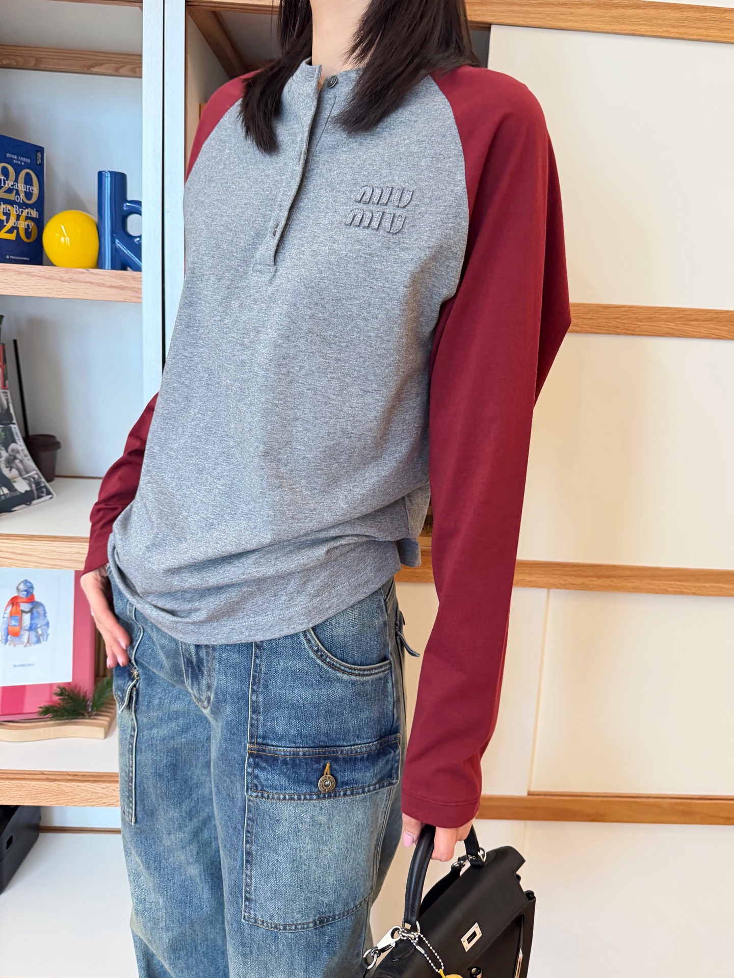 Miu家 撞色插肩長袖上衣