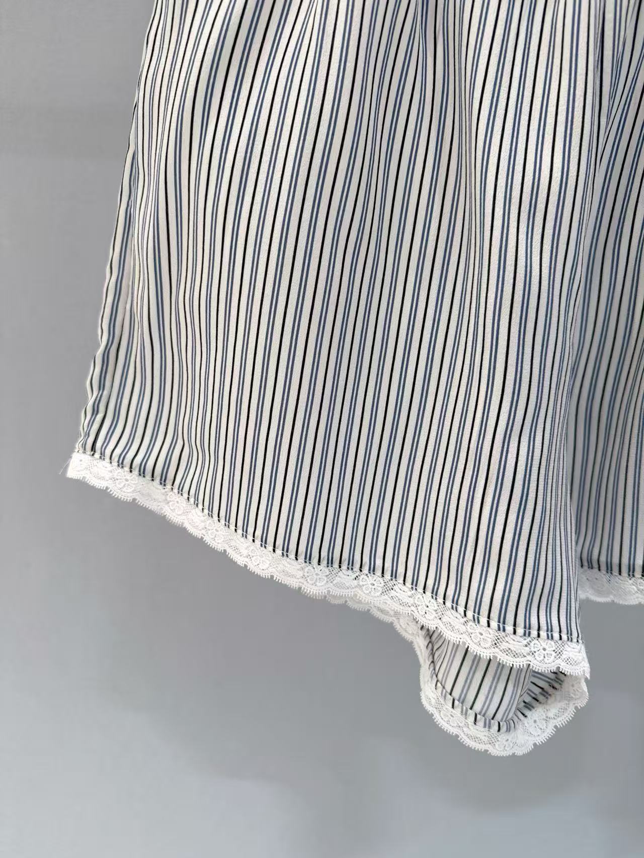 這根本是夏日甜妹穿搭的天花板!清爽條紋加上蕾絲滾邊的細節設計,甜美中又帶點性感,成套穿更有型,出遊、約會、旅行都能一套搞定,輕鬆拿捏鬆弛感+純欲風。