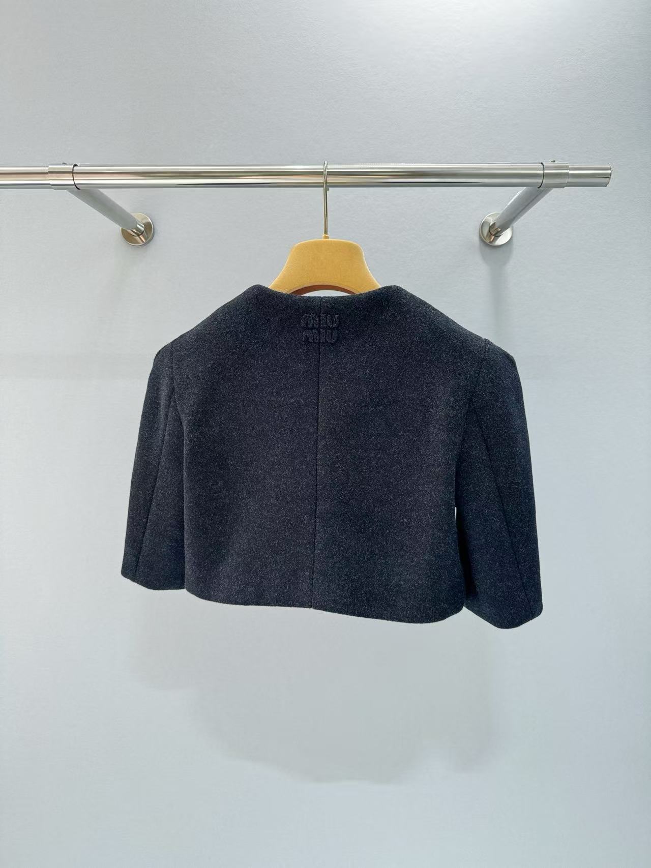 2025春夏 Miu家 兩粒扣短款羊毛短袖外套