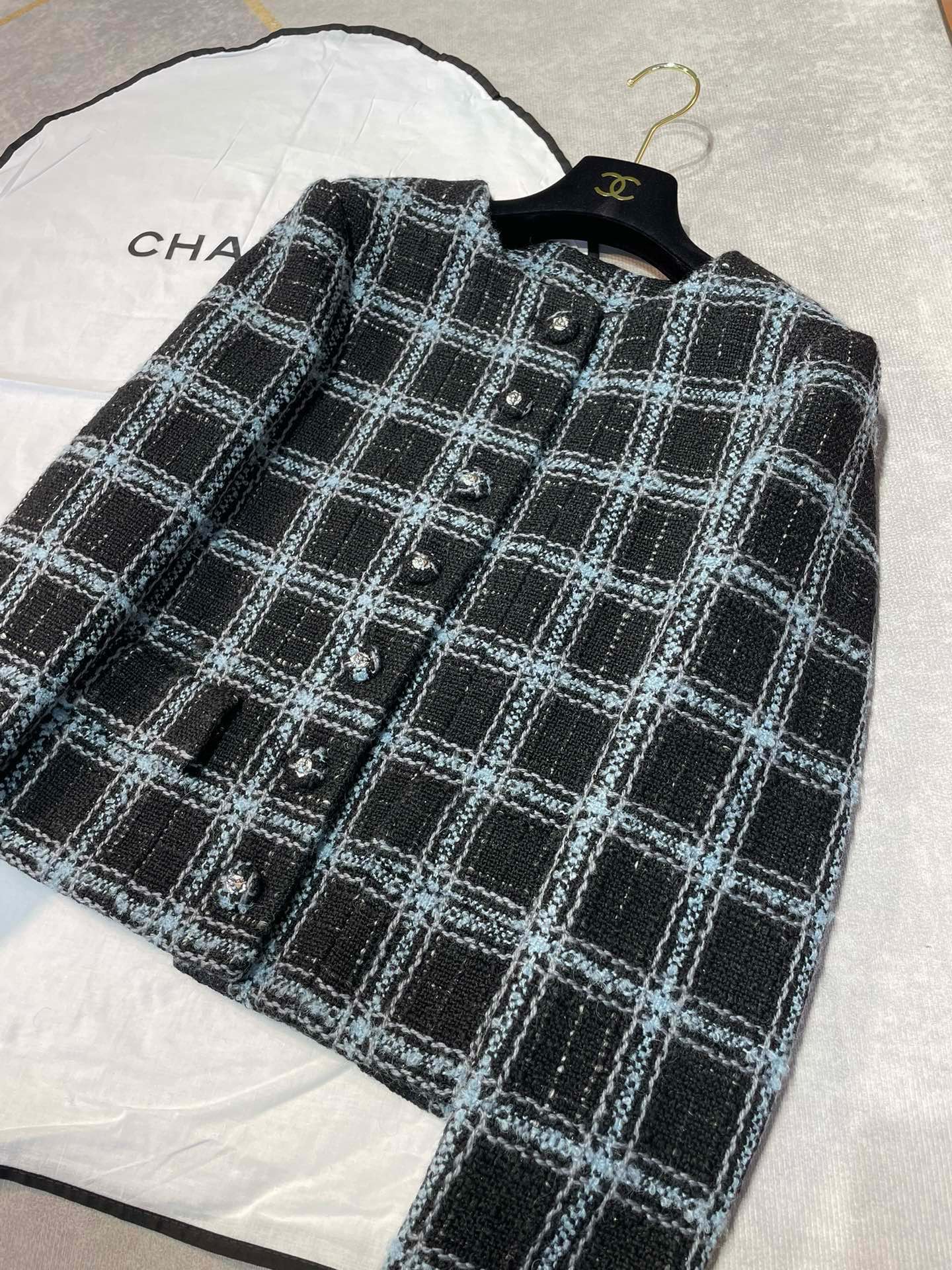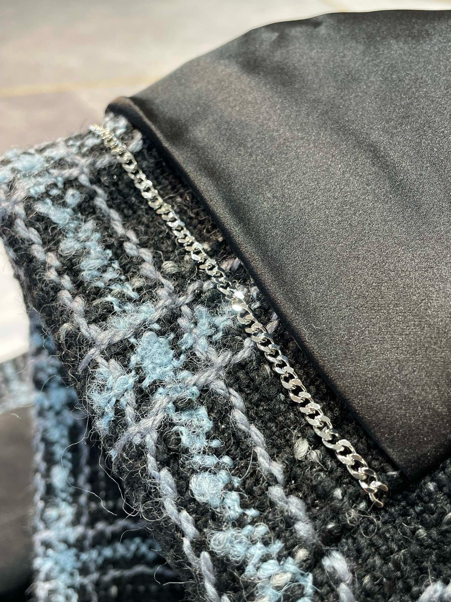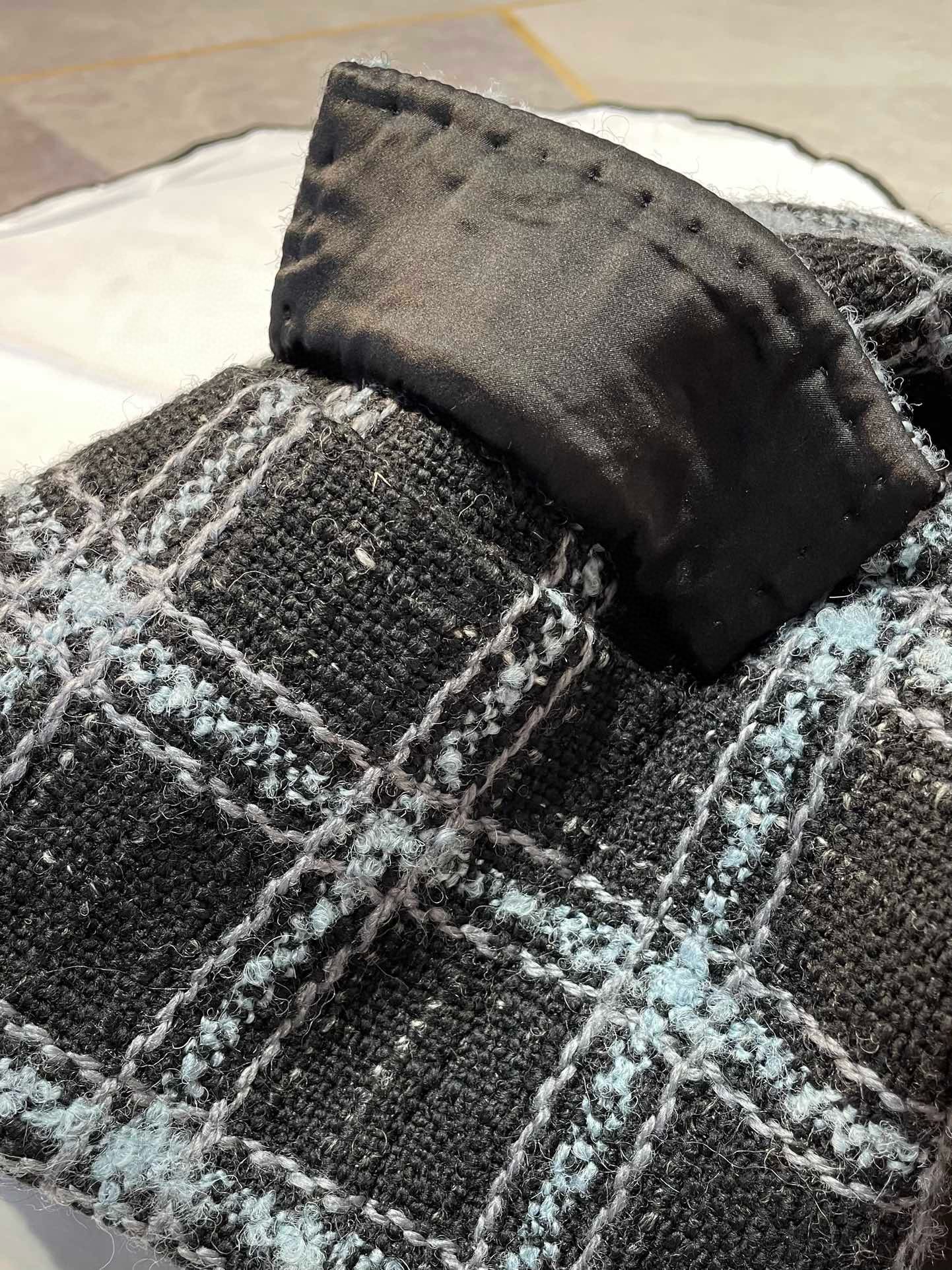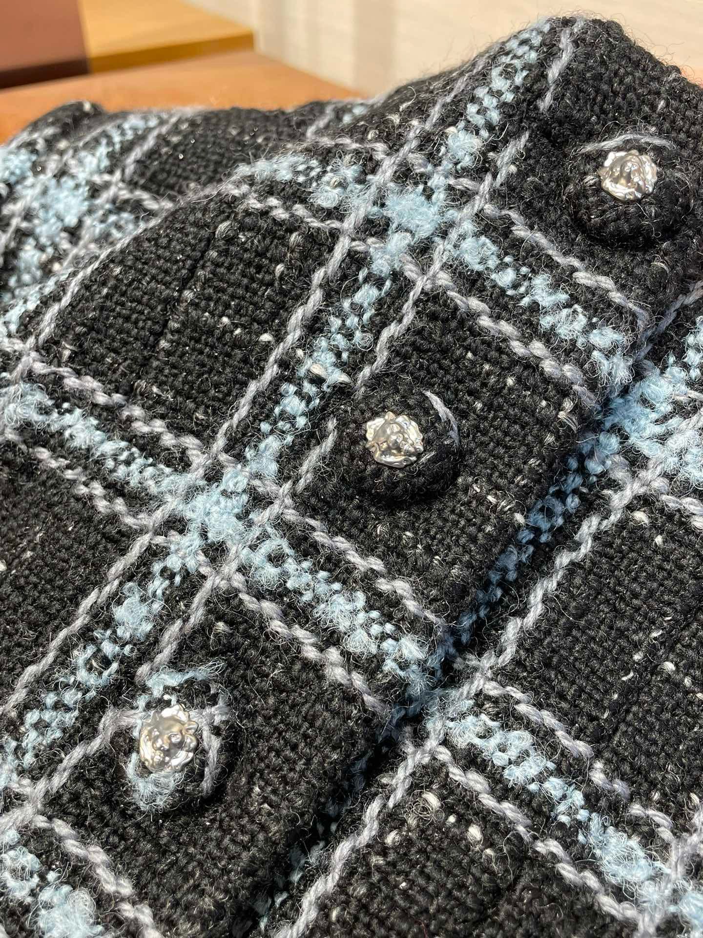 2024秋冬新品 C家格子黑藍配色軟呢外套