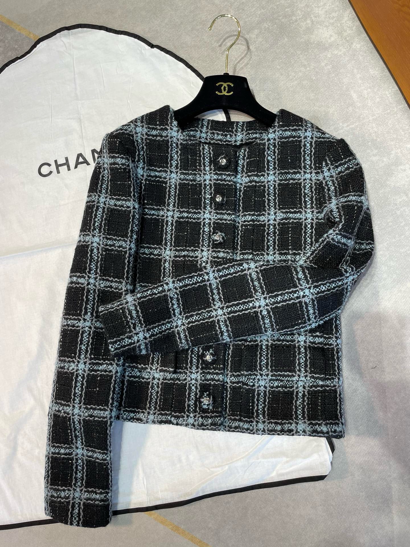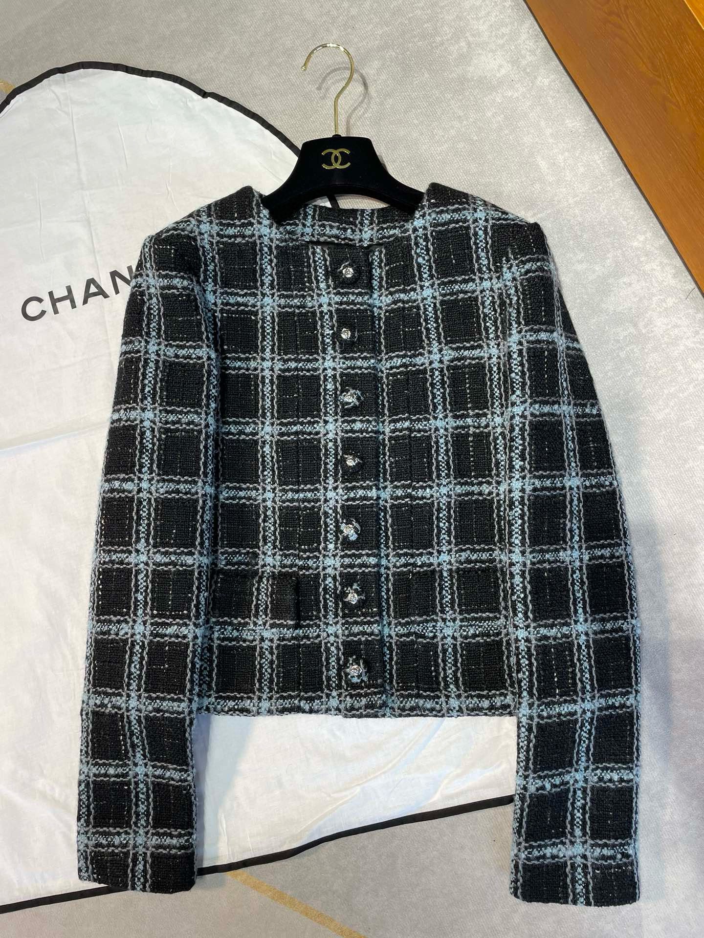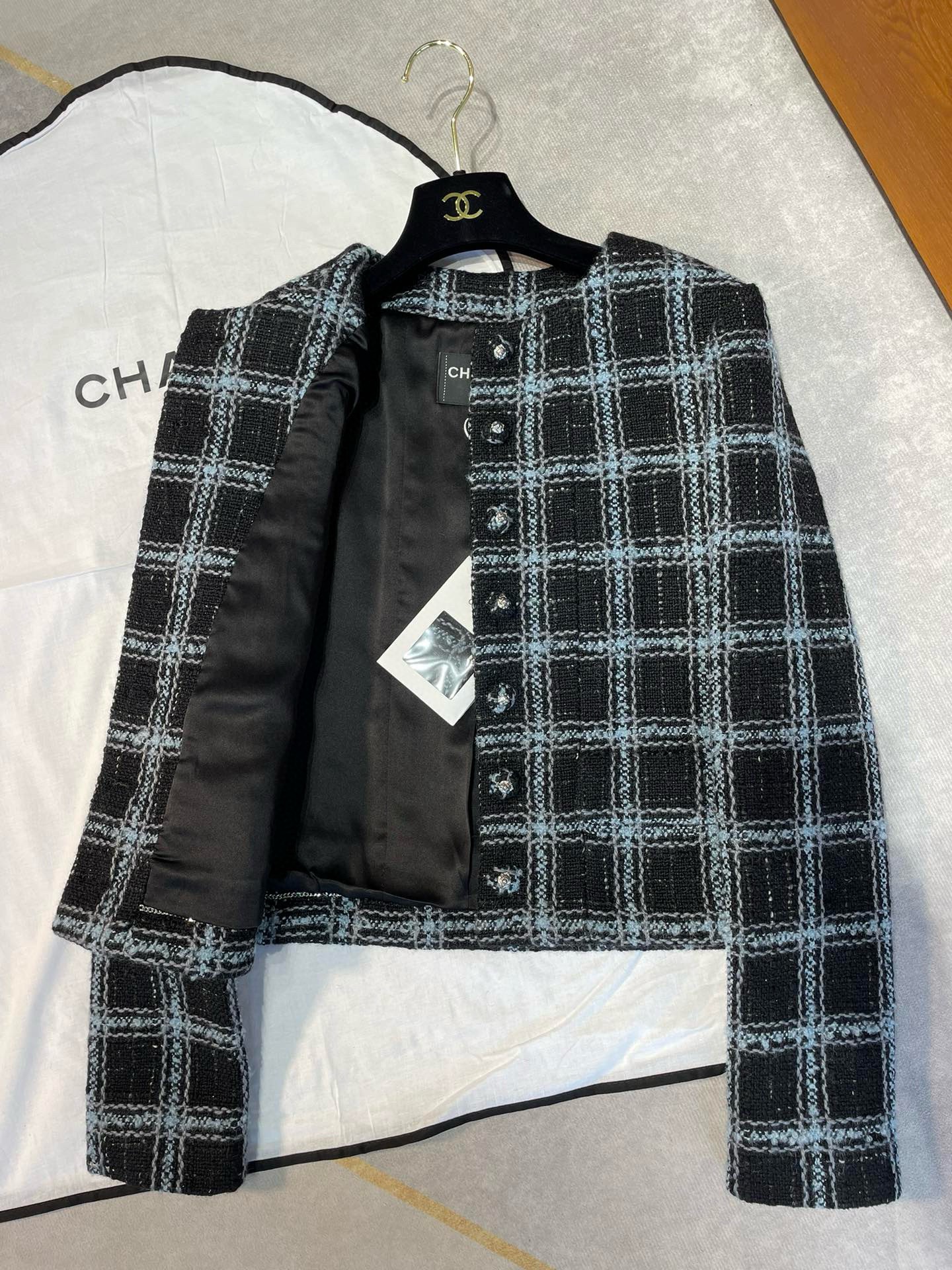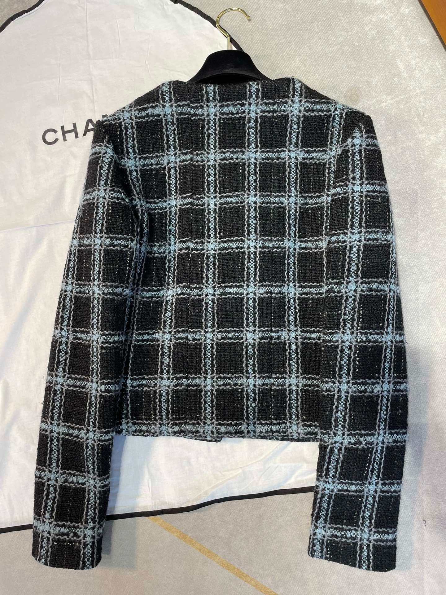 2024秋冬新品 C家格子黑藍配色軟呢外套