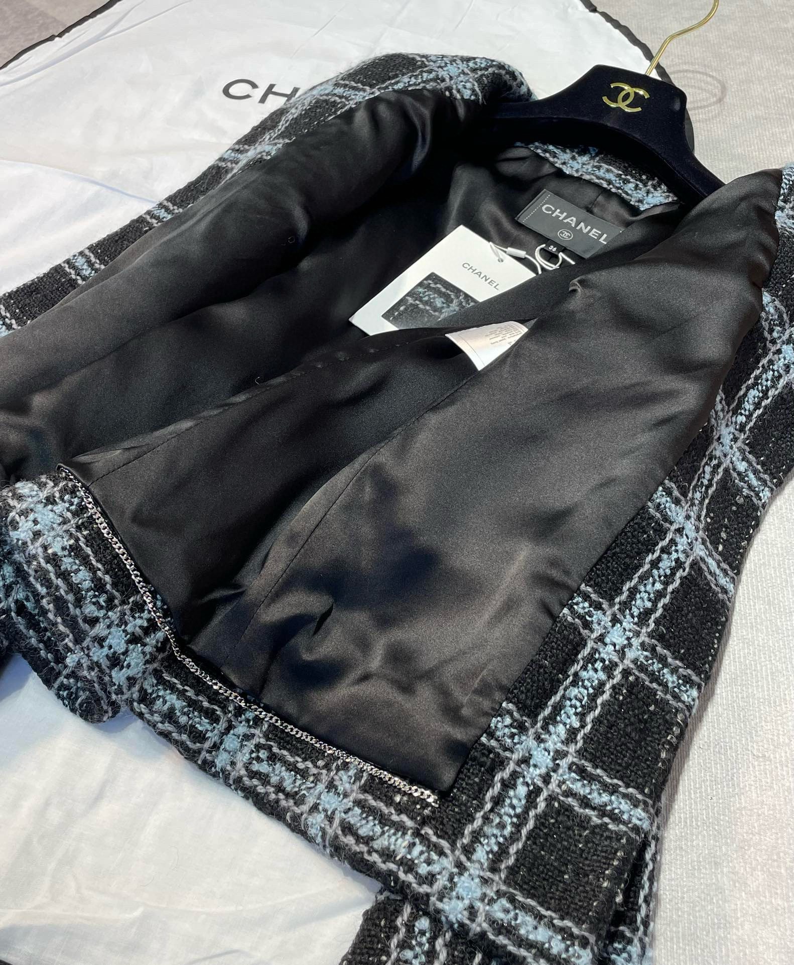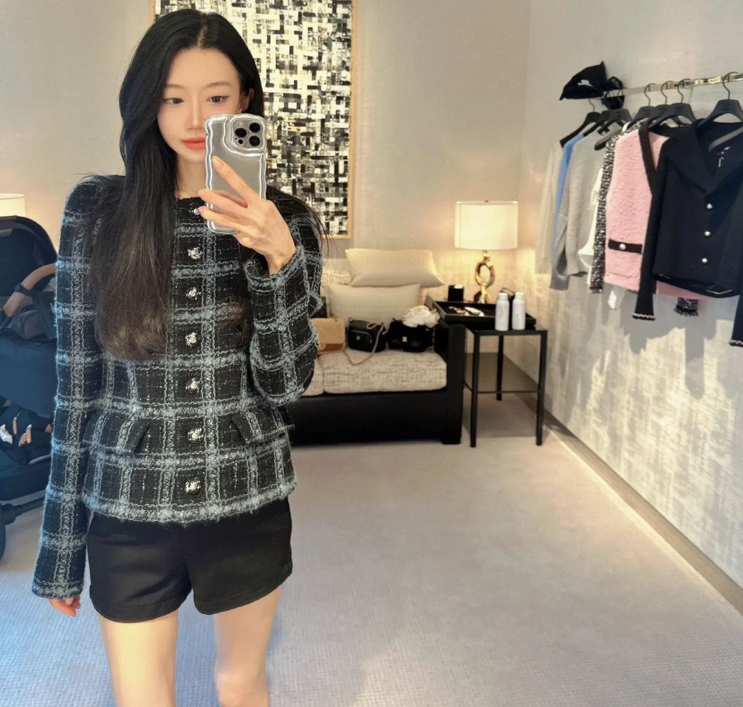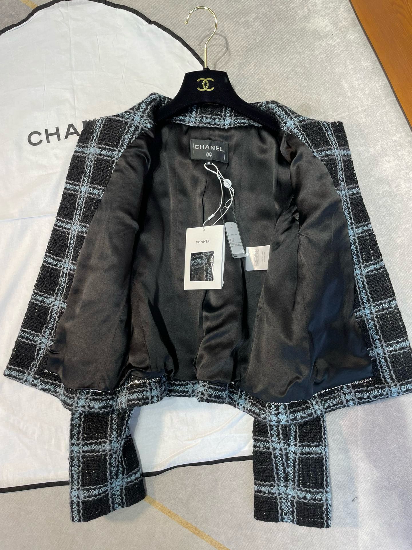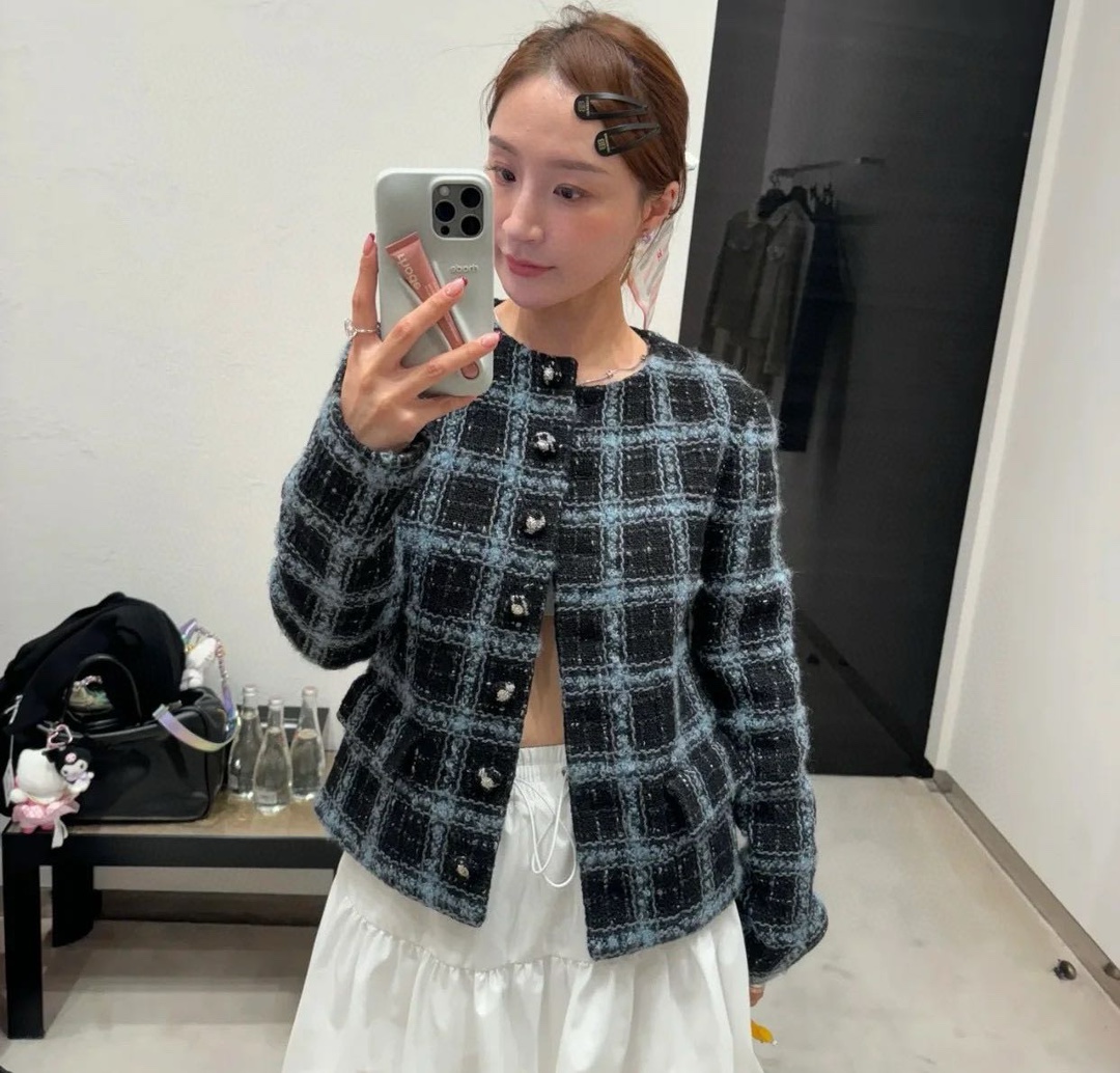 2024秋冬新品 C家格子黑藍配色軟呢外套