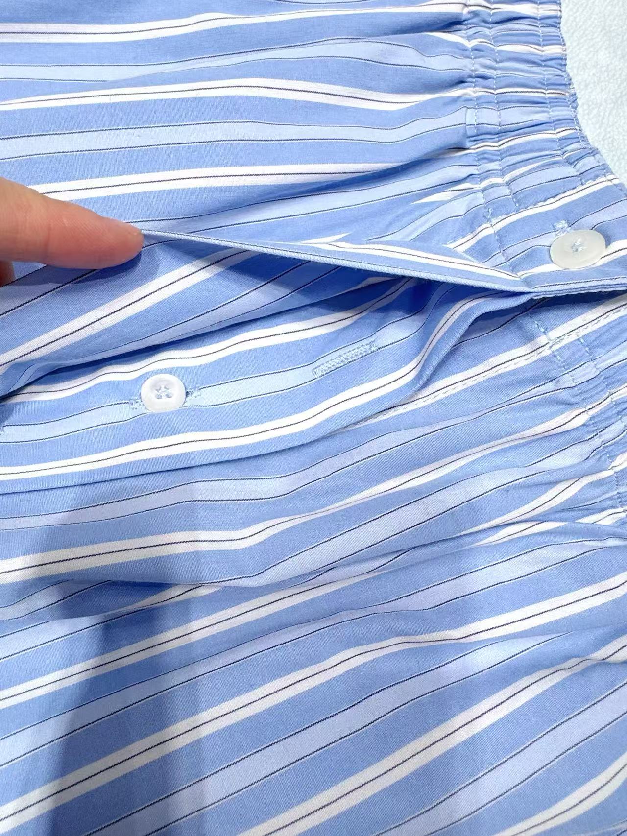 選用色織條紋材質,帶有品牌標識的刺繡設計,細節精緻。