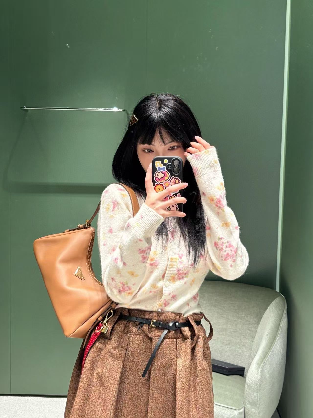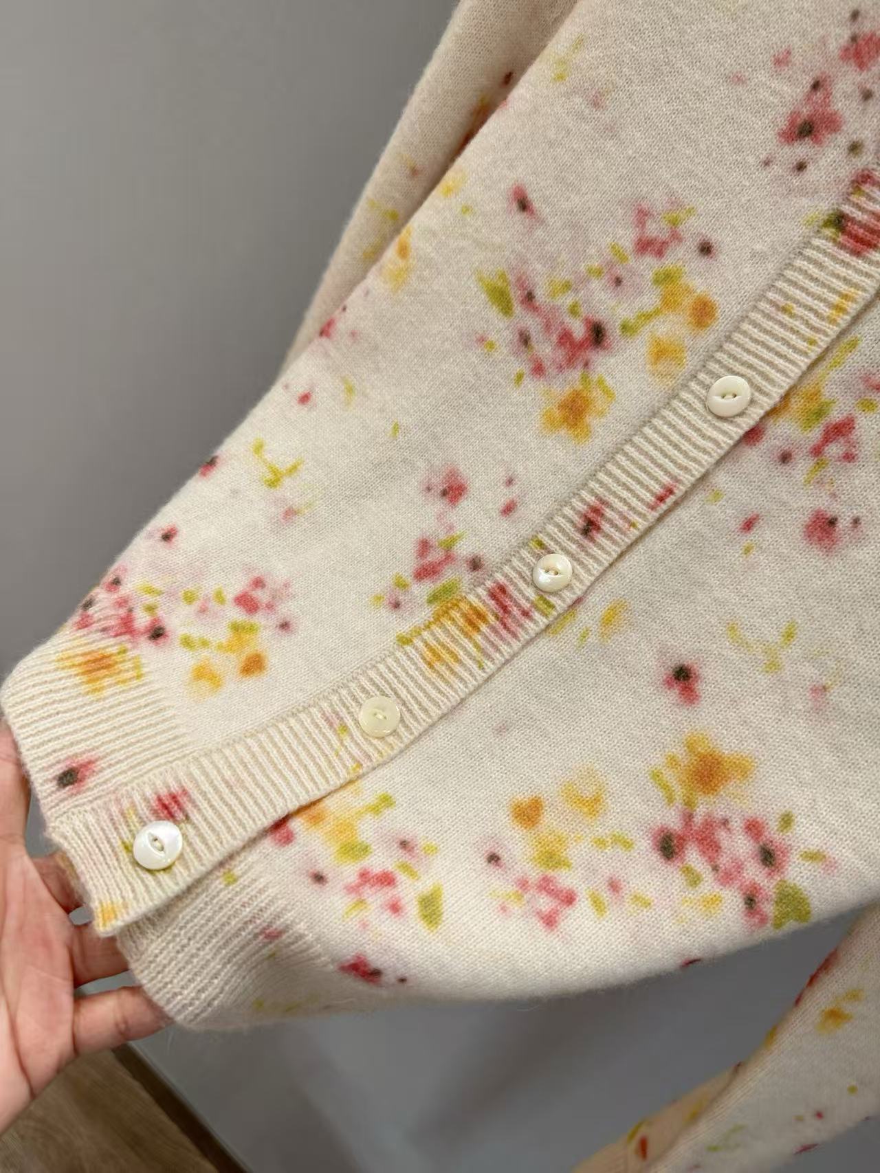 2025早秋 PD家 碎花羊毛混紡針織開衫