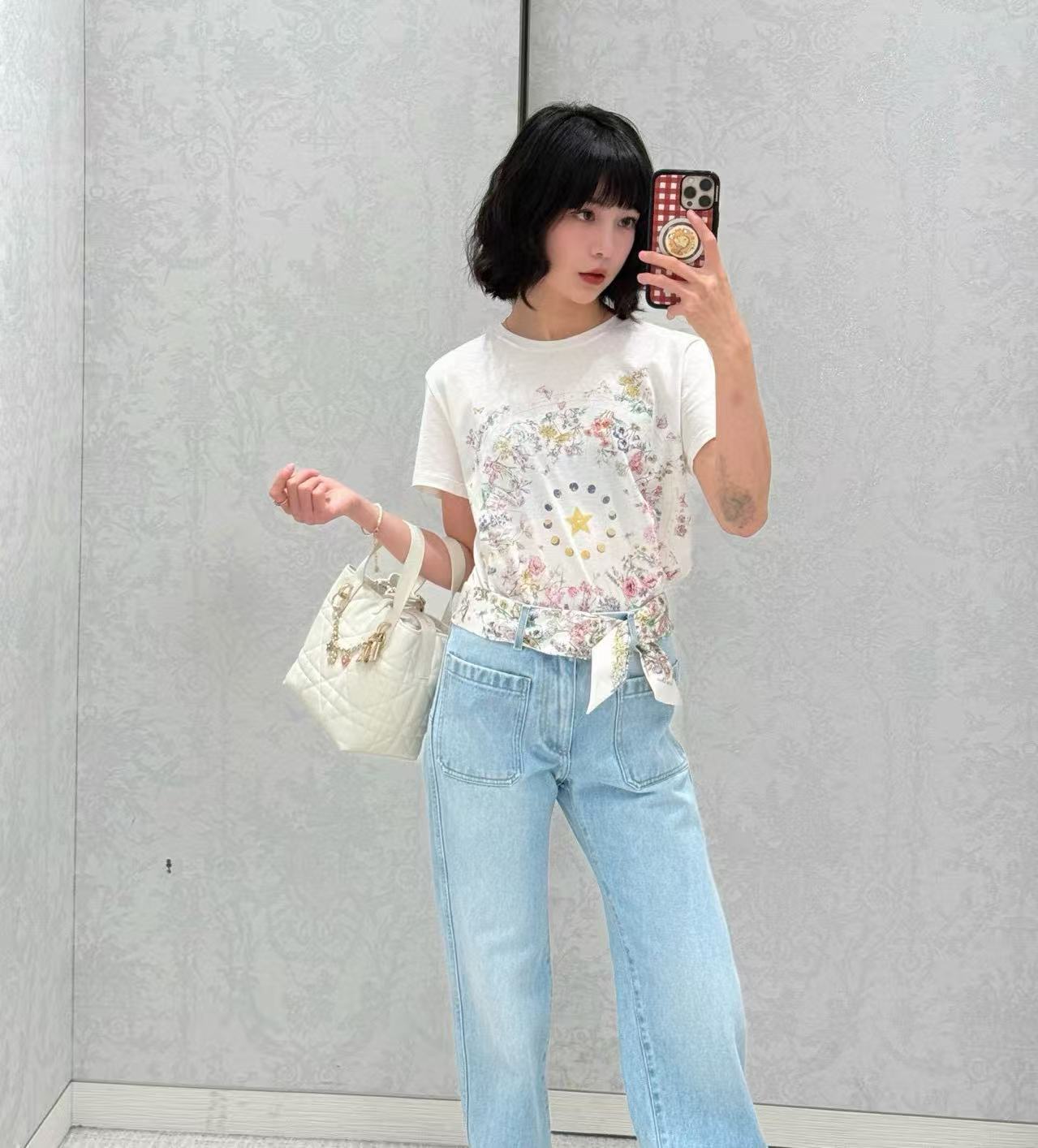 2025春夏 D家 花卉羅盤印花圓領短袖