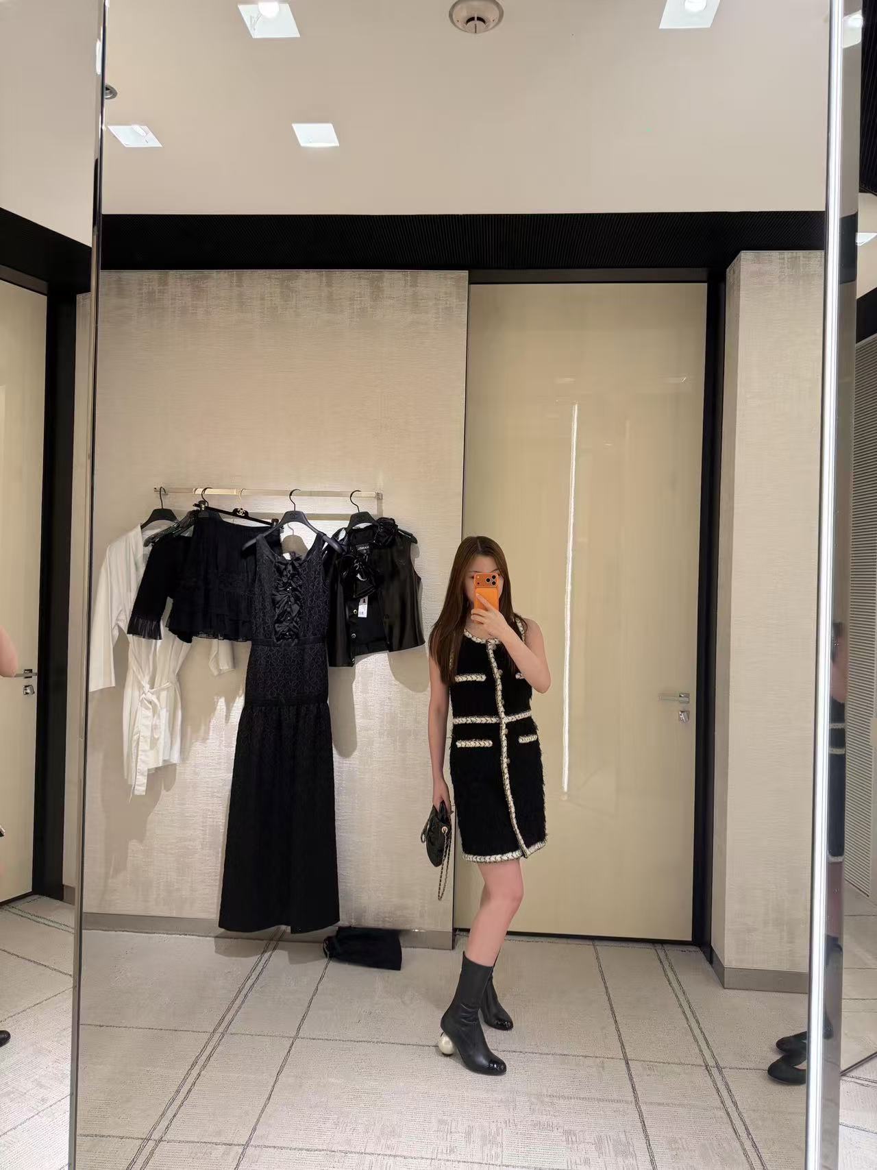 2025秋冬 C家 25K黑色粗花呢無袖連衣裙
