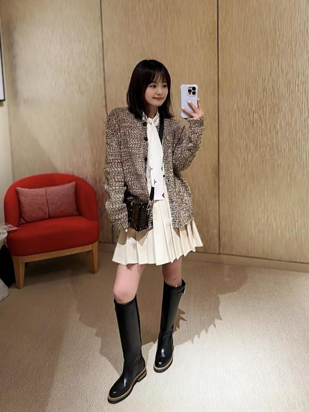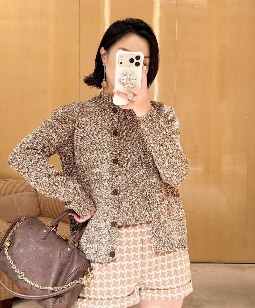 2026早春 L家 棕白花紗針織開衫,棕白混色粗花呢真的太有味道了!