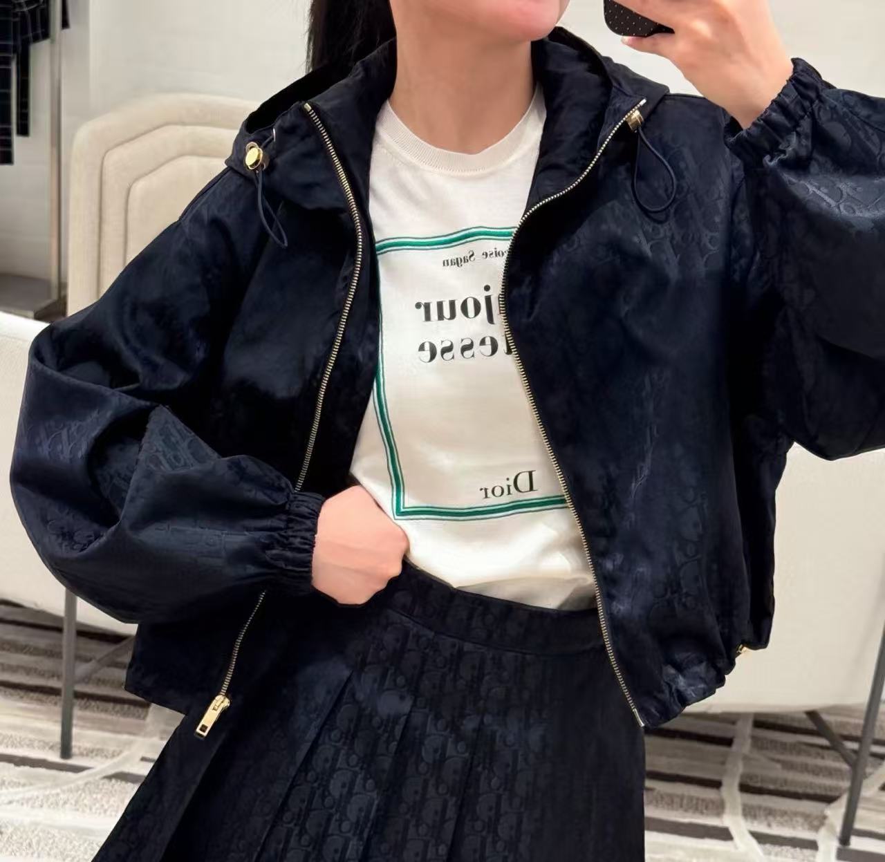 2026早春新品 D家 滿印老花抽繩短款連帽外套