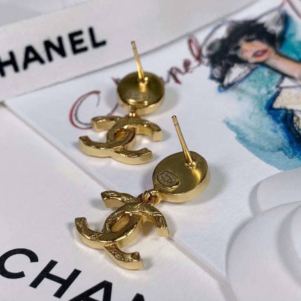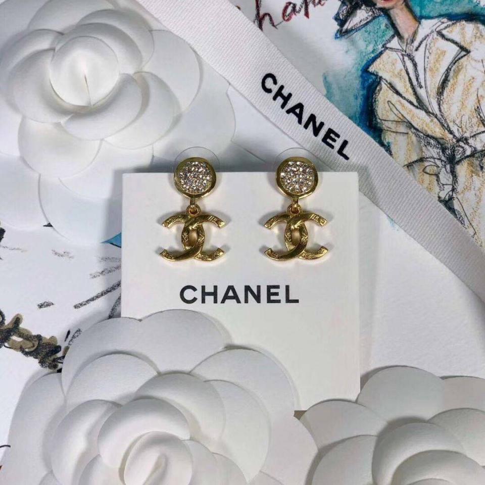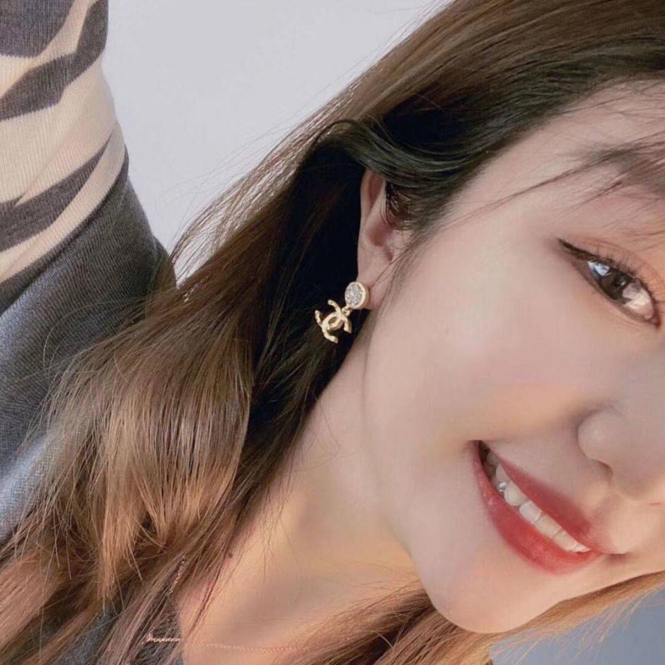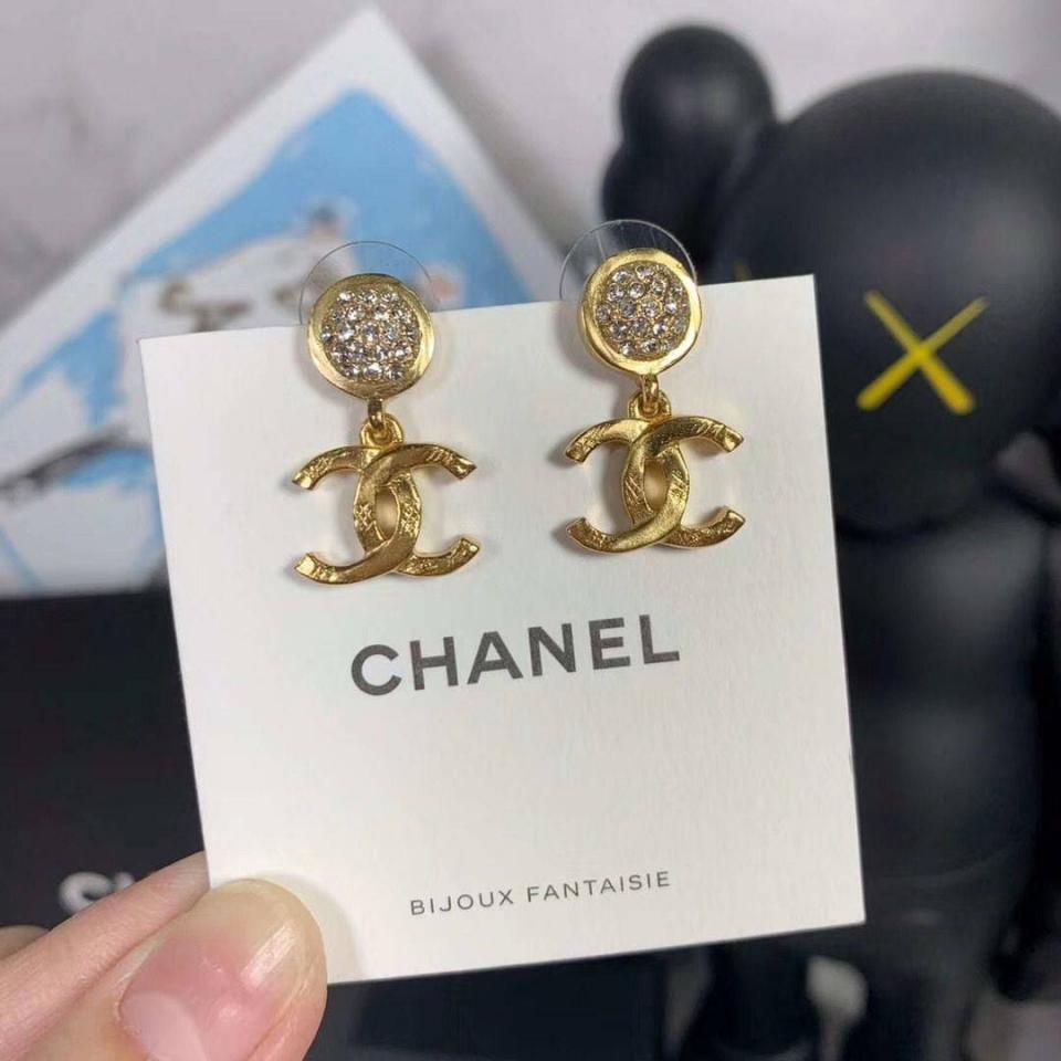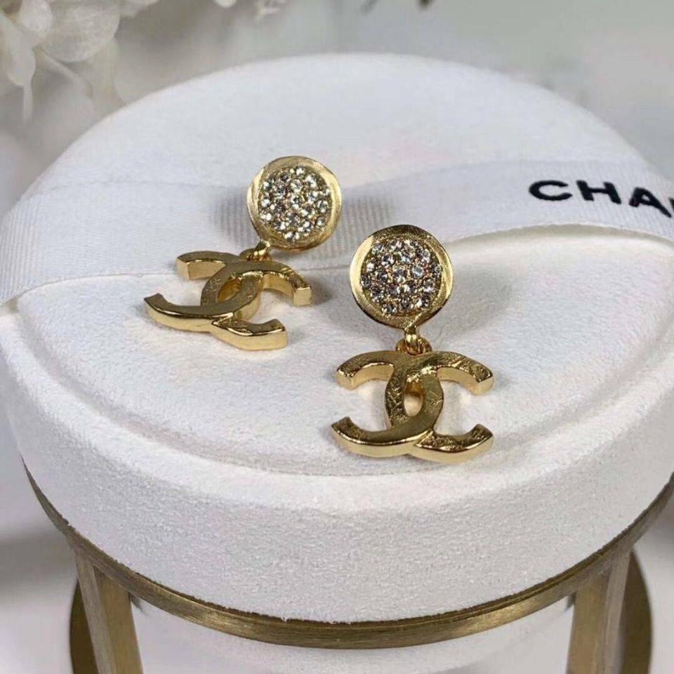 2020春夏新款 復古吊C耳環 金色雙C搭配水晶點綴